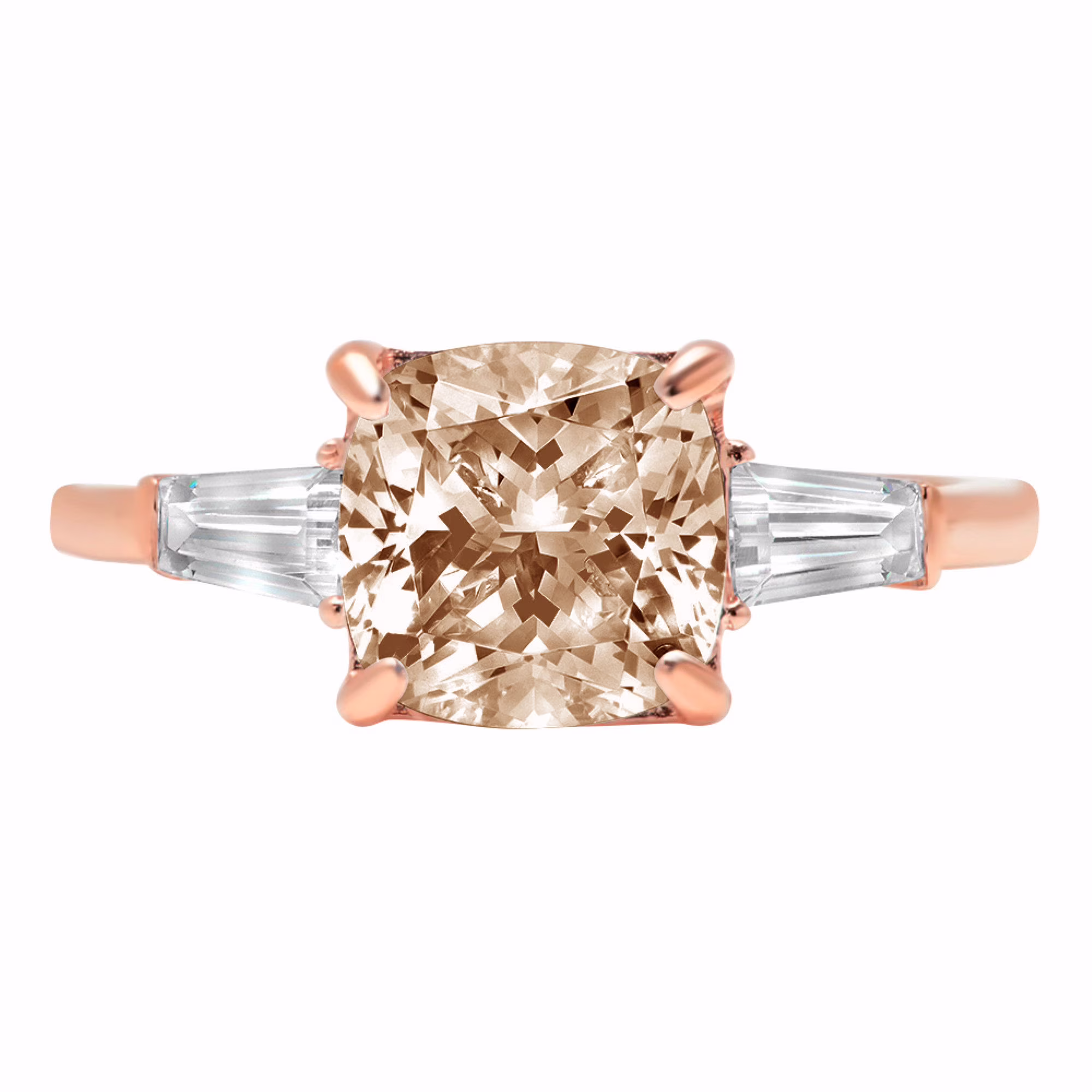 3ct cushion cut champagne simulated diamond 18k rose gold anniversary engagement 3 stone ring size 5