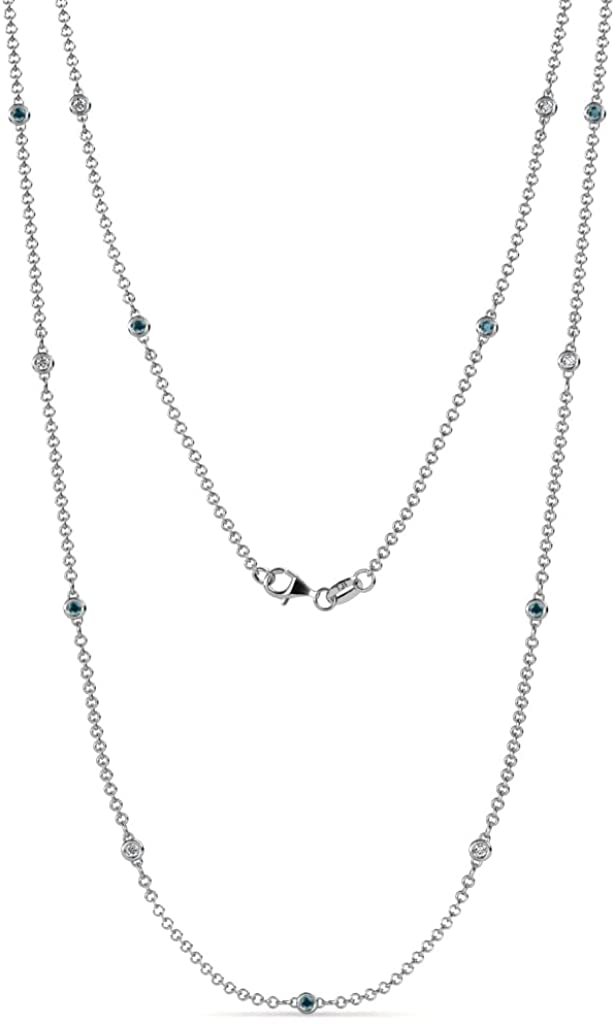 Petite London Blue Topaz and Diamond by the Yard 13 Stations Necklace 0.40 ct tw in 14K White Gold