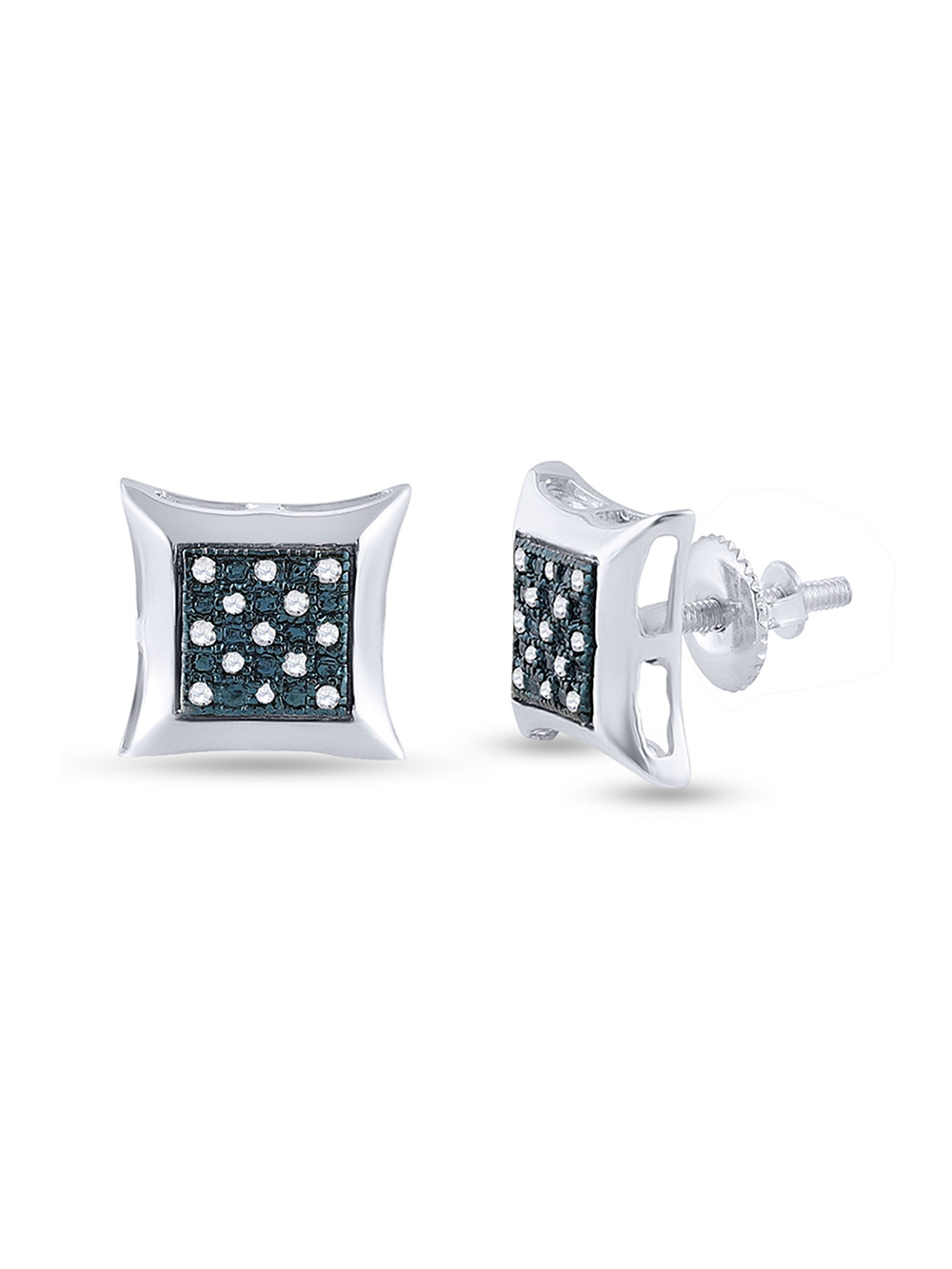 Sterling Silver Mens Round Blue Color Enhanced Diamond Square Kite Earrings 1/12 Cttw