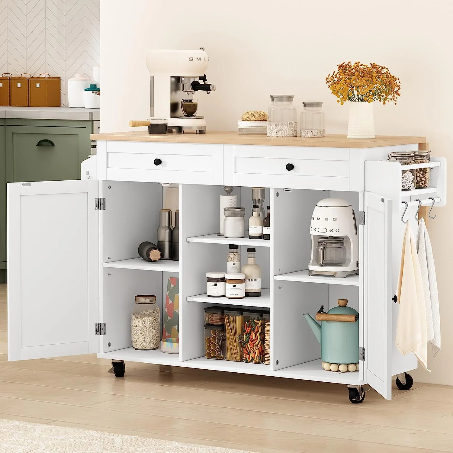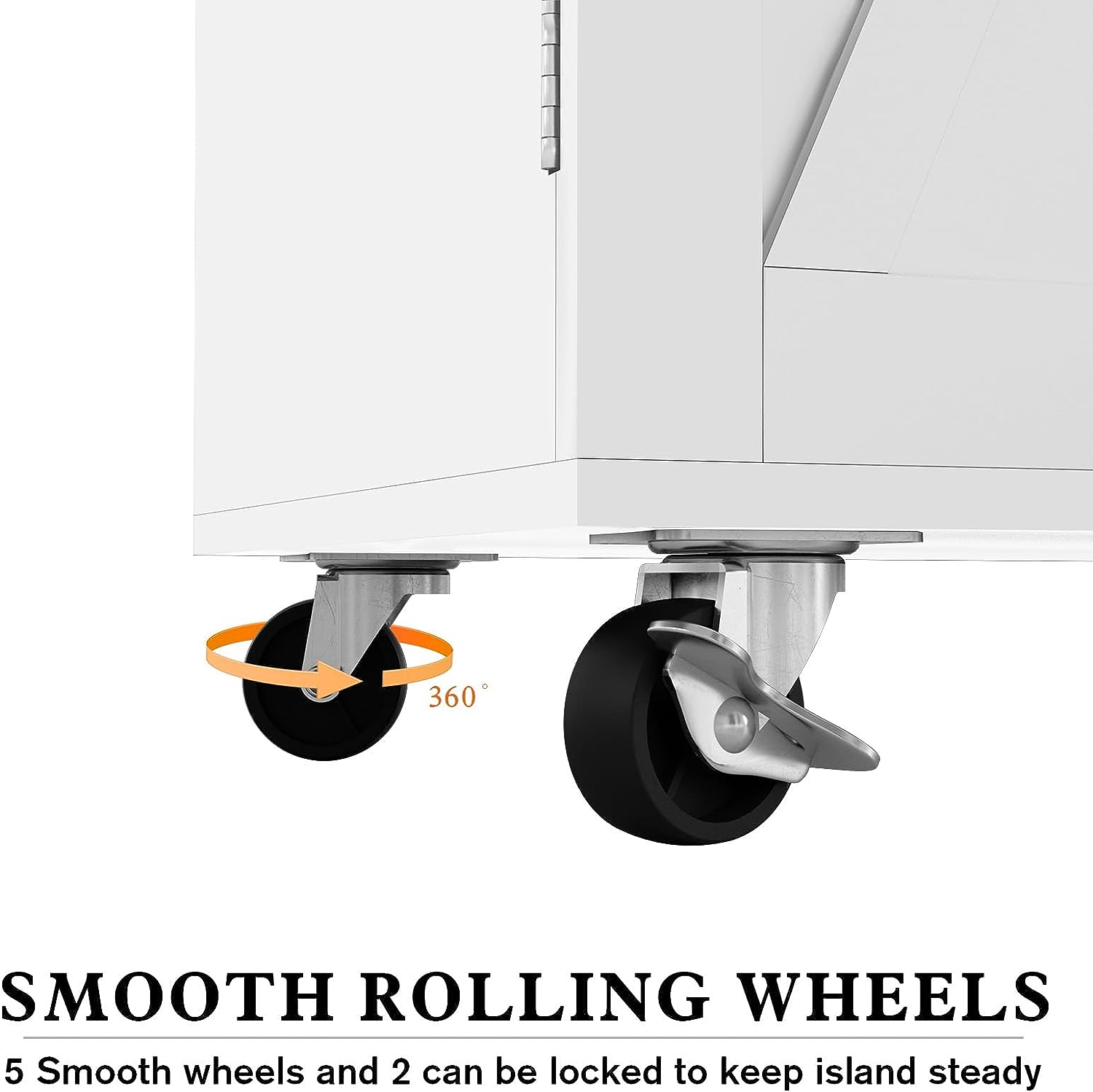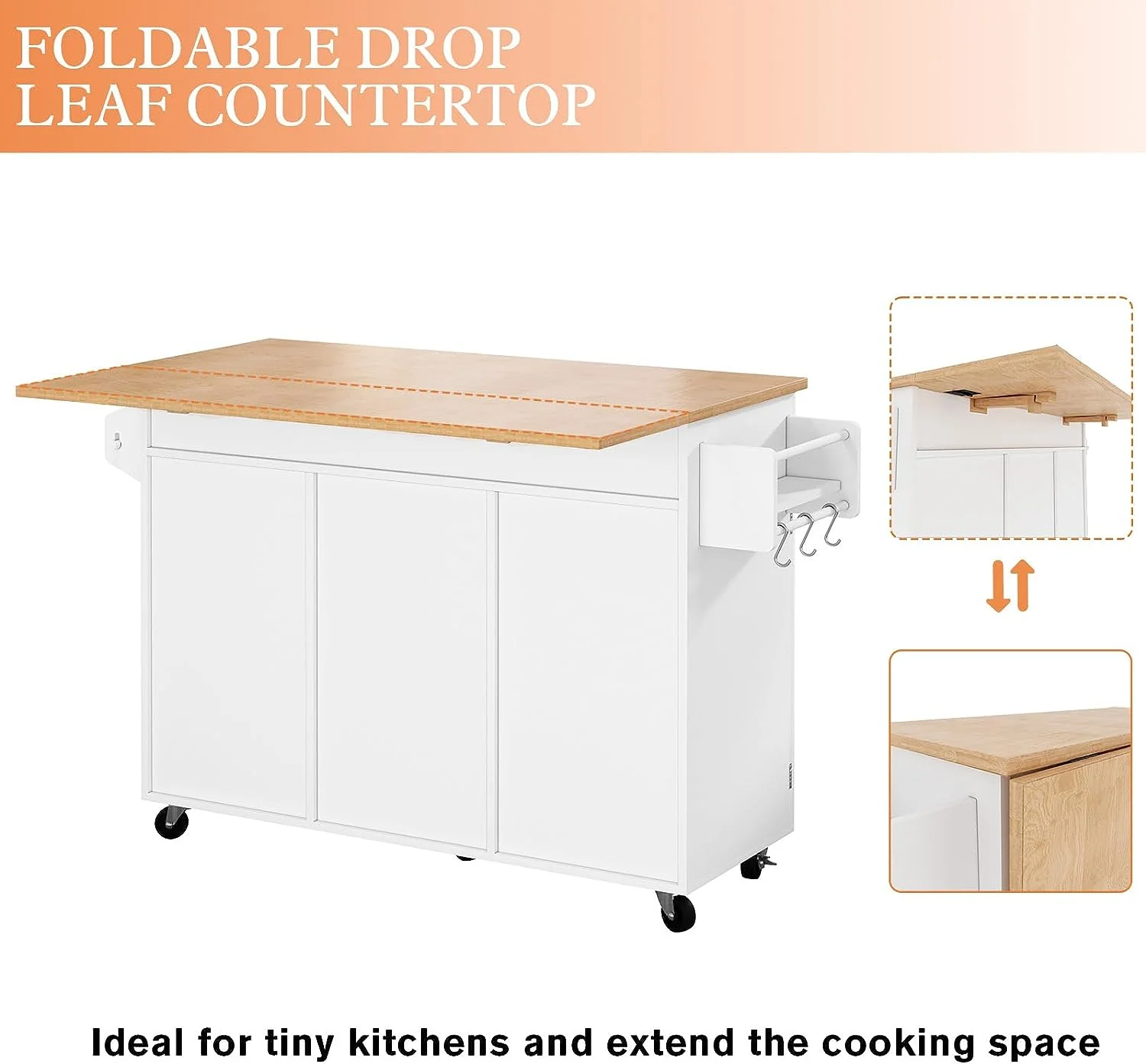 HLR Kitchen Island on Wheels, Kitchen Island with Storage&Drop Leaf, Island Table for Kitchen,White