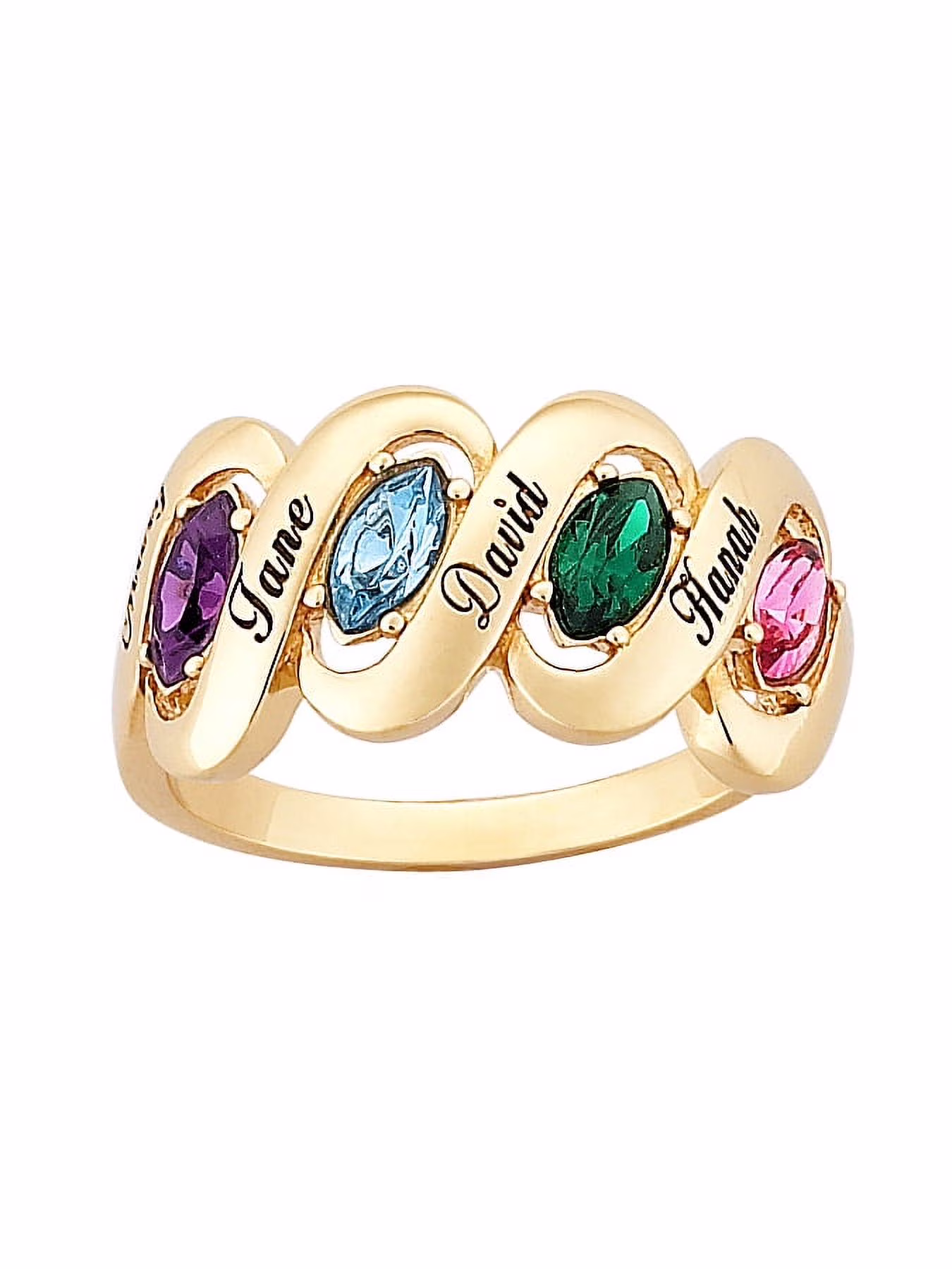 Family Jewelry Personalized Planet Mother's 14kt Gold-Plated Name and Birthstone Ribbon Ring ,Women's