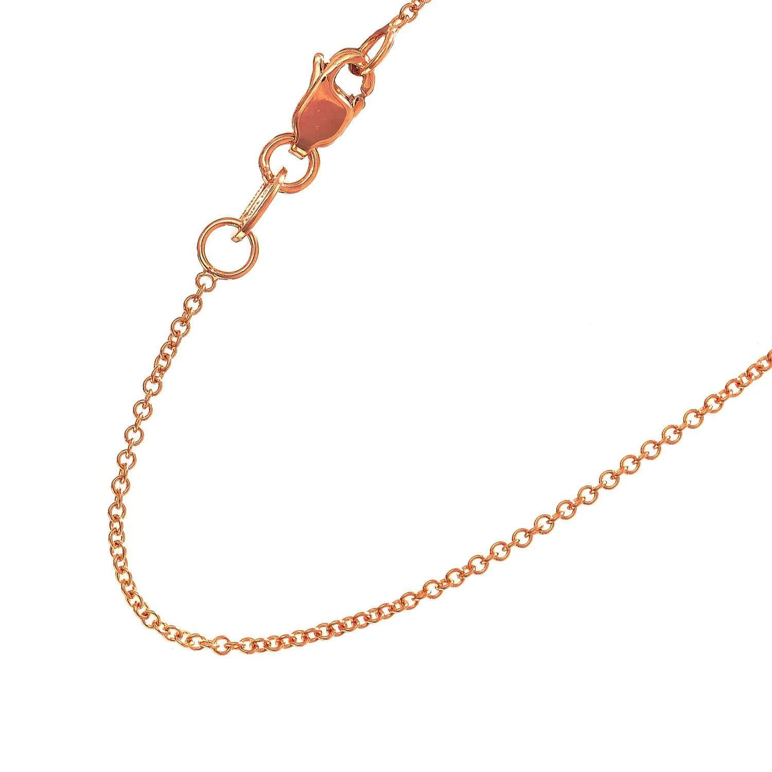 14k Solid Rose Gold 0.7 mm Round Cable Chain Necklace, Lobster Claw Clasp-16 Inches, 1.3gr.
