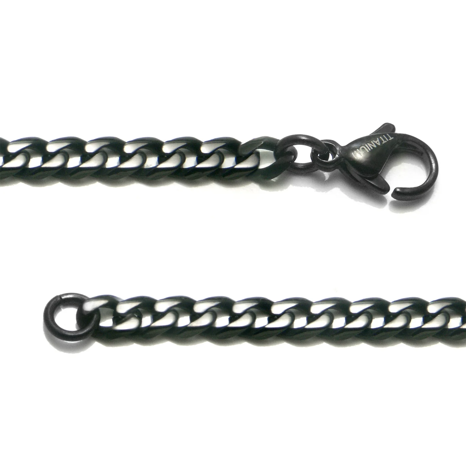 Titanium Kay Black Titanium 4MM Curb Chain Link High Polish Finish Men's Necklace 24"