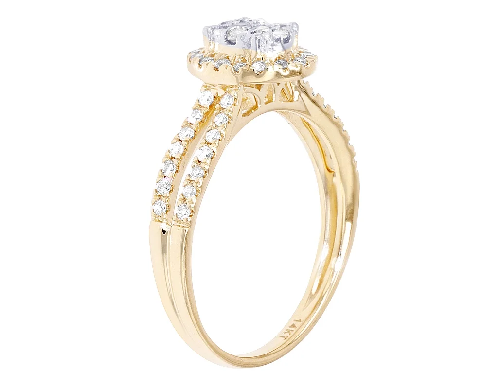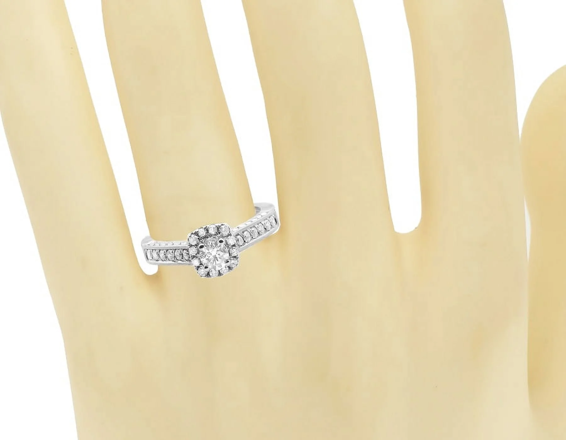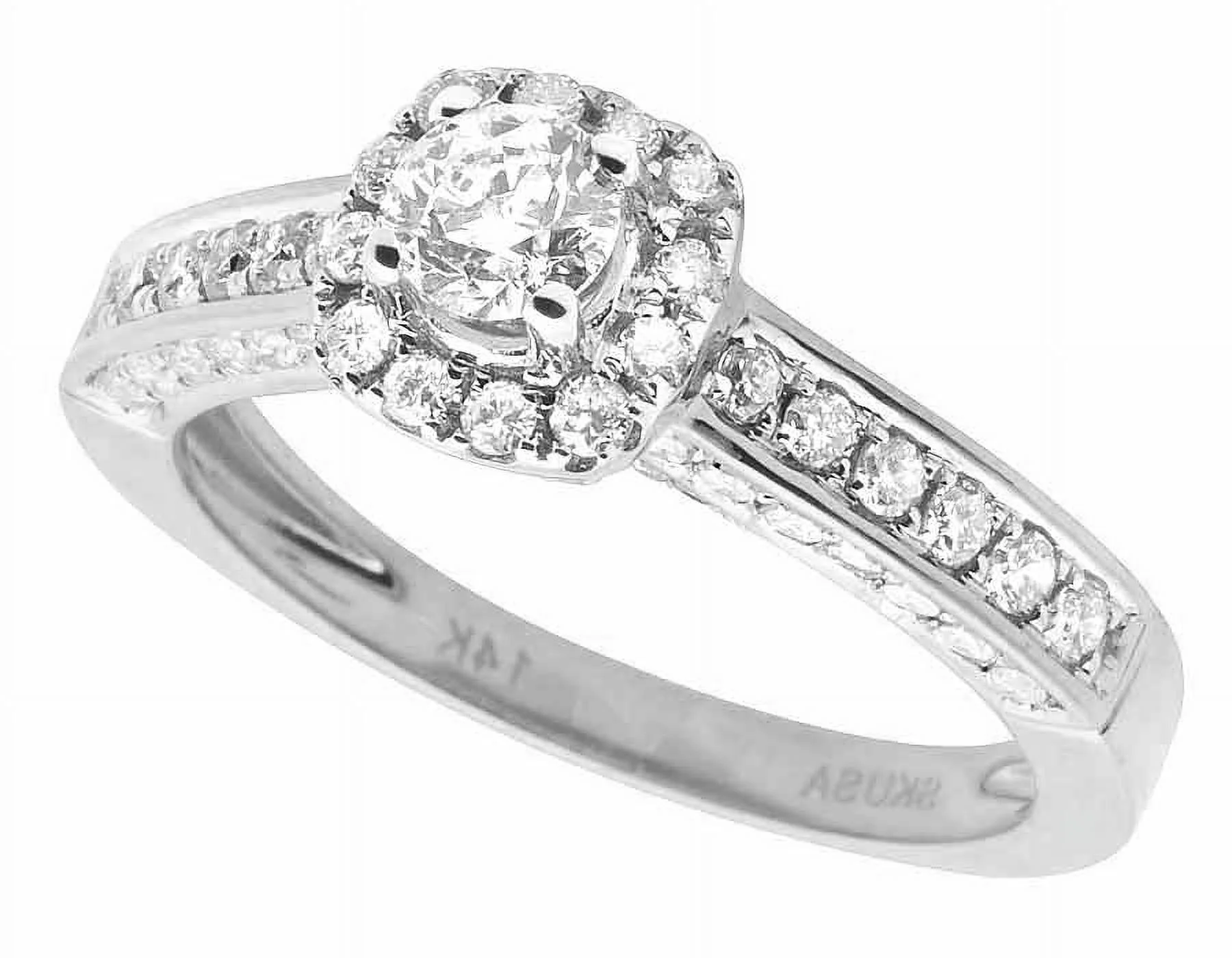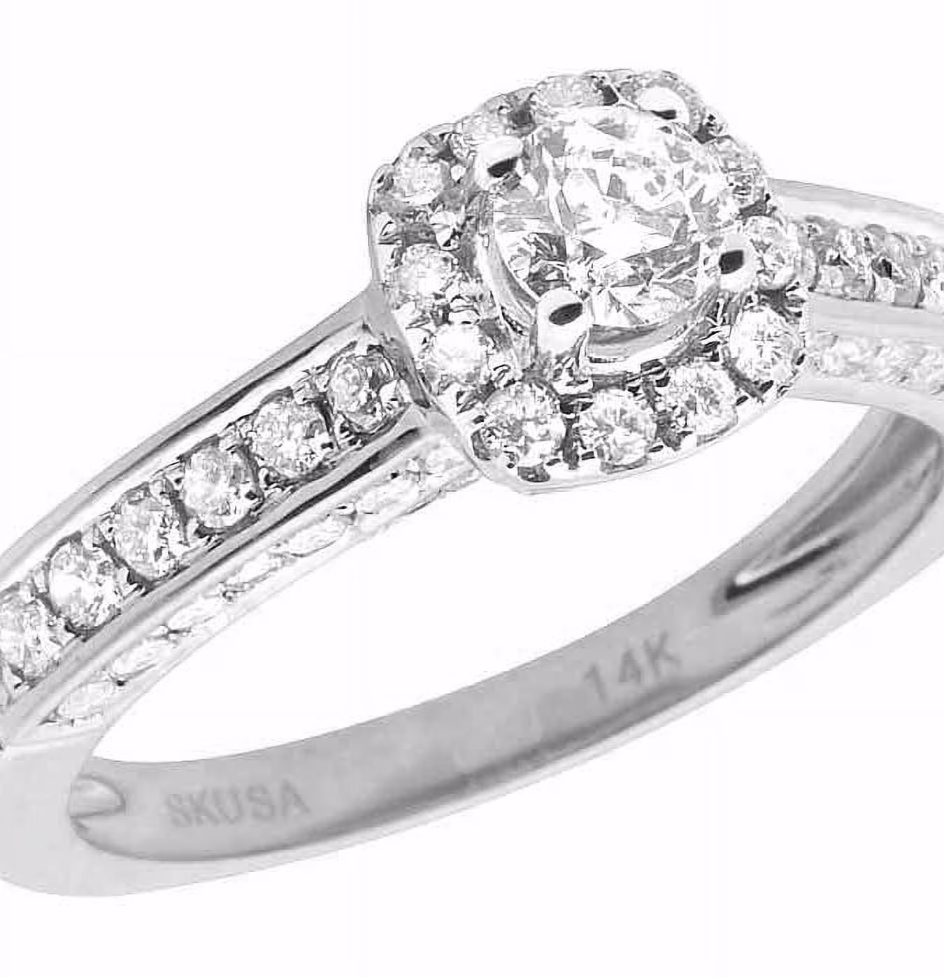 14K White Gold Halo Solitaire 3D Real Diamond Engagement Ring 1.0ct
