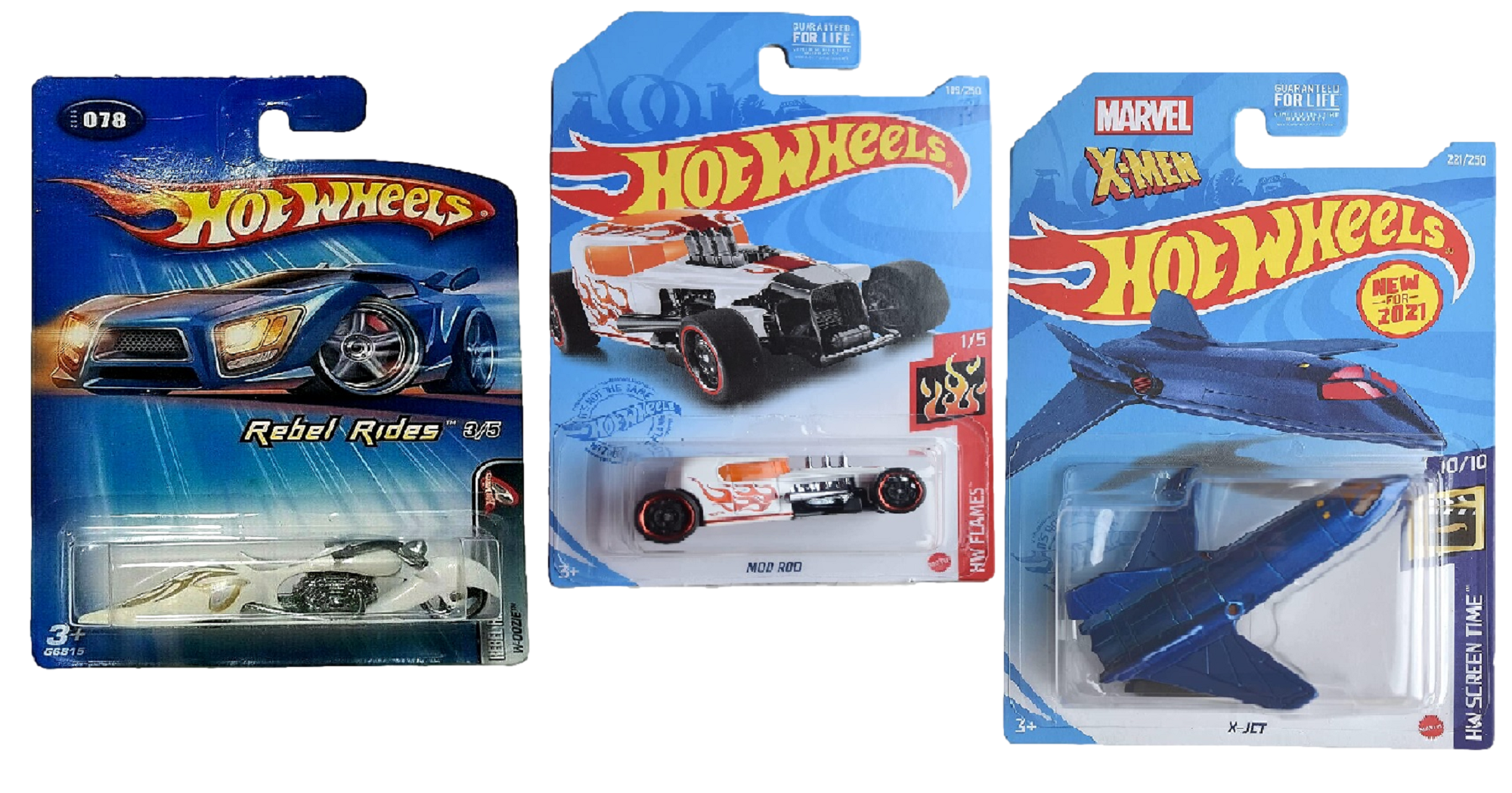 Hot Wheels Die-Cast Collectible Cars Set of 3; Rebel Rides W-oozie, Mod Rod, and X-Jet 1:64 Scale