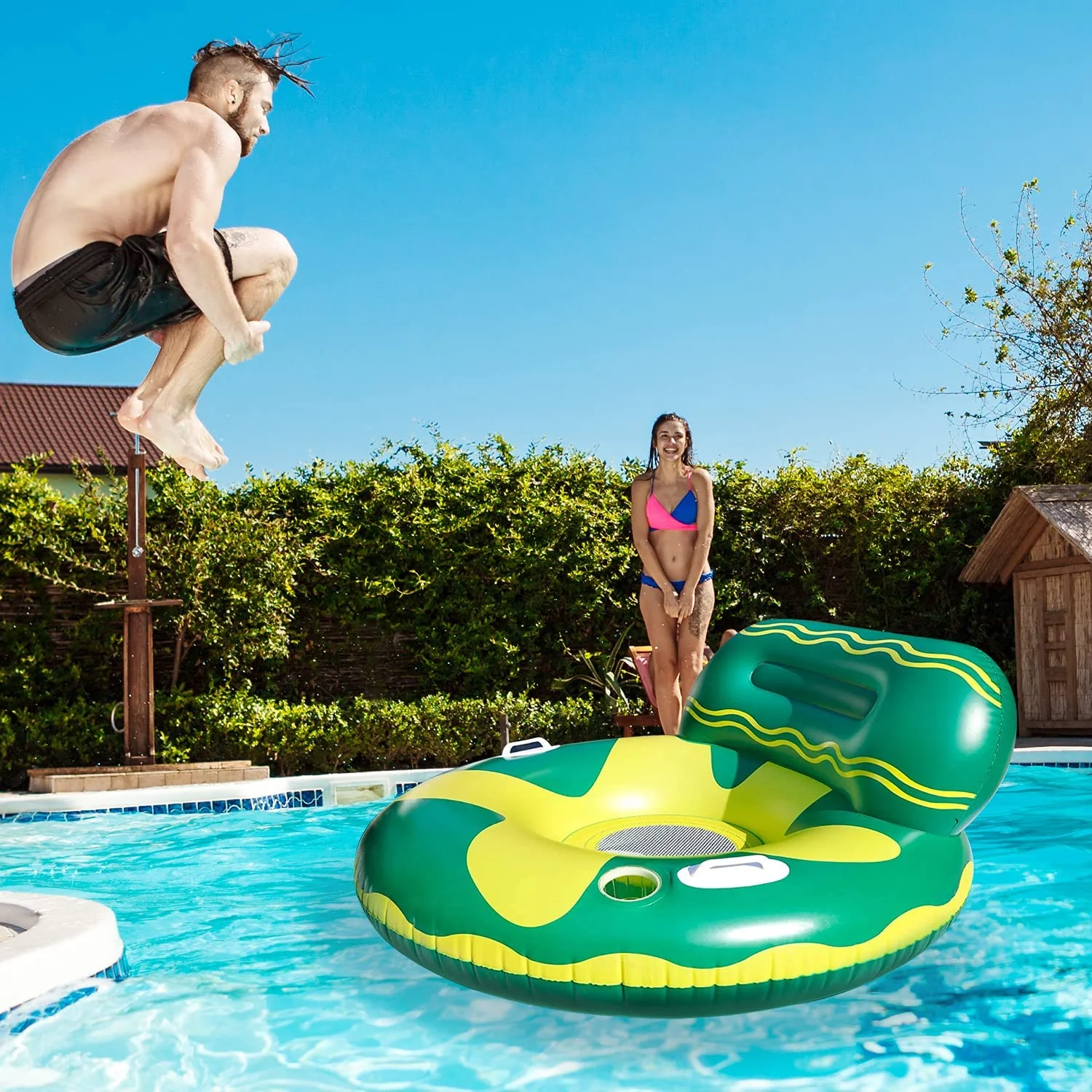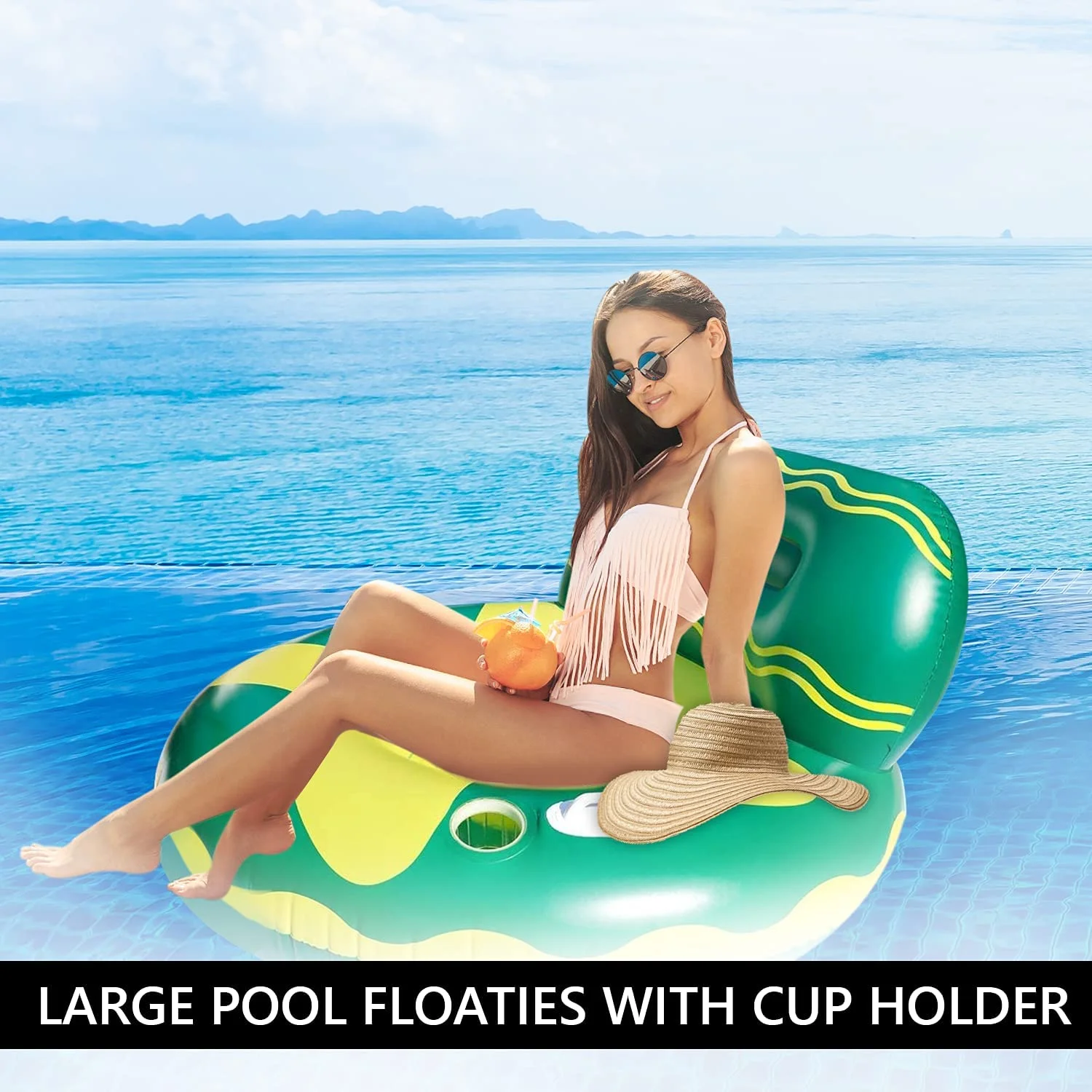 Edele Travel-Friendly Pool Floating Chair for Trip to Beach – Green/Yellow