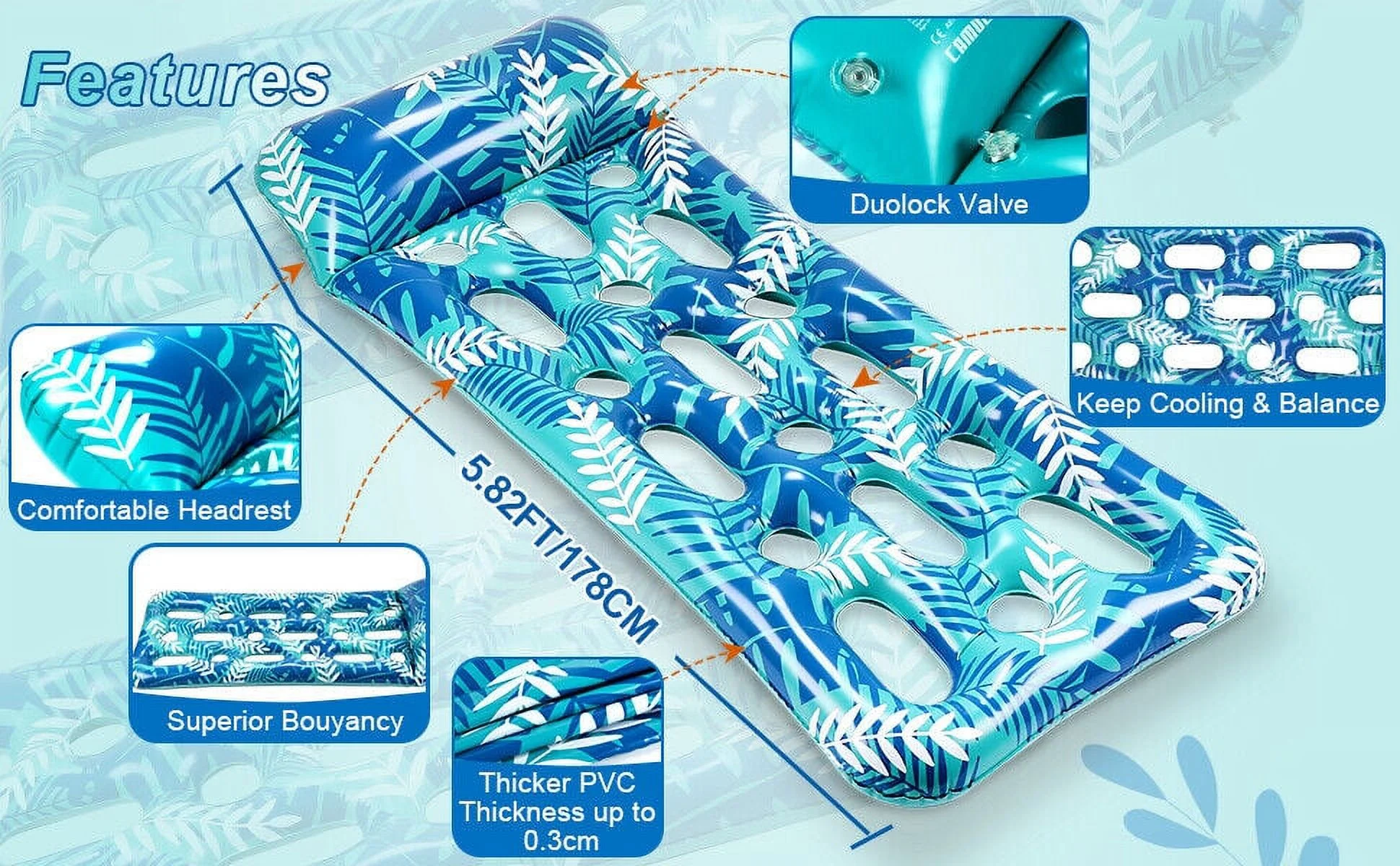 Pool Floats Raft Adult Inflatable Lounger Hammock Chair Heavy Duty w/Headrest