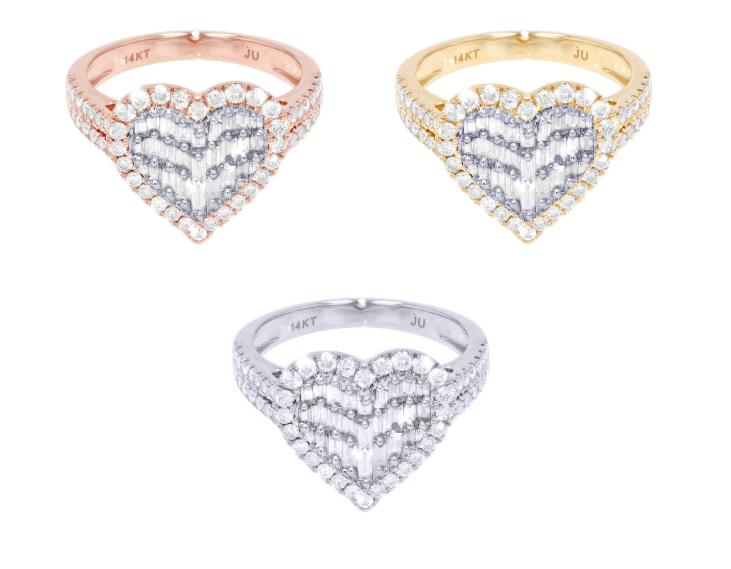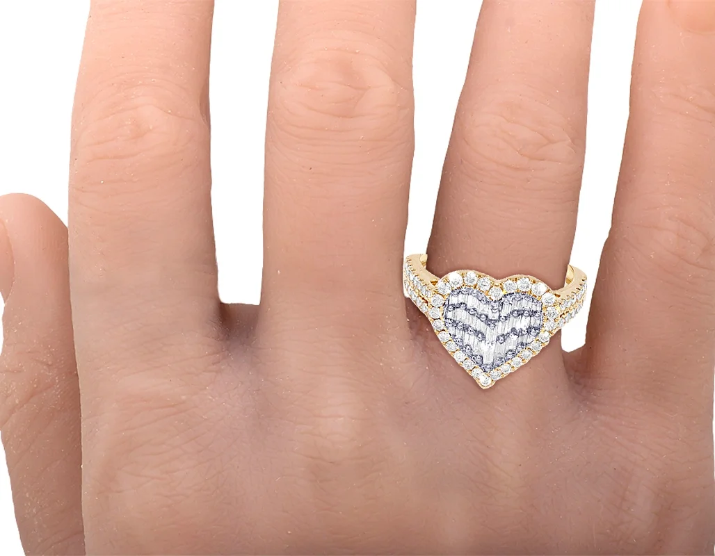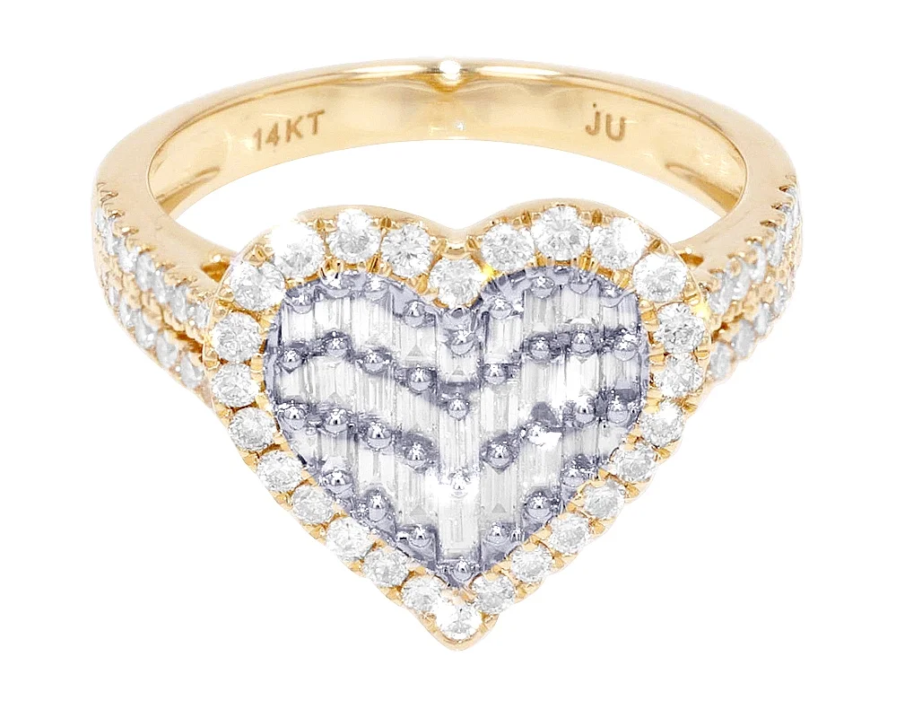 Heart Shaped 1Ct Diamond Engagement Ring 14K Gold 14MM-Yellow-White Gold