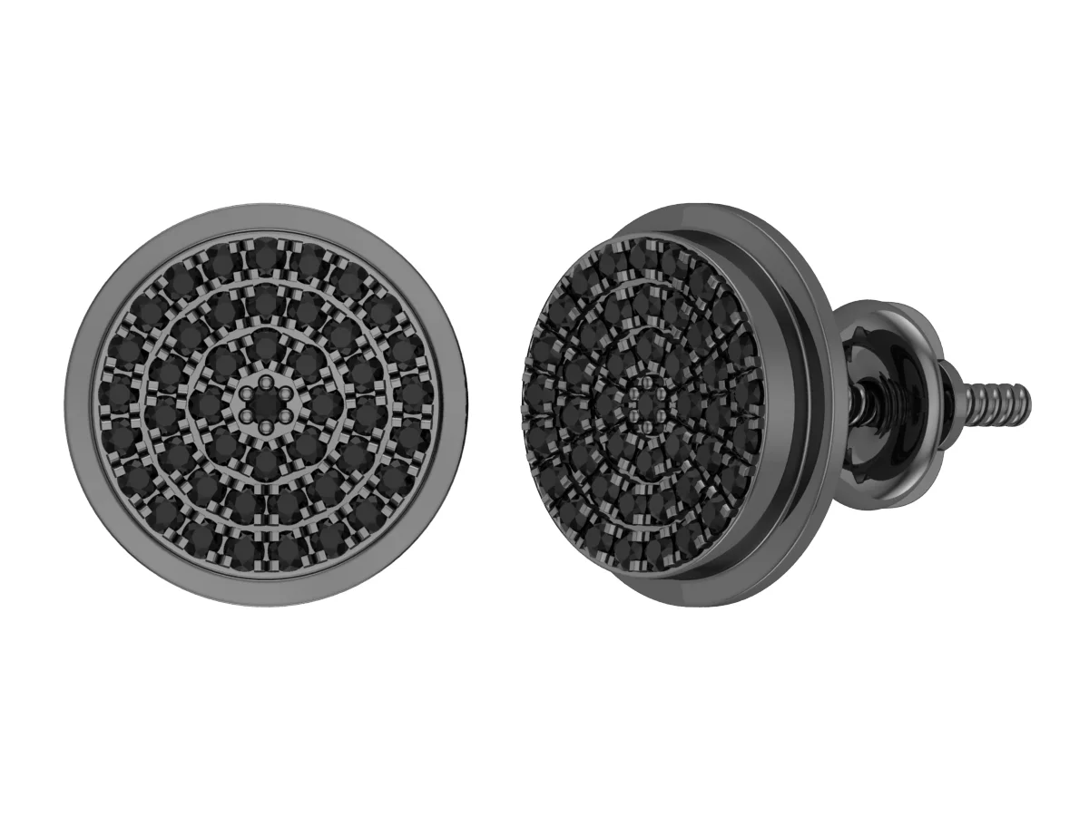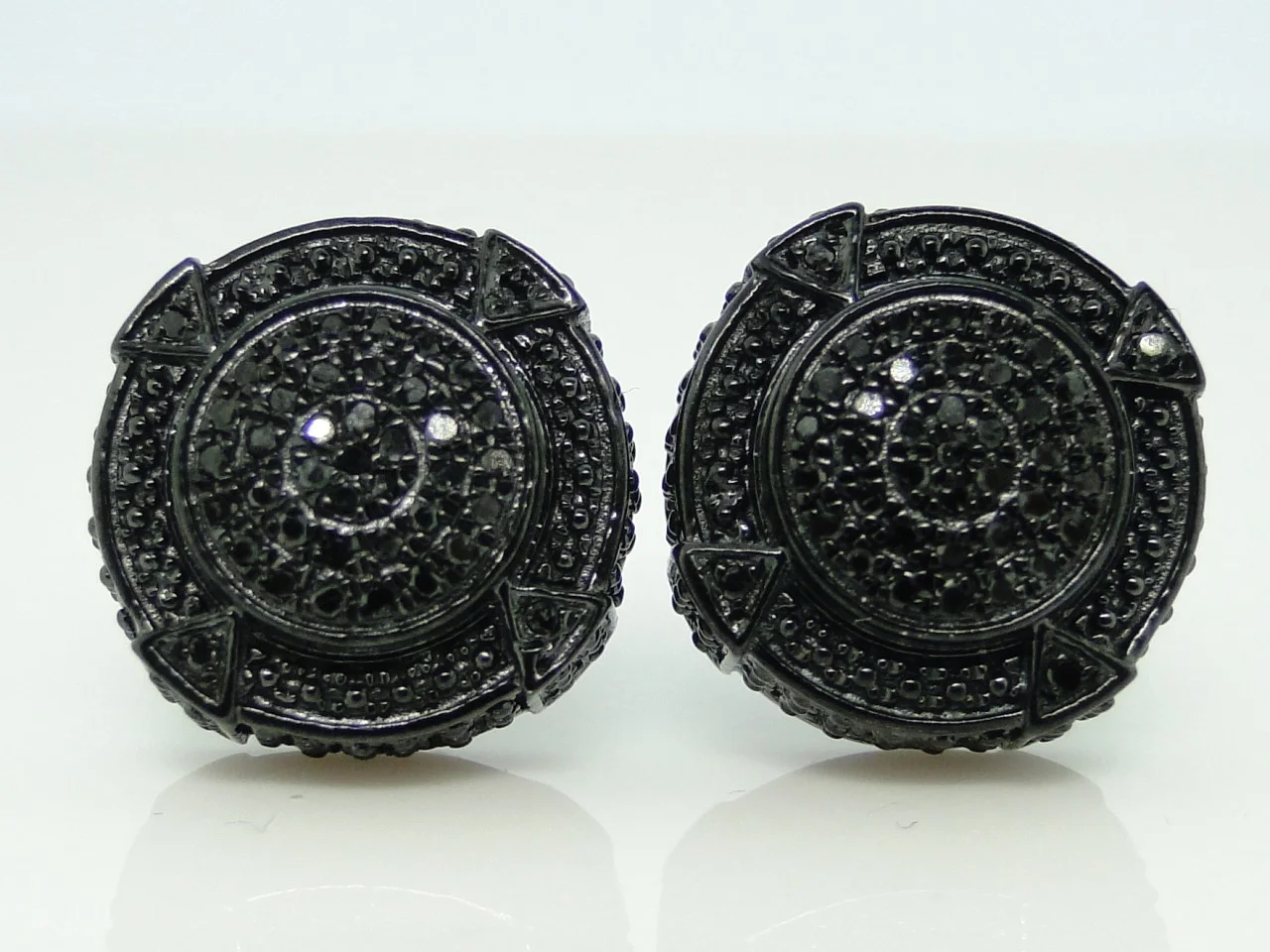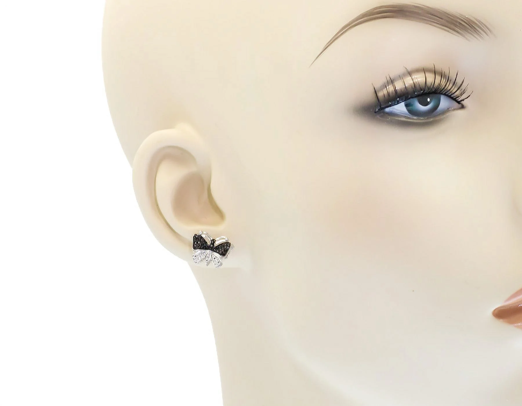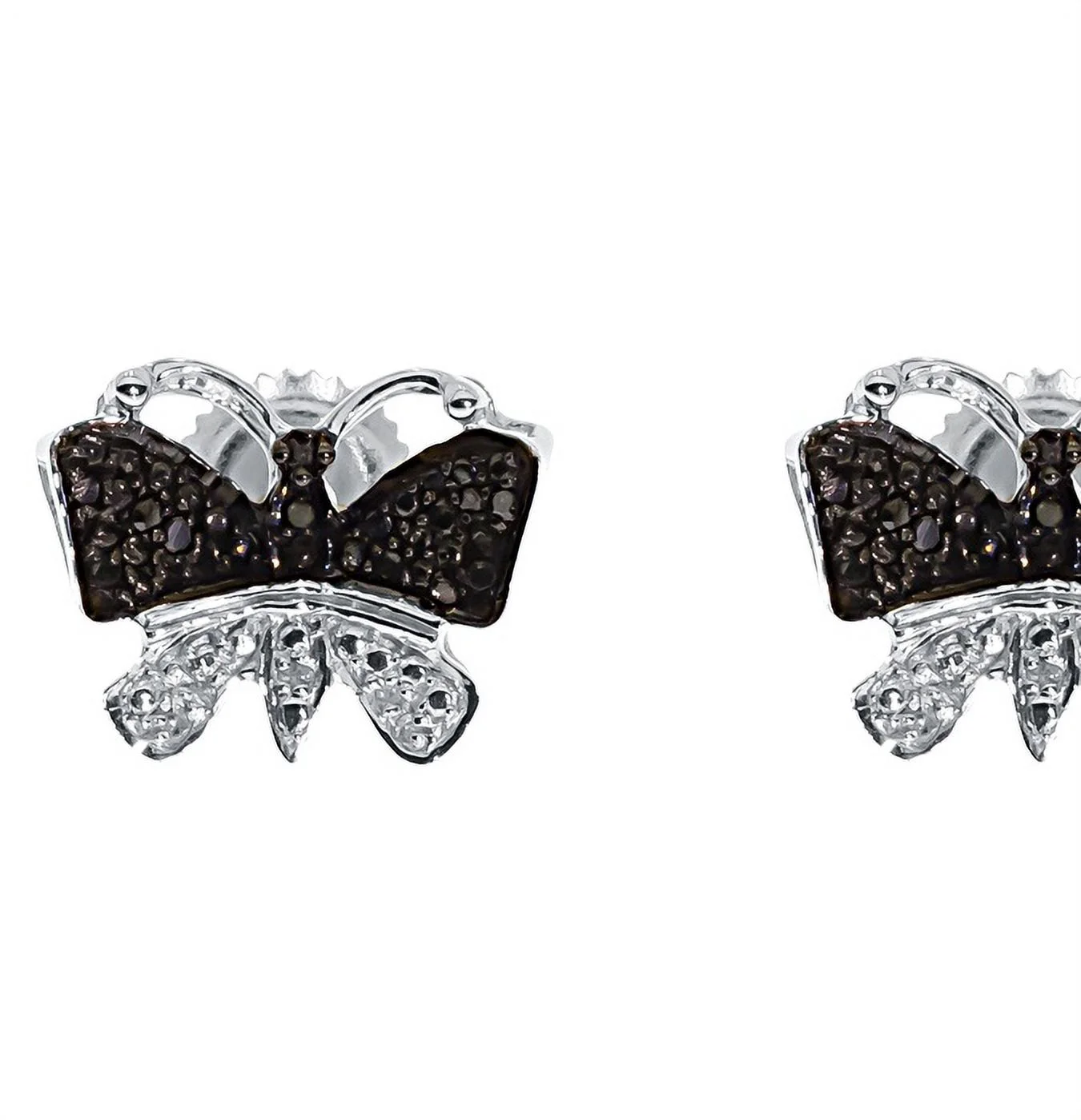 White Gold Finish Ladies Black White Pave Diamond Butterfly Stud Earrings 1/3 ct