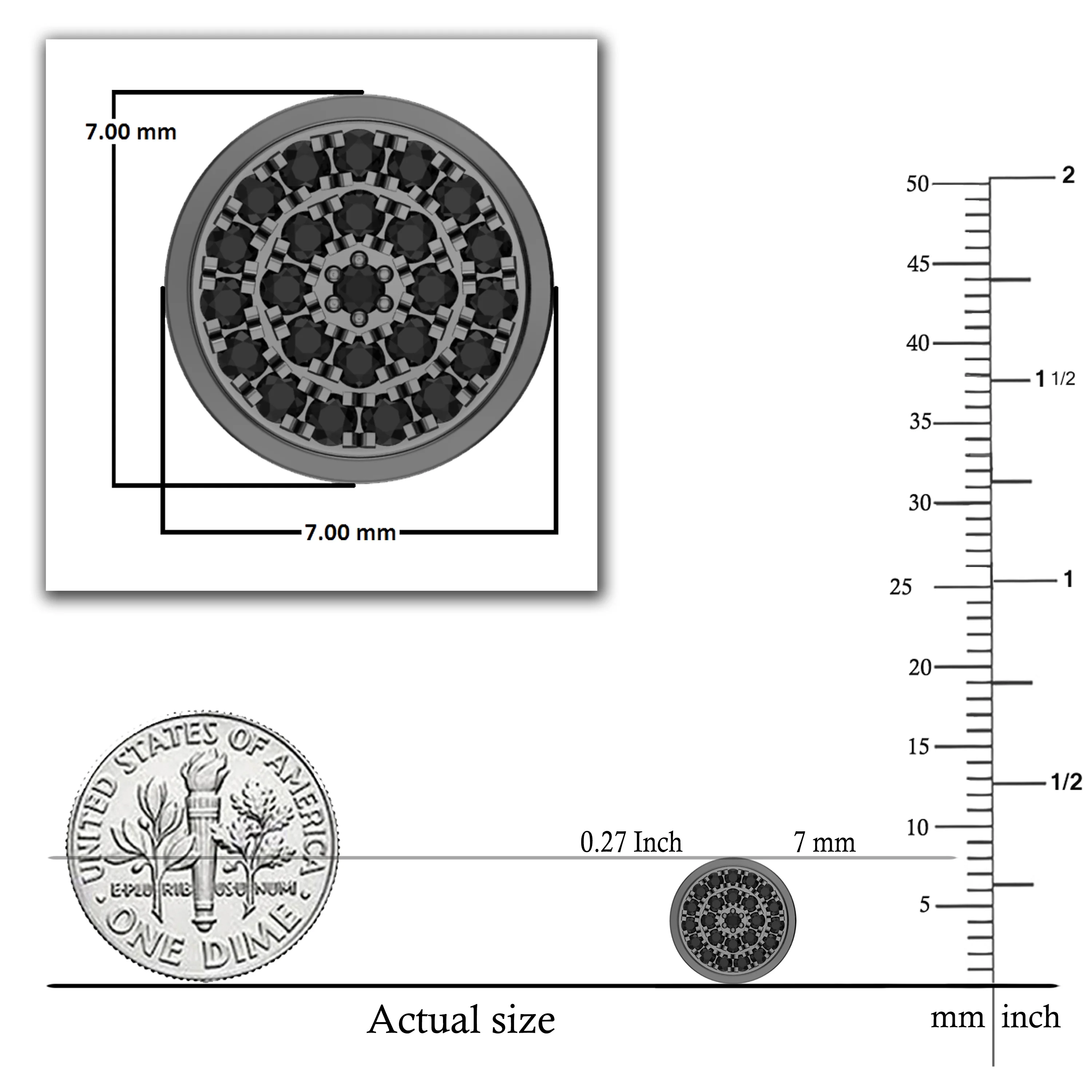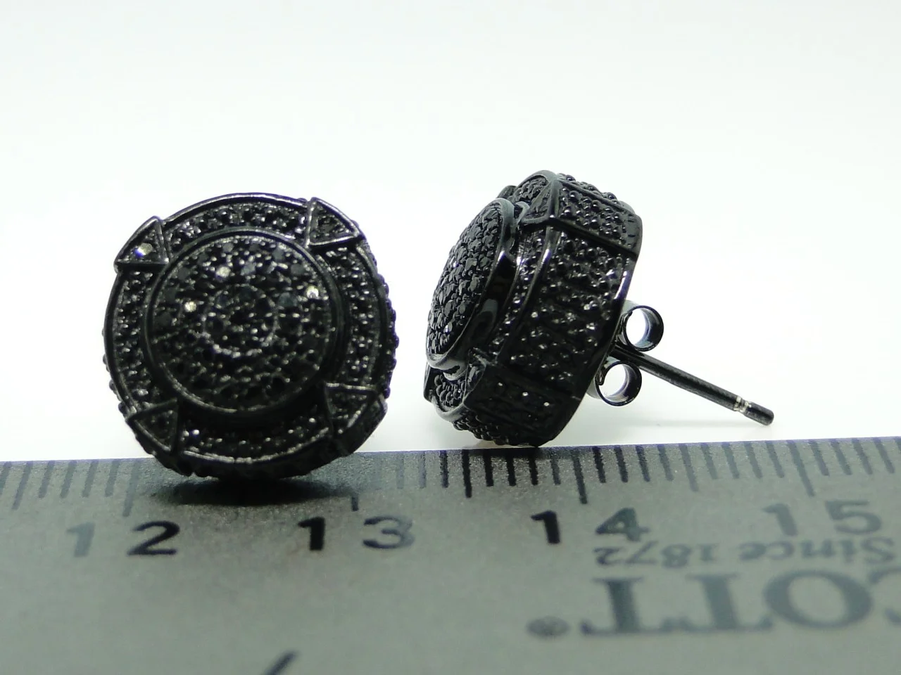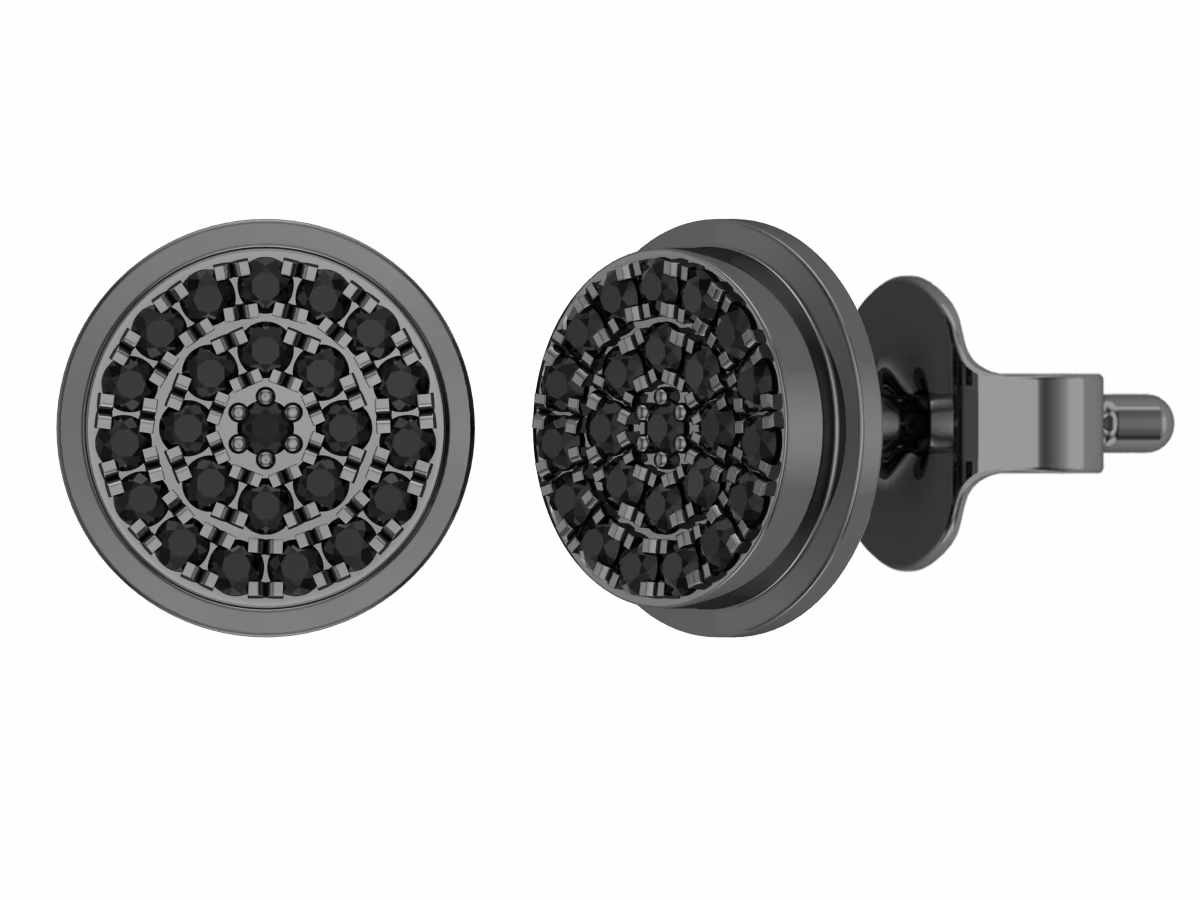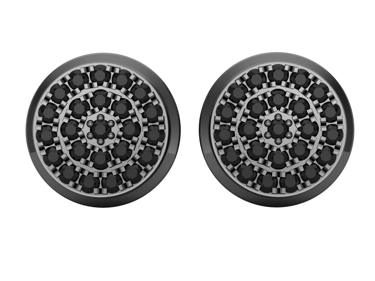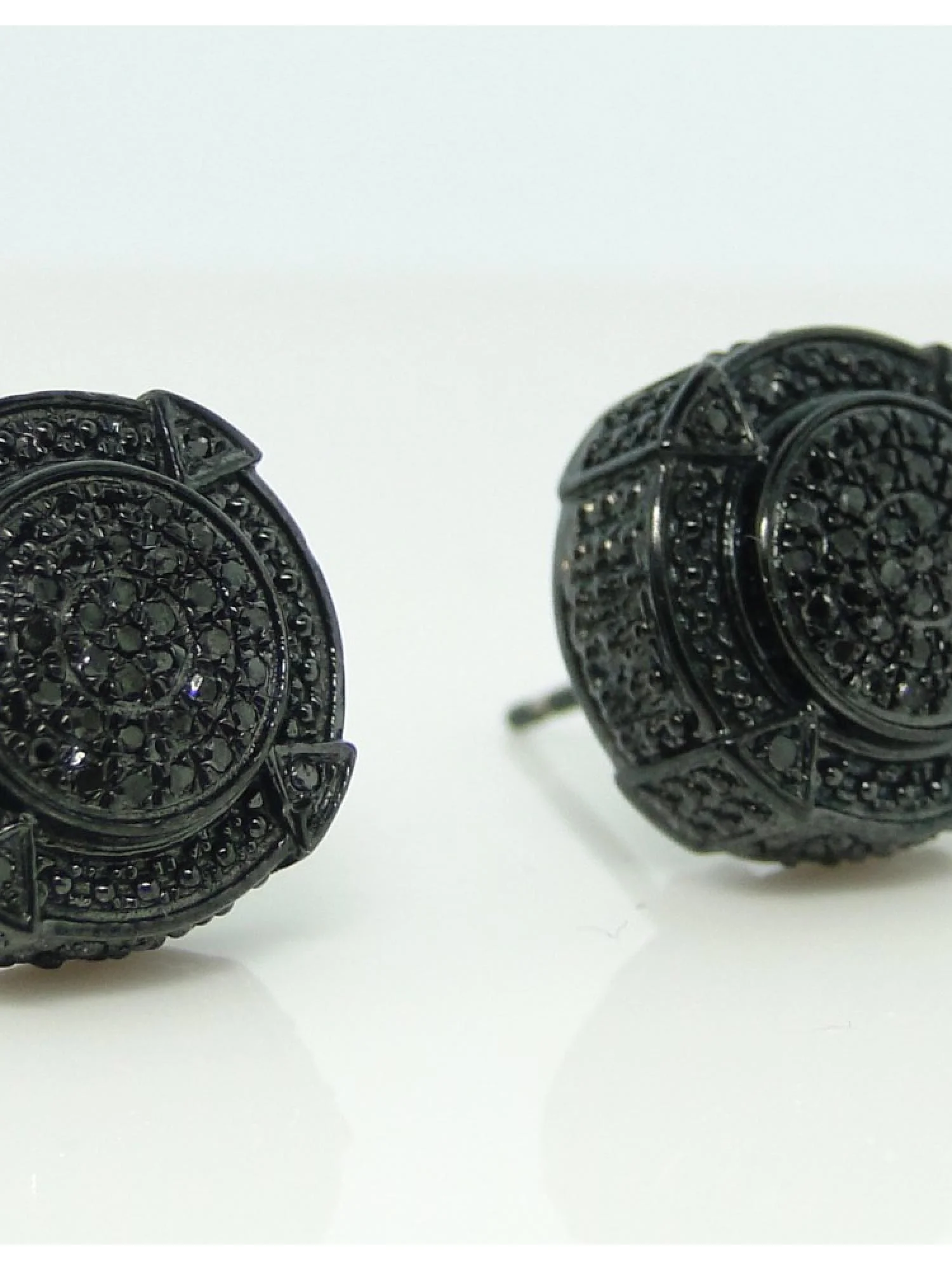 White Gold Finish Ladies Black White Pave Diamond Butterfly Stud Earrings 1/3 ct