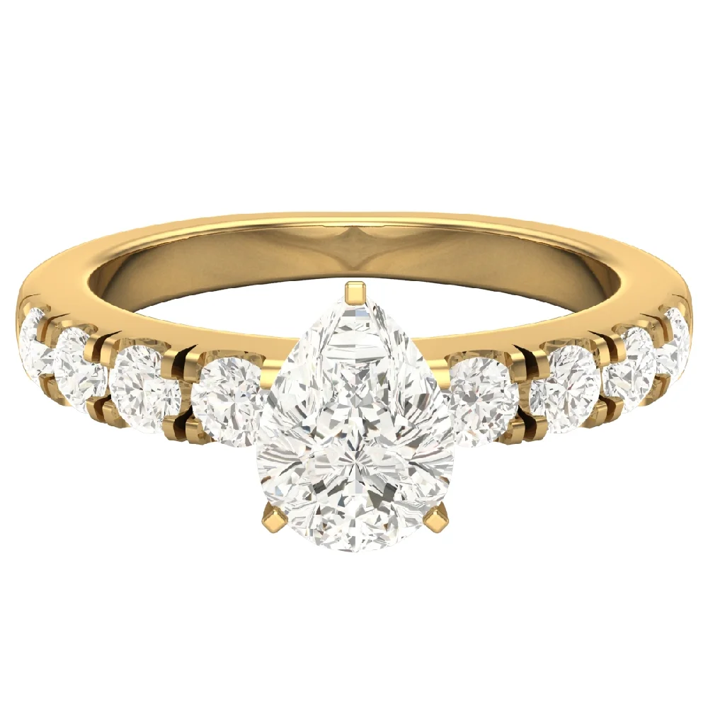 Diamond Engagement Rings For Women GIA Certified Pear Cut Solitaire Diamond Ring 14K Gold 1.20 Carat (K,I1)