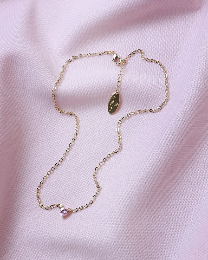 By Fabrizio Design Aurora Cuore Pink Heart Charm Gold-Plated Chain Necklace for Women