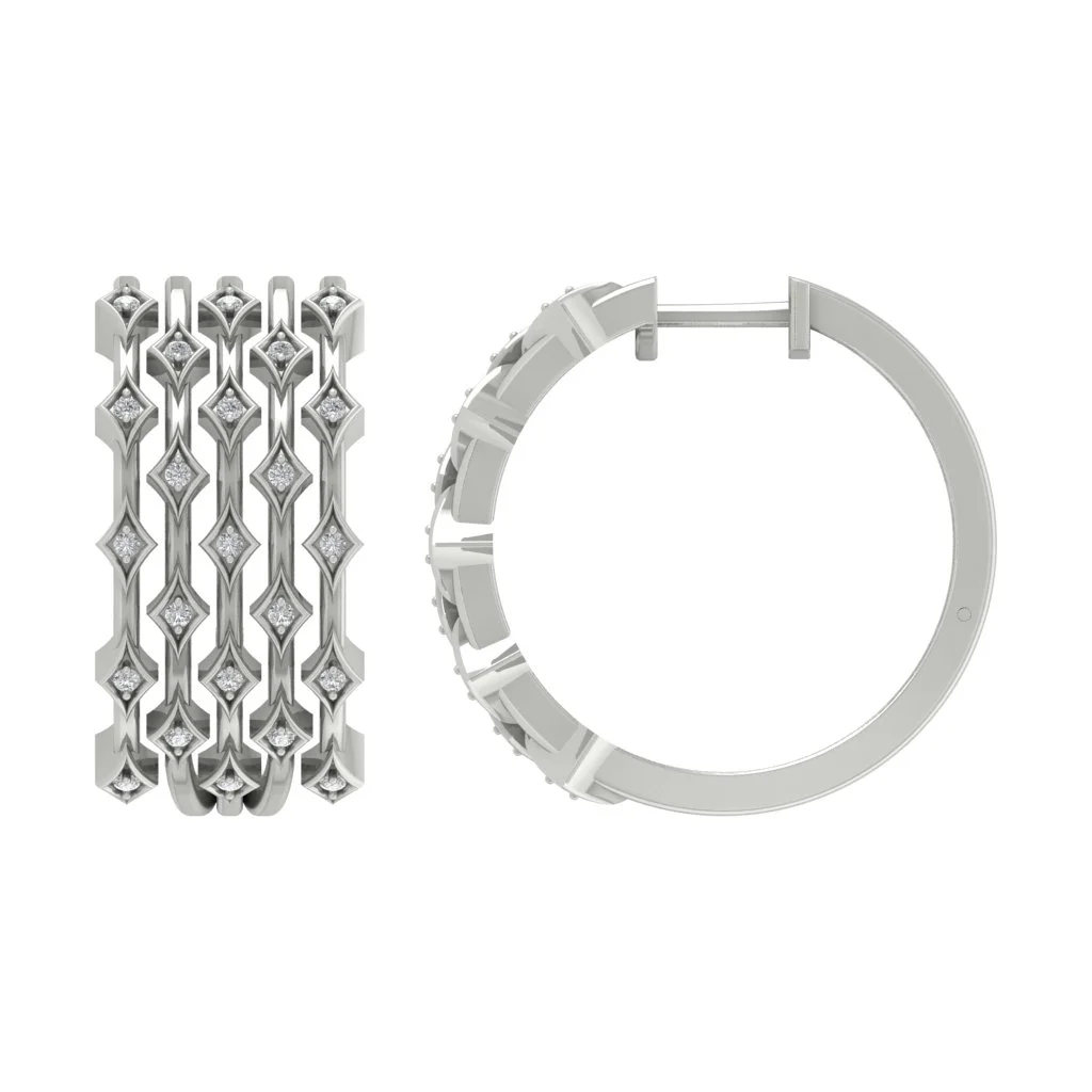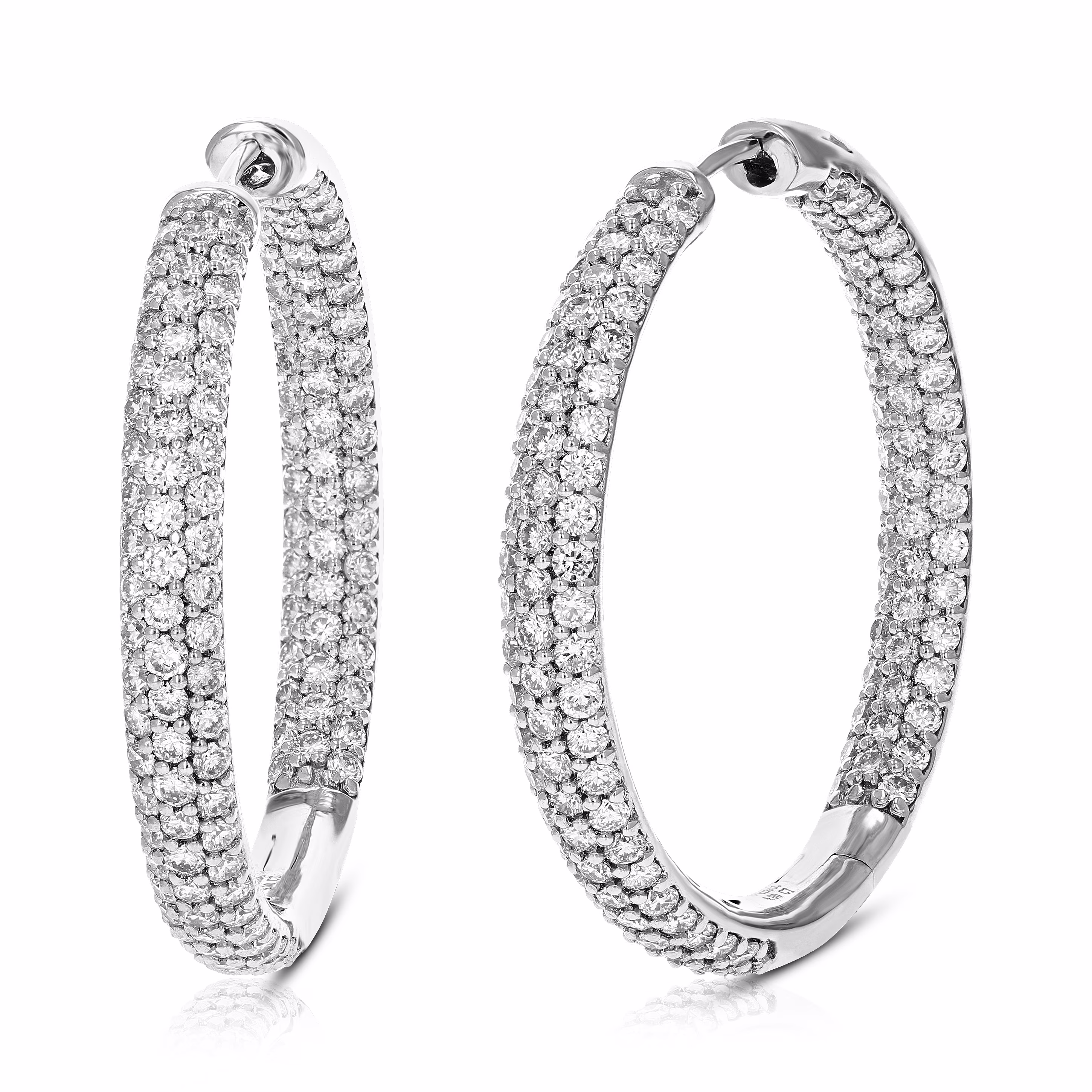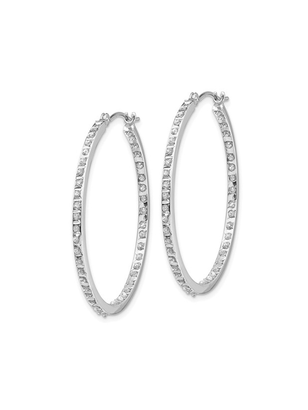 Accent Diamond In and Out Hoop Earrings in 14K White Gold (1 1/3 Inch)