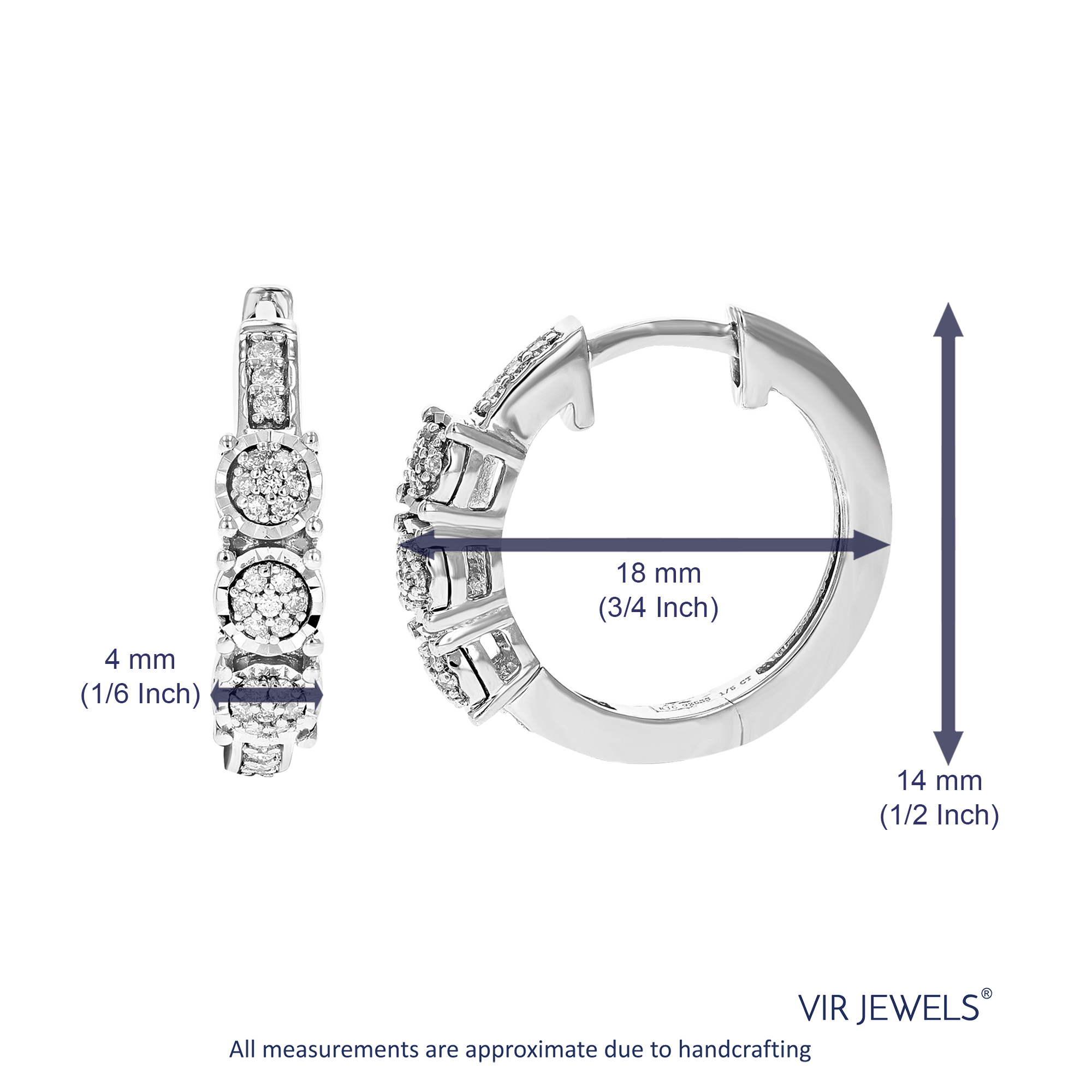 Vir Jewels 1/5 CTTW Lab Grown Diamond Hoop Earrings 925 Sterling Silver Prong 2/3 Inch