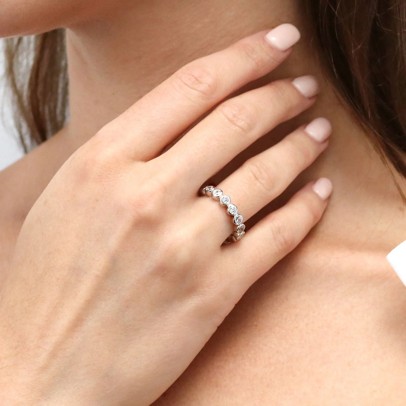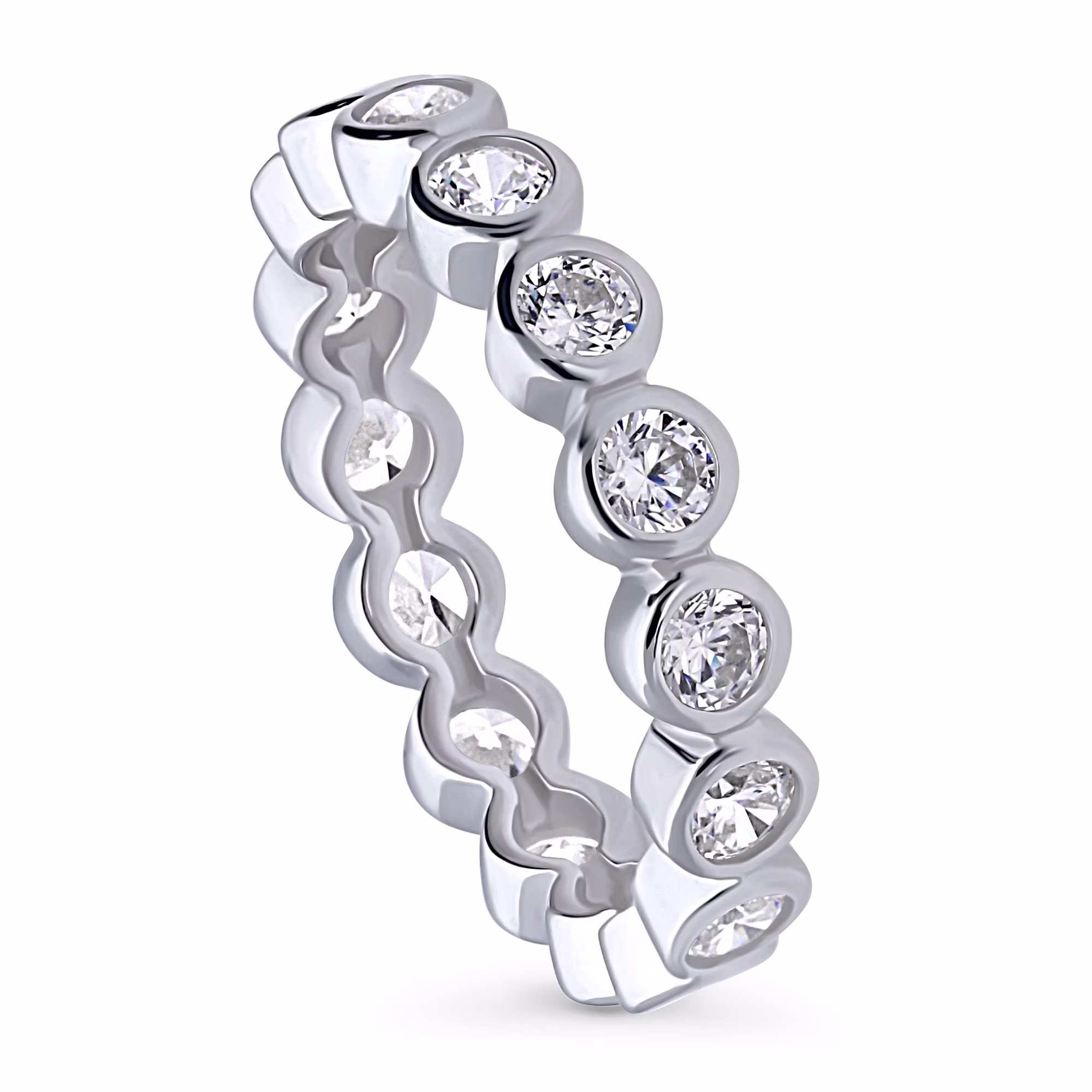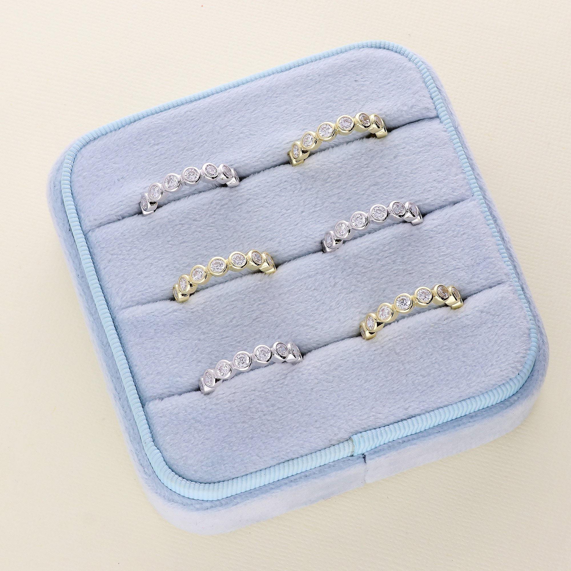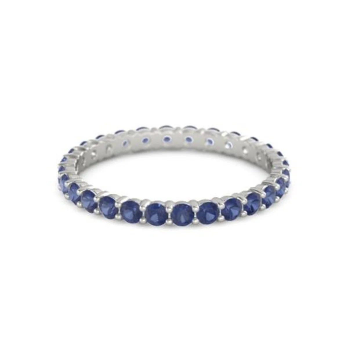 Blue Sapphire Round 2.50 MM Eternity 925 Sterling Silver Women Stacking Ring Jewelry