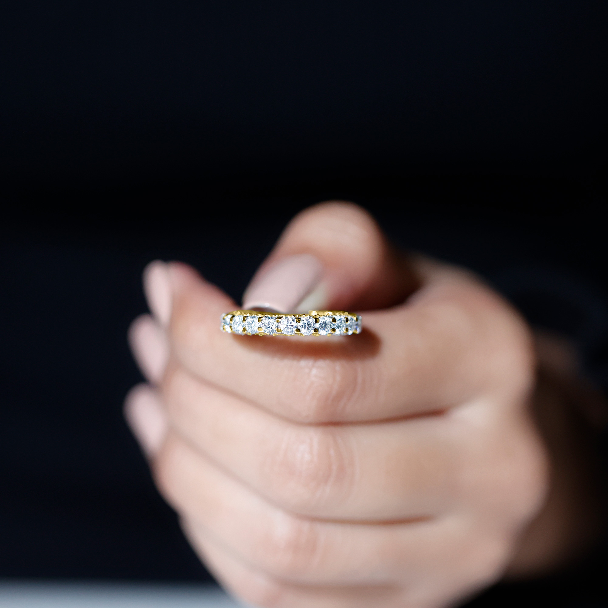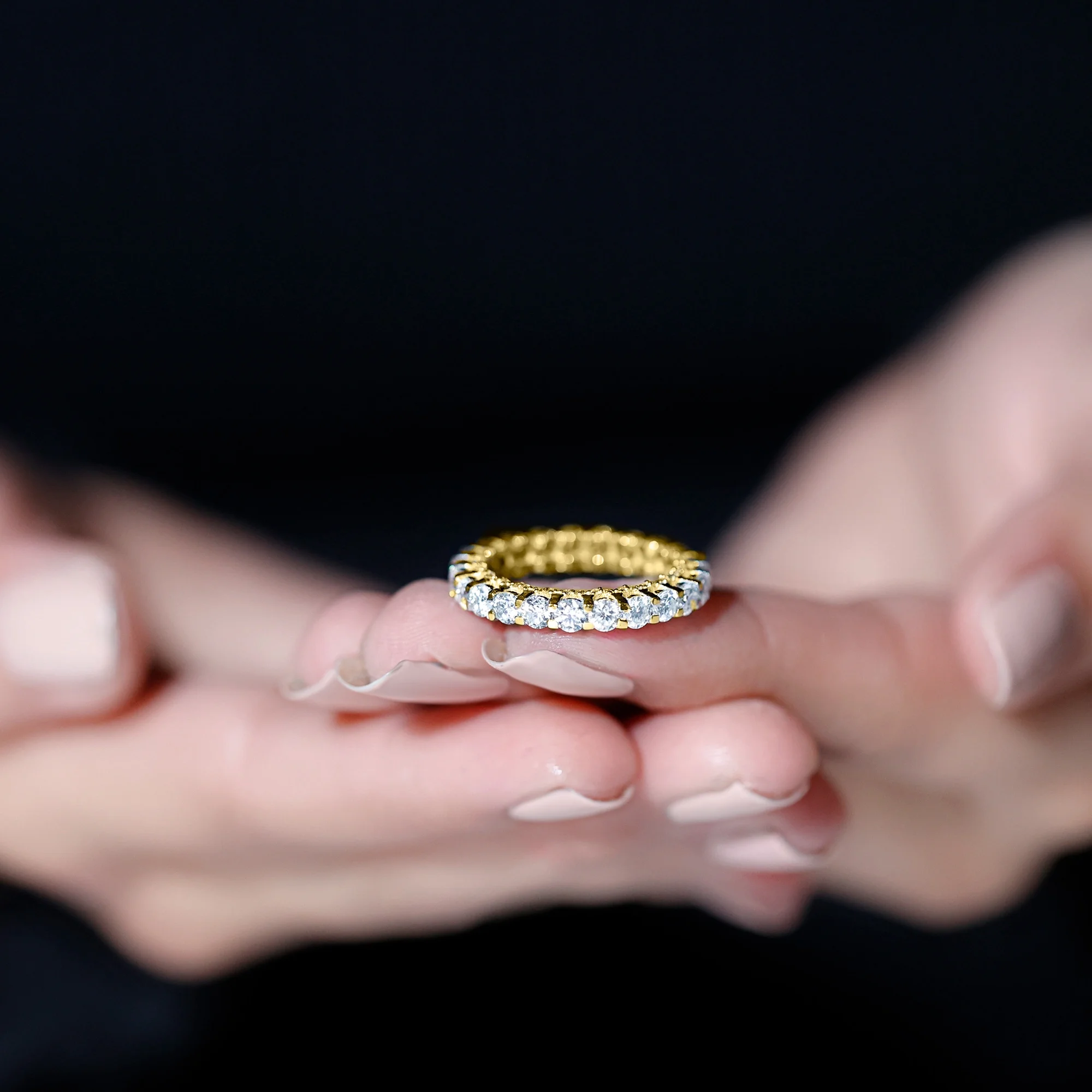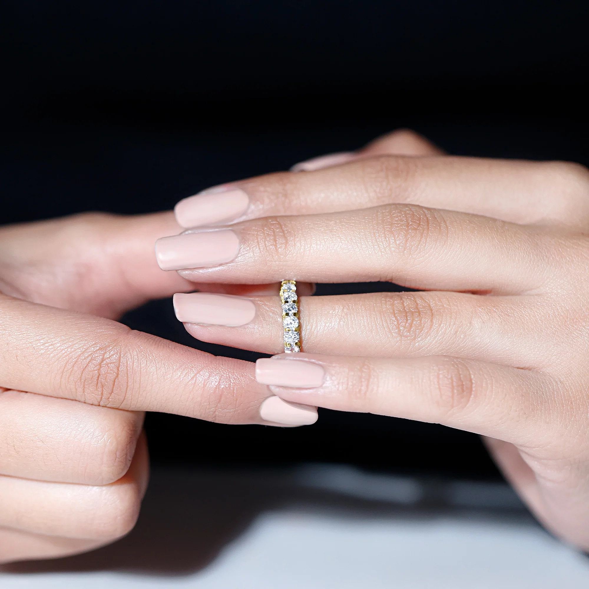 Moissanite Eternity Ring for Women, Wedding Anniversary Ring (D-VS1 Grade), 14K Yellow Gold, US 3.50
