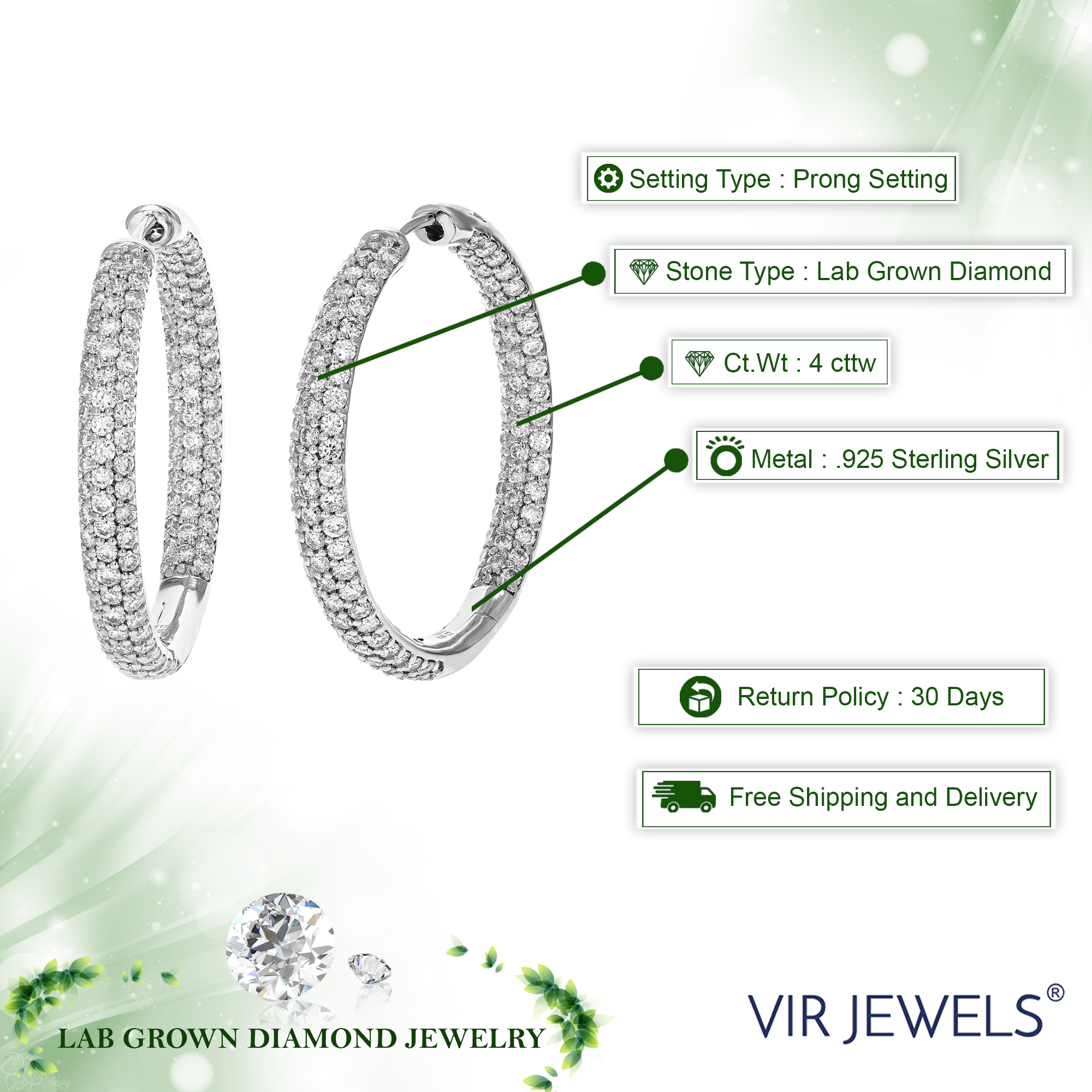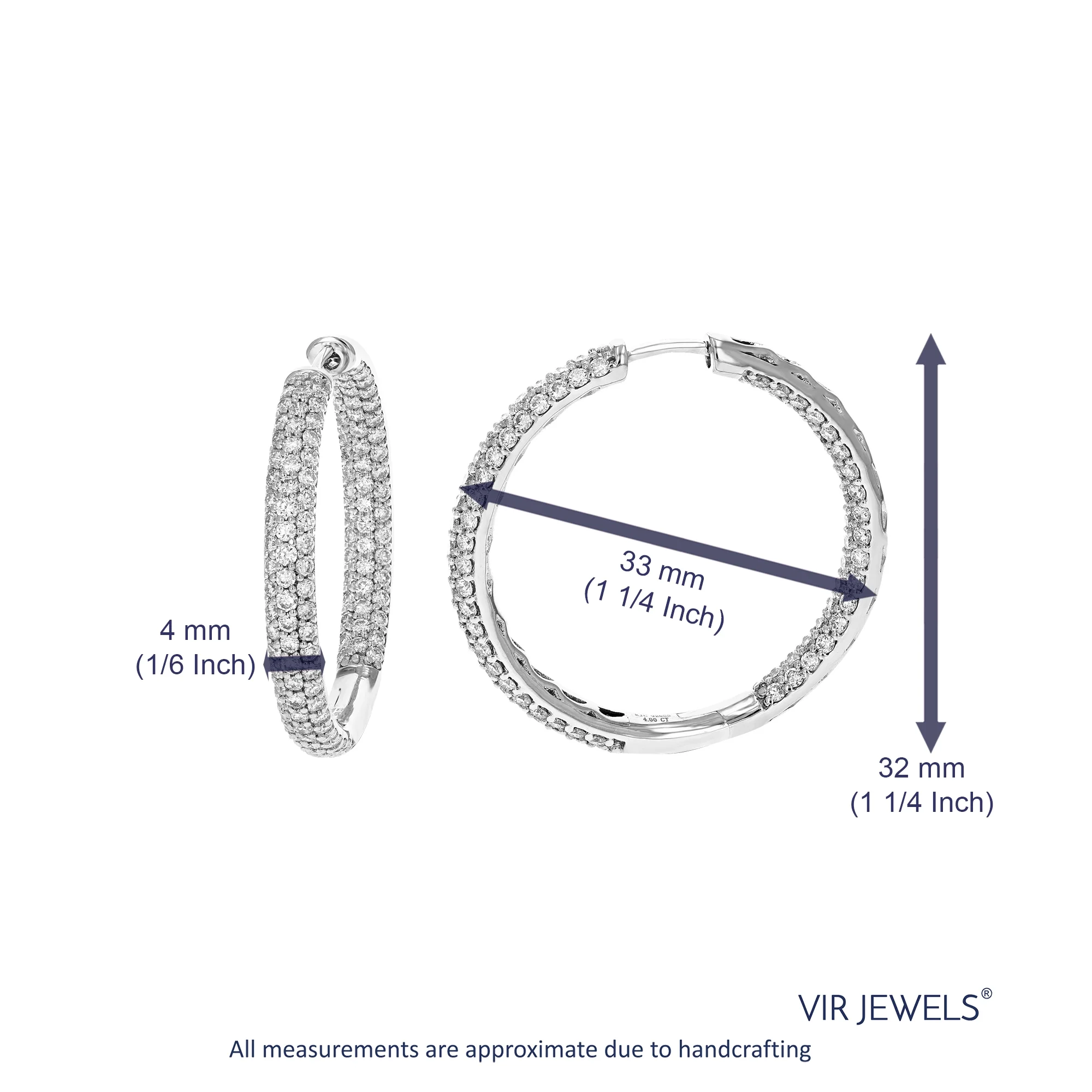 Vir Jewels 4 CTTW Lab Grown Diamond Hoop Earrings 925 Sterling Silver Prong 1 1/4 Inch
