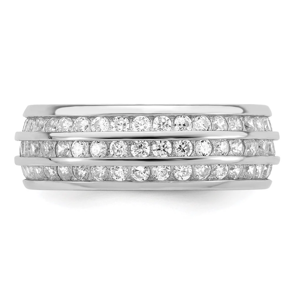 Auriga 925 Sterling Silver Rhodium-plated CZ 3-row Eternity Ring for Women Size- 7