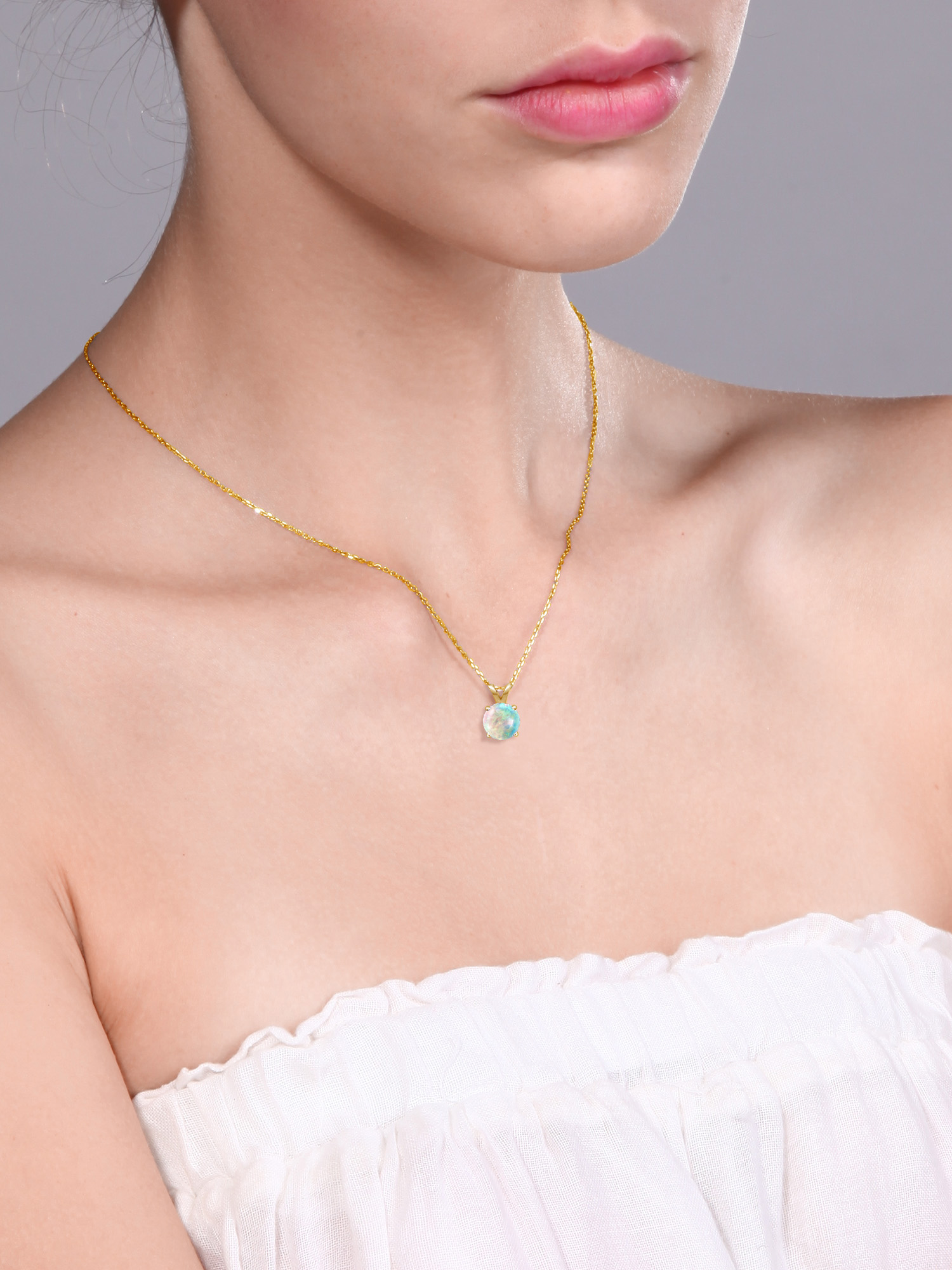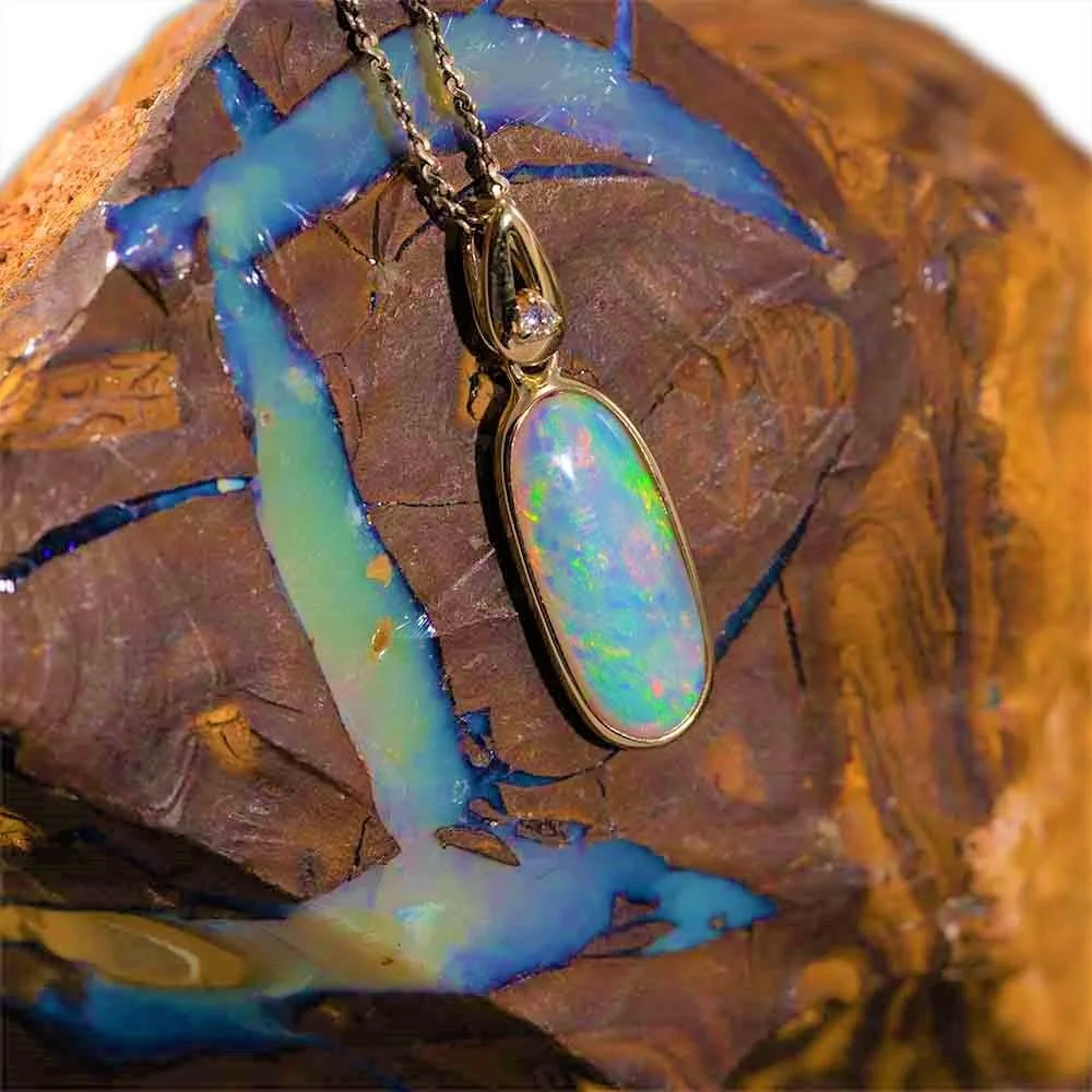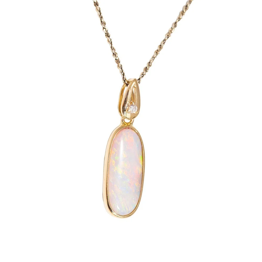 DEEP LOVE 14KT GOLD & DIAMOND NATURAL AUSTRALIAN WHITE OPAL NECKLACE