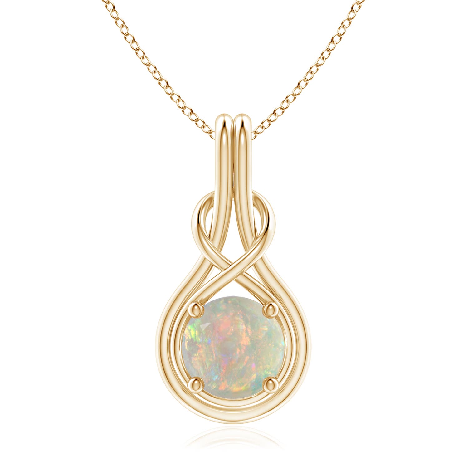 Angara Natural 8mm Opal Infinity Pendant Necklace in 14K Yellow Gold for Women