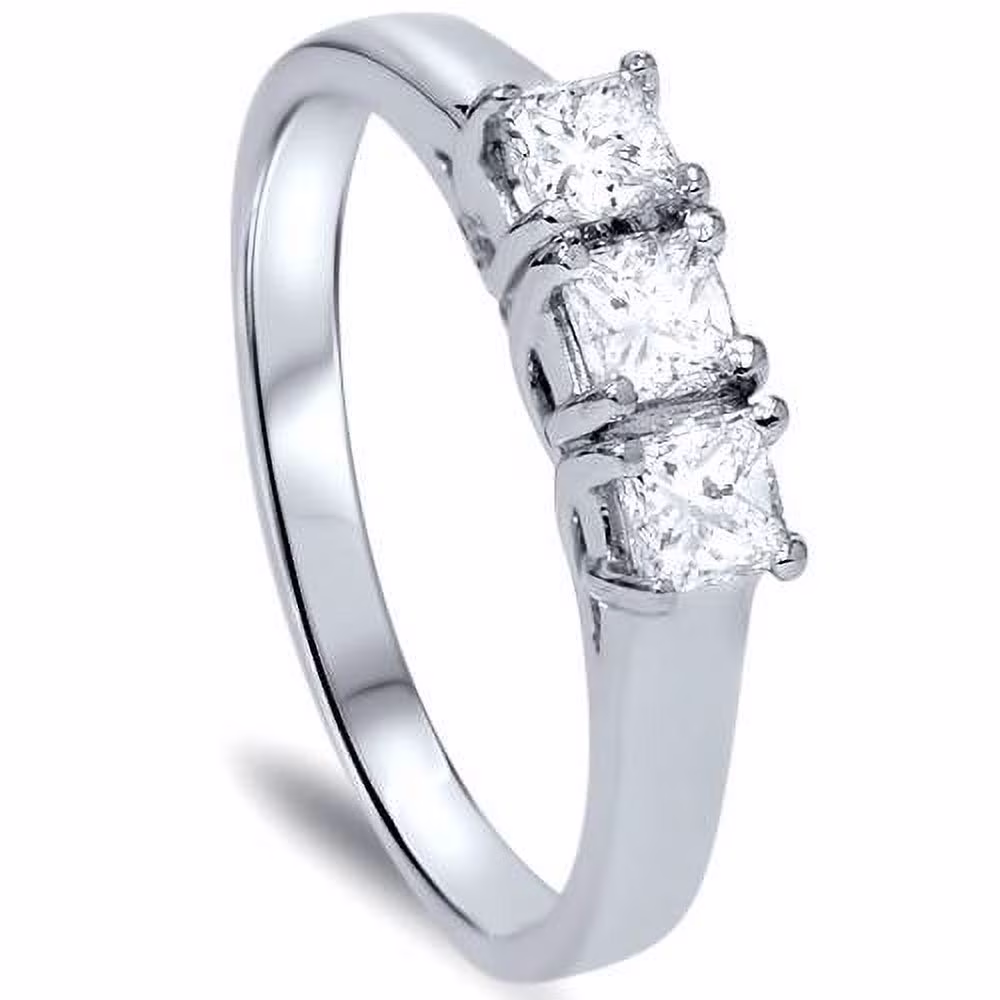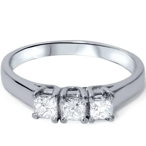 Central Diamond Center Straight Bar Style CZ 3 Stone Ring 2.50ctw - 10k White Gold - Size 6