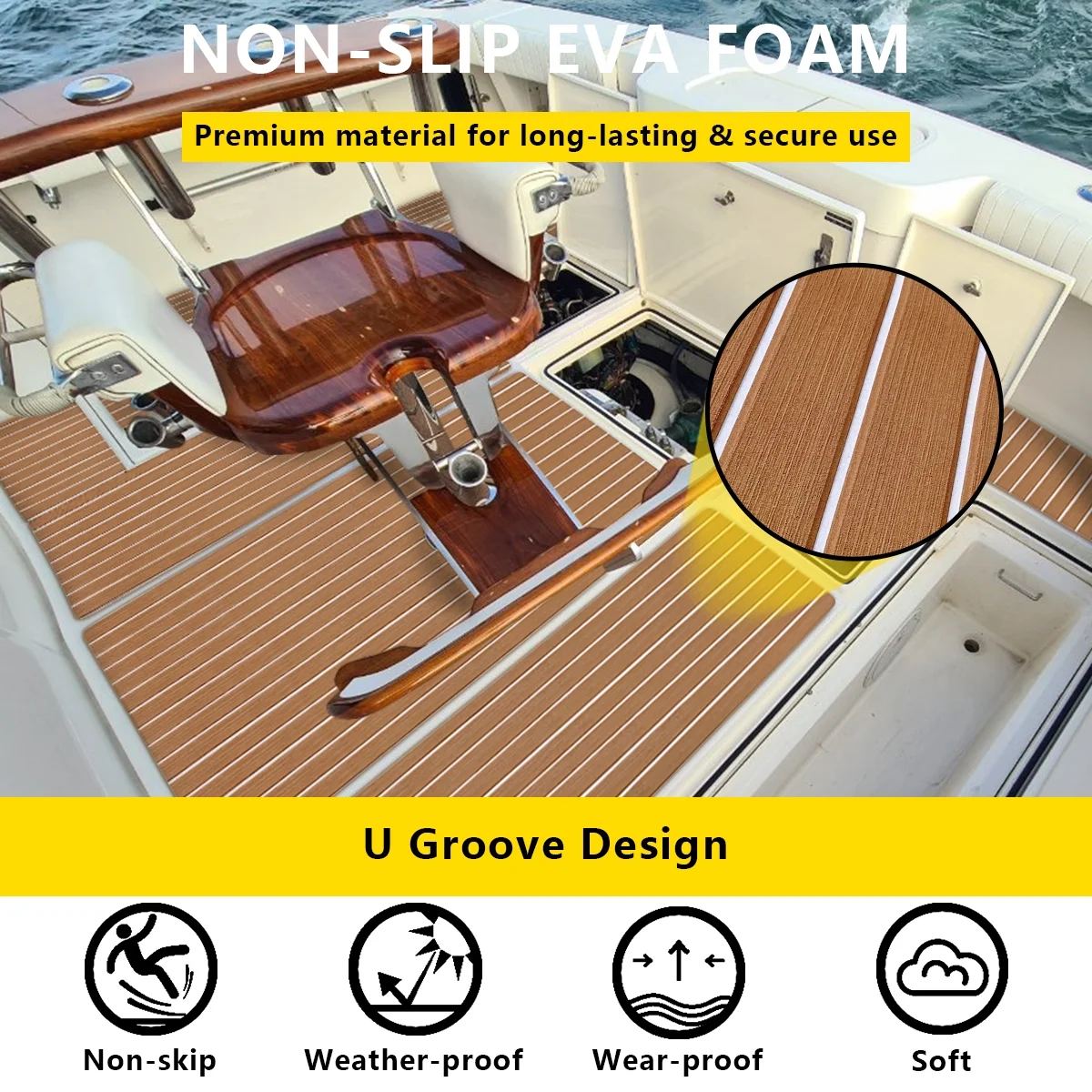 Boat Decking EVA Teak Decking Sheet, Faux Teak Decking Mat for Boat Yacht Marine Brown