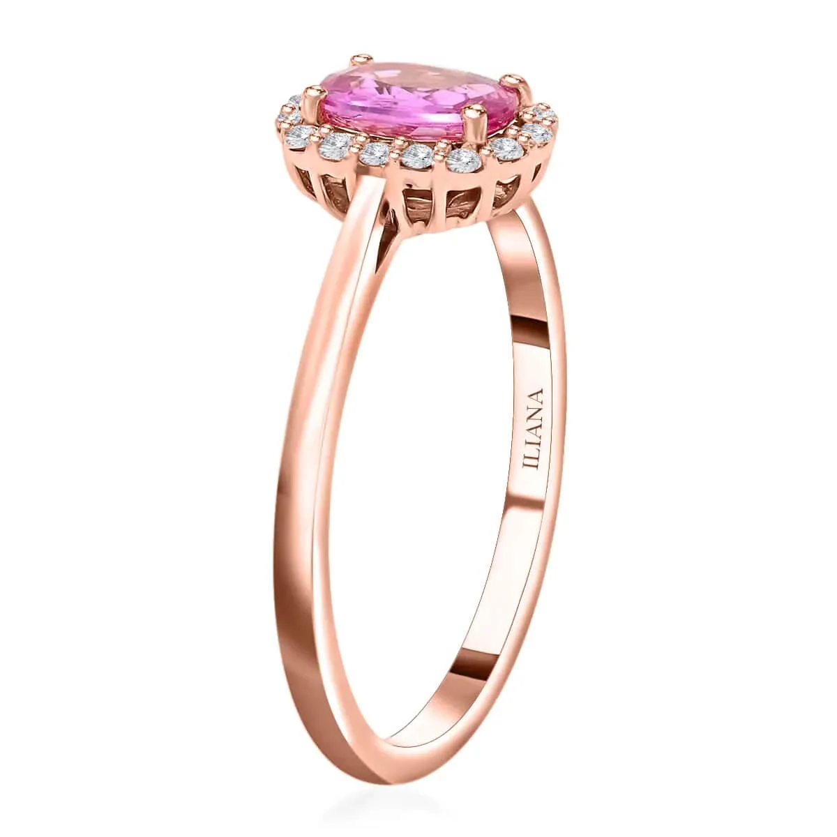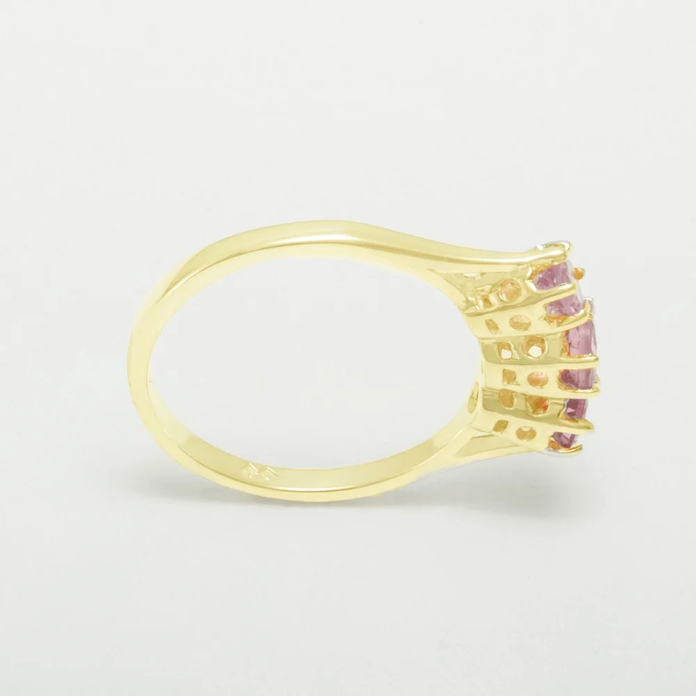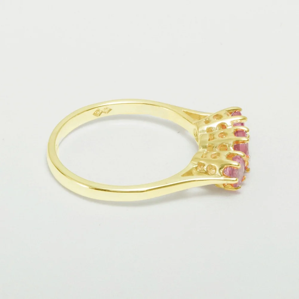 LBG British Made 14k Yellow Gold Natural Pink Tourmaline Womens Engagement Ring - 33 size options - Size 8.5