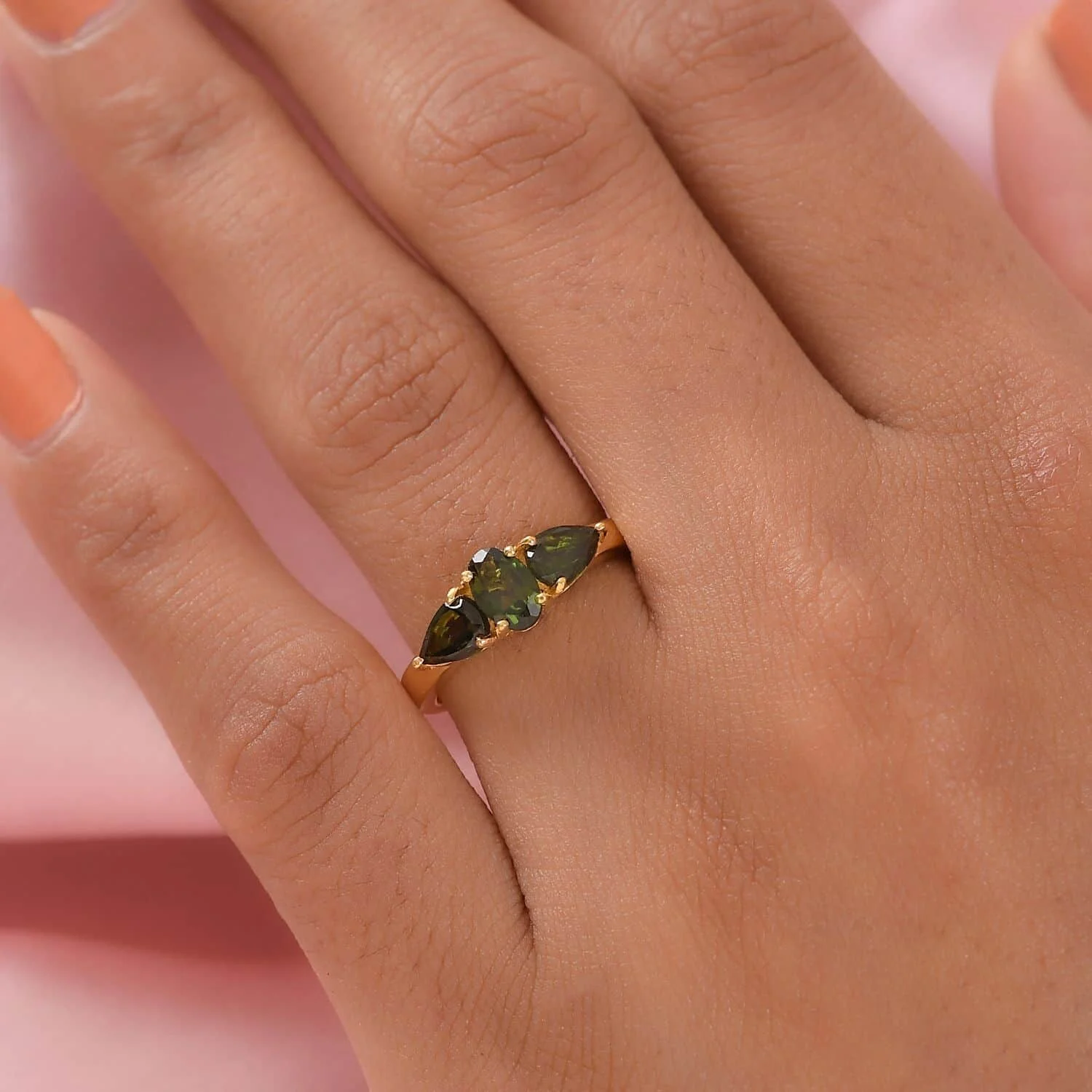Sterling Silver with Color Changing Alexandrite and Moissanite Three Stone Ring