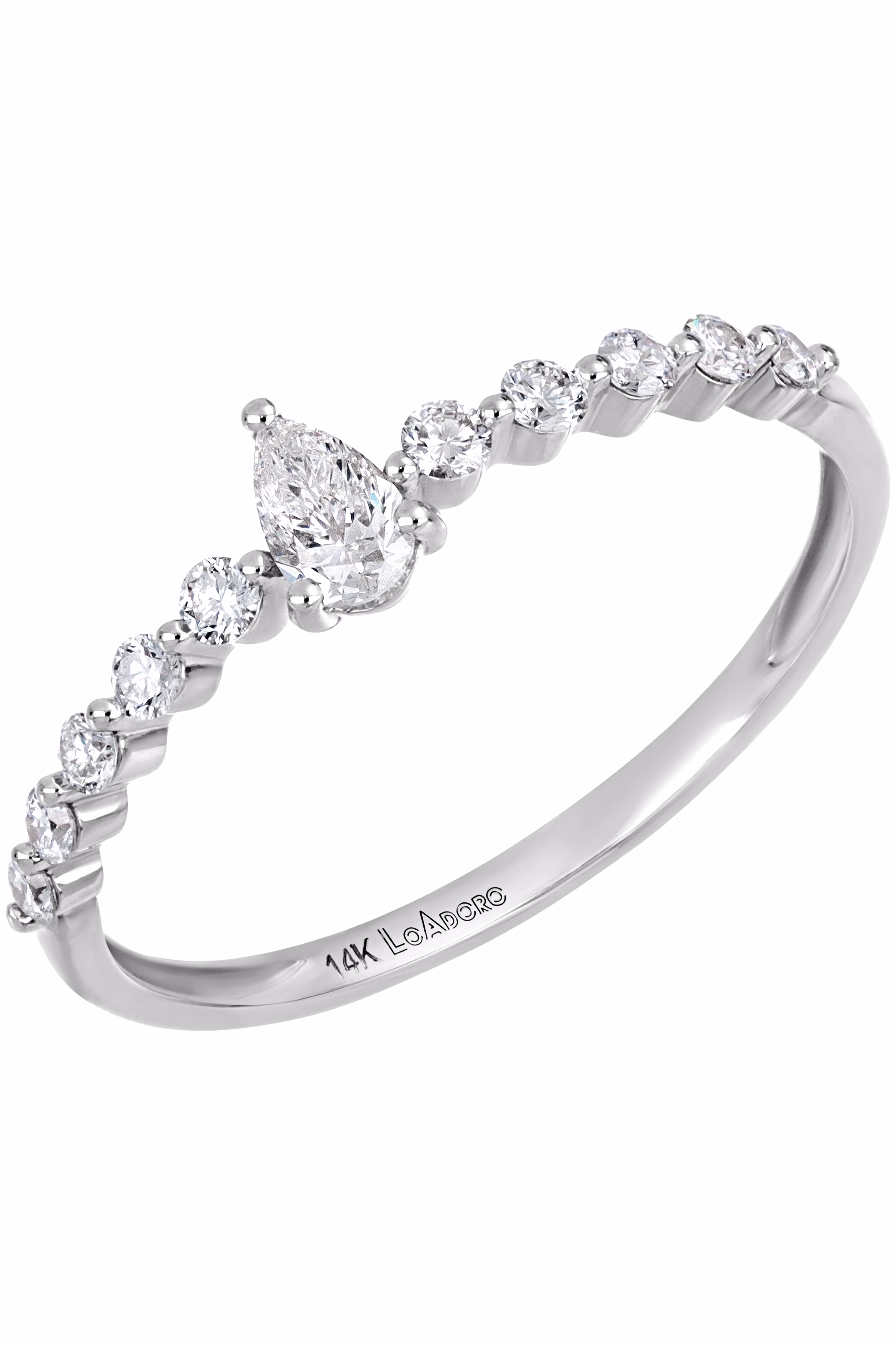 Lo Adoro Genuine Diamond Ring with Pear Shape Center in 14K White 0.32 Total Carat Weight