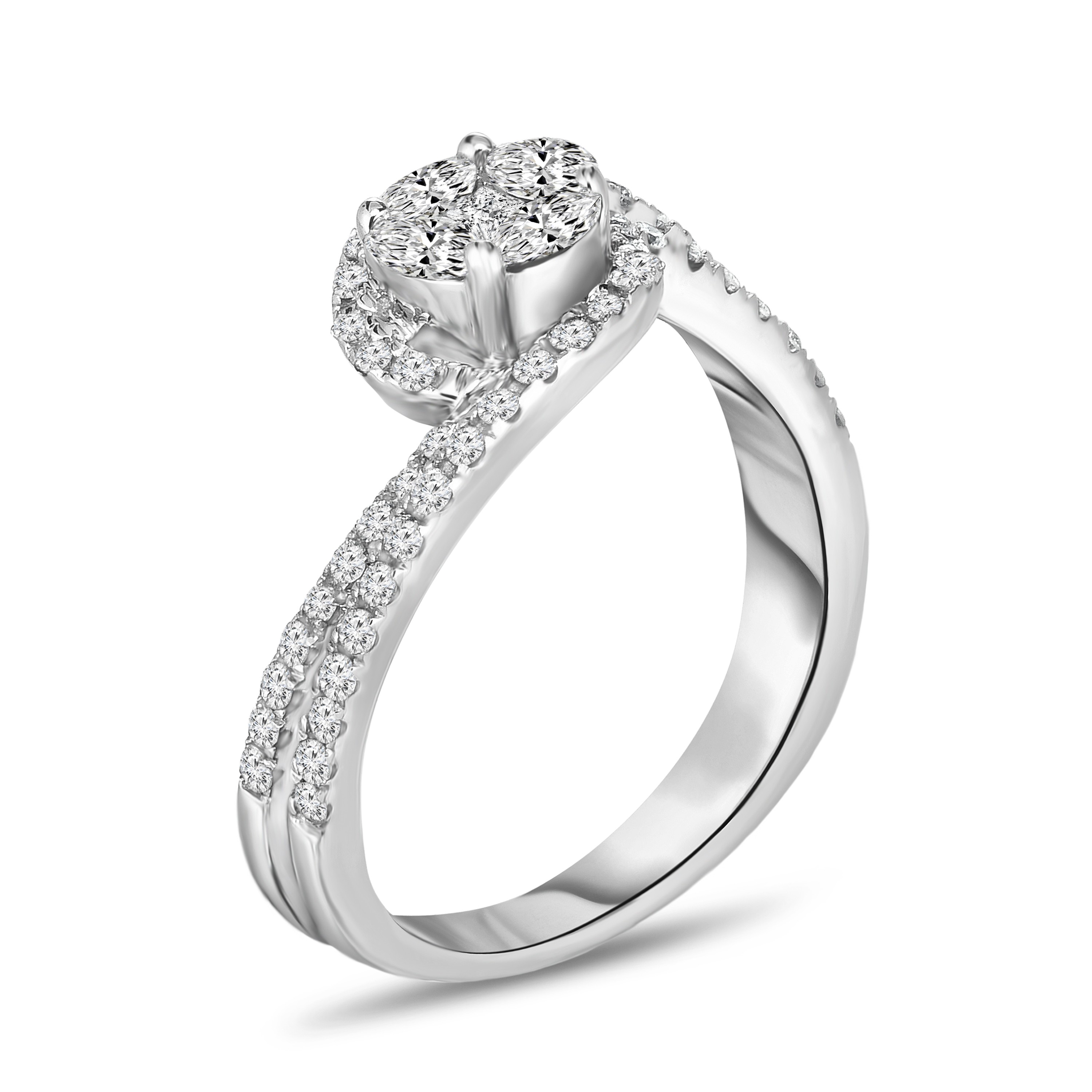 Adorne Collection 3/4 CT. T.W. Composite Diamond Double Row Bypass Shank Ring in 14K White Gold