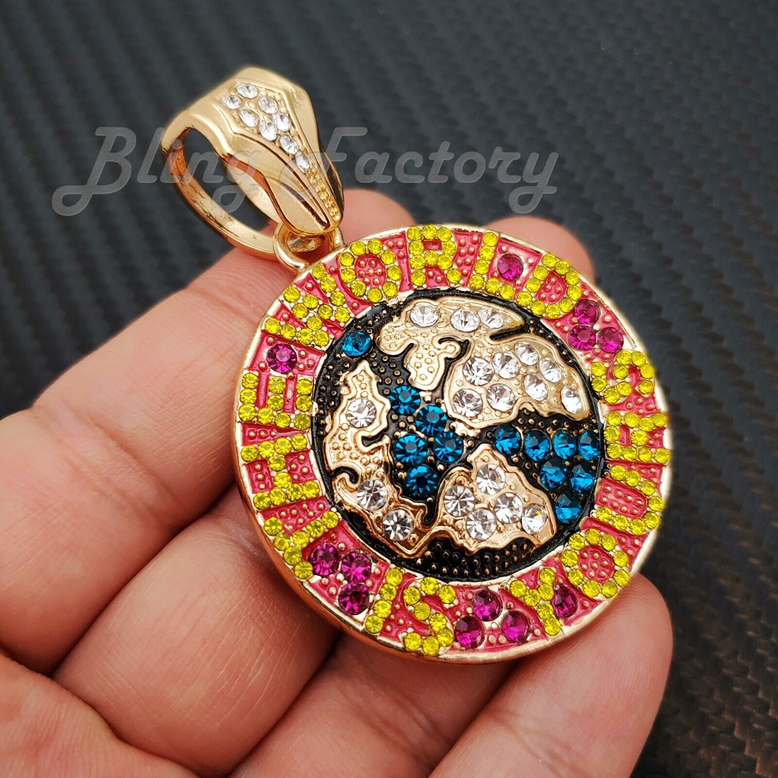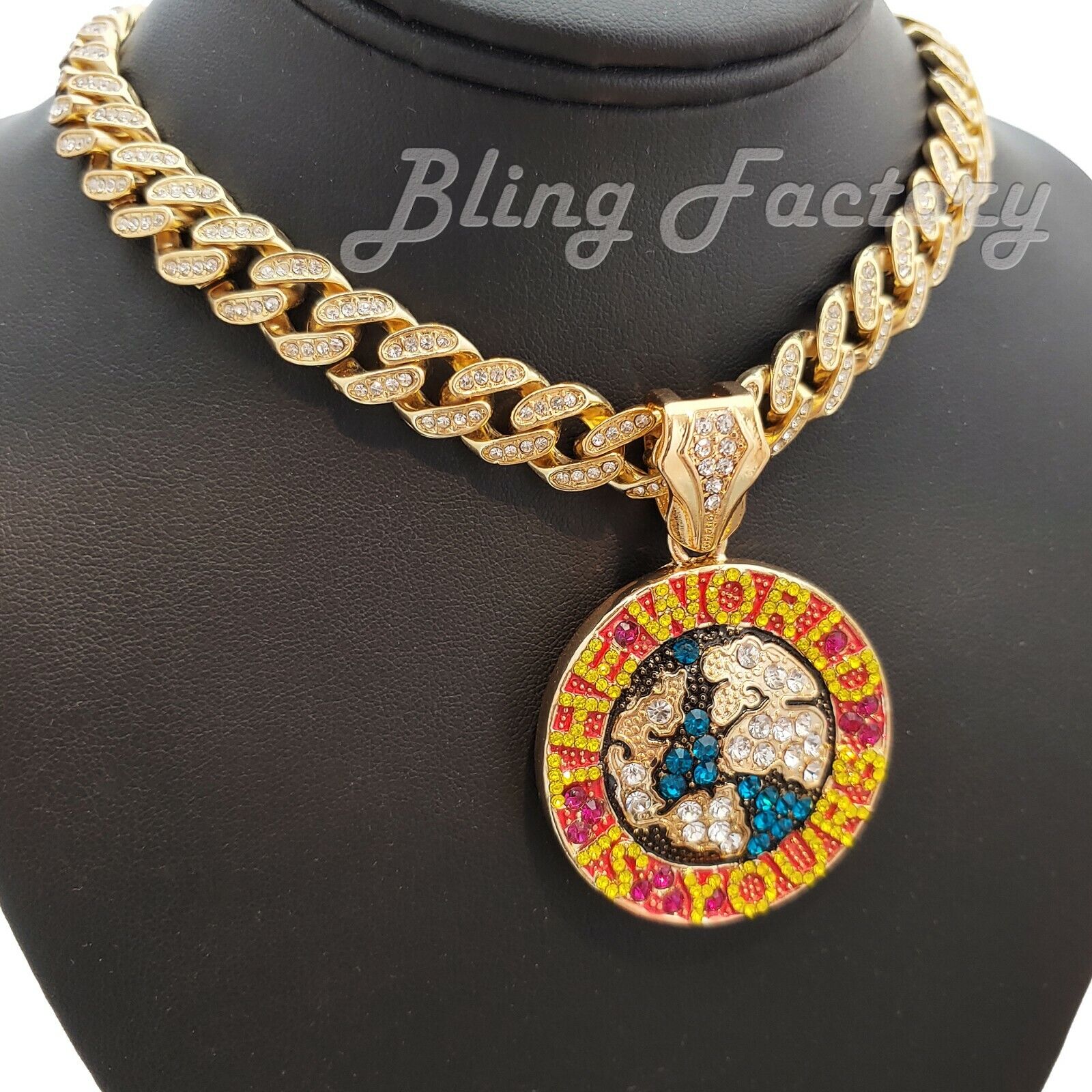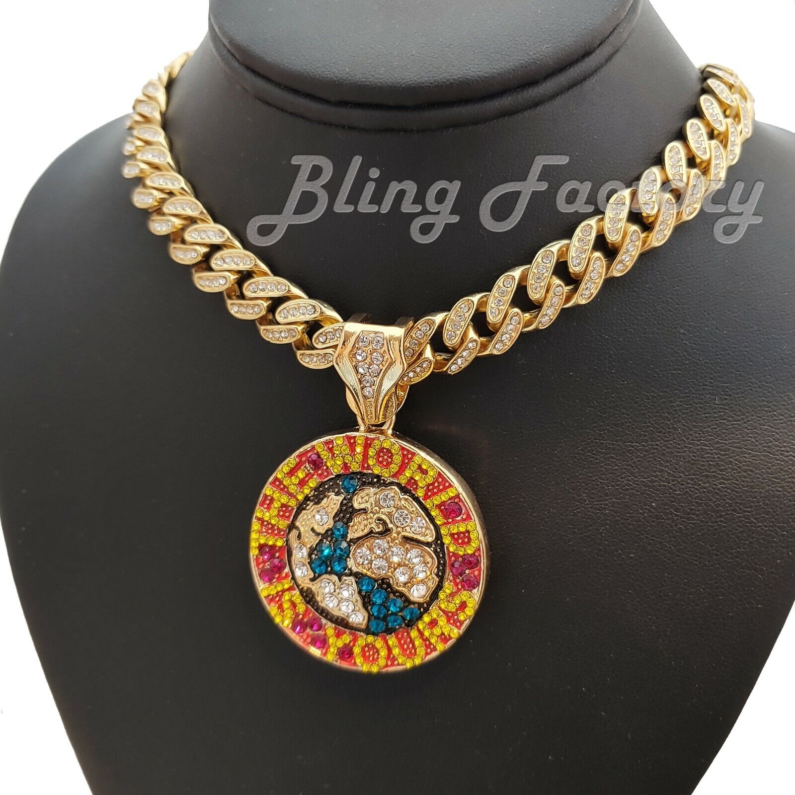 The World is Yours Pendant & 16" 18" 20" 24" Iced Cuban Box Lock Chain Necklace