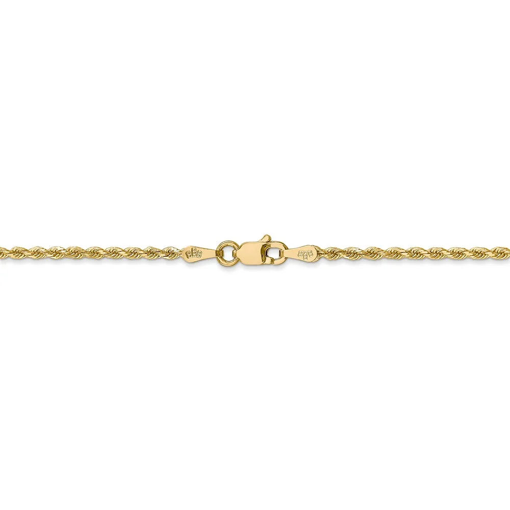 Real 14kt Yellow Gold 1.75mm Diamond Cut Rope with Lobster Clasp Chain; 16 inch; for Adults and Teens