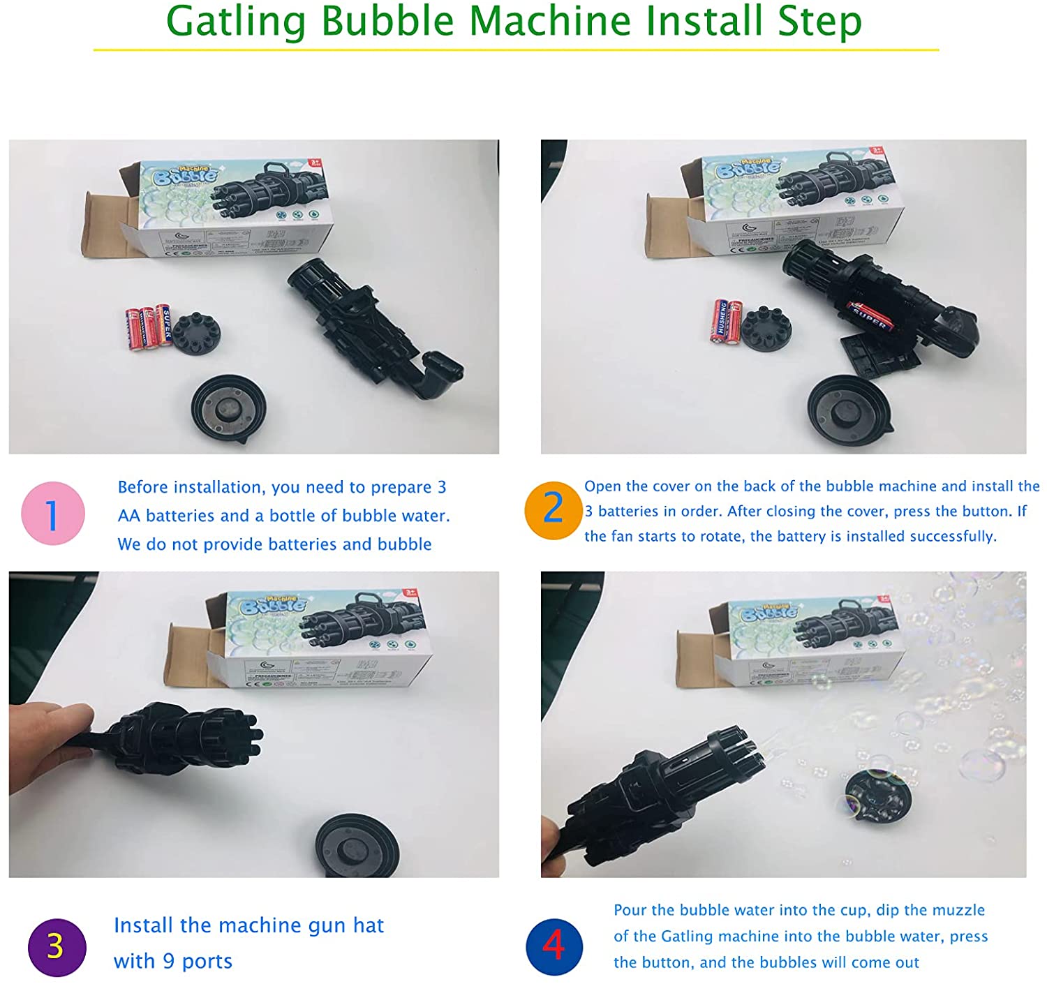 YouLoveIt Gatling Bubble Machine 8-Holes Bubble Maker Bubble Gun Gatling Bubble Machine Summer Outdoor Activities Toys for Kid Bubbles Kids Toys, 1 pc