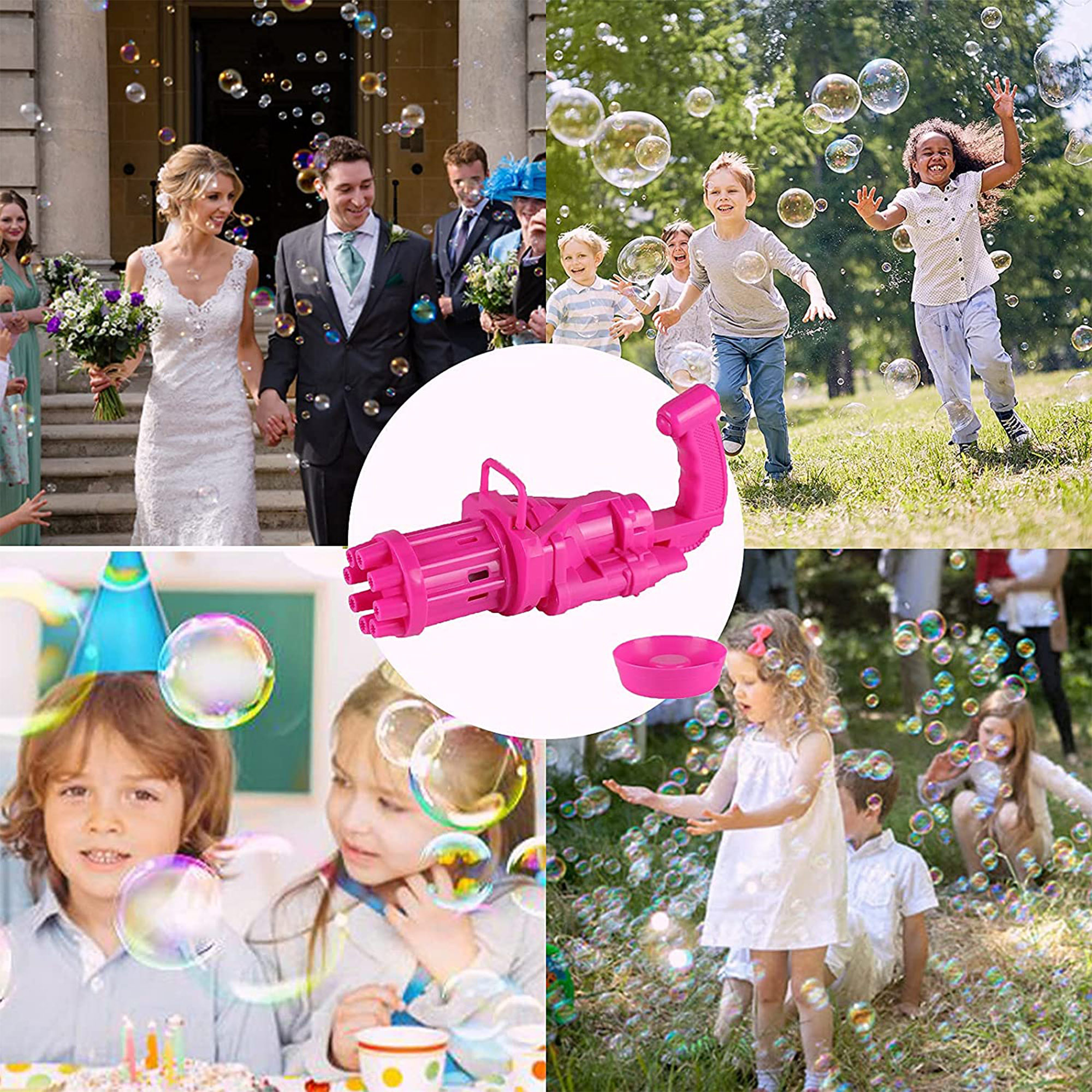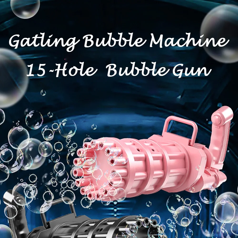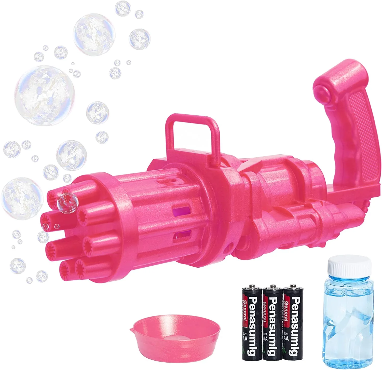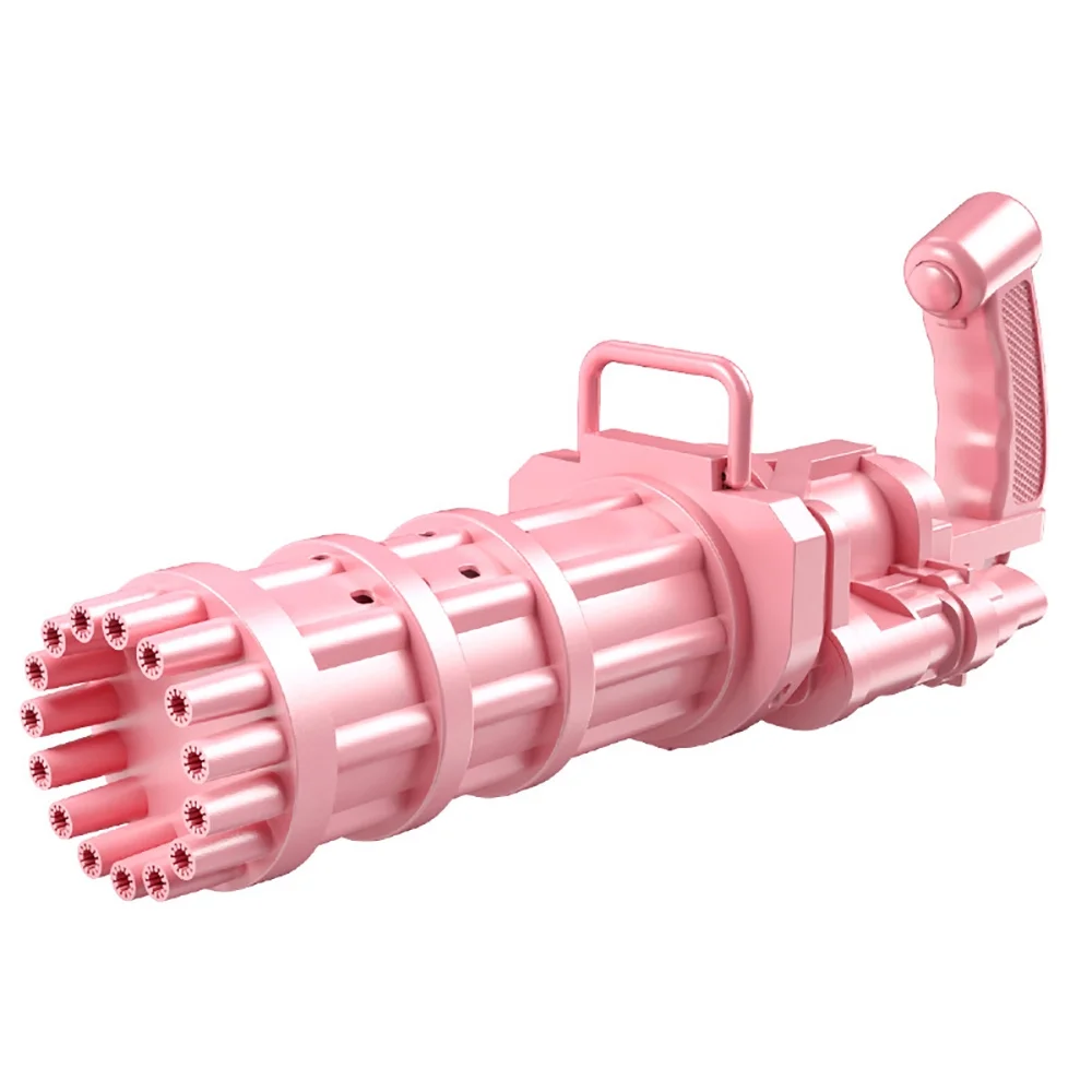 Gatling Bubble Machine 2021 Cool Automatic Gatling Bubble Gun , 15-Hole Novelty Electric Bubble Blower Gatling Gun Outdoor Toys for Kids - Pink