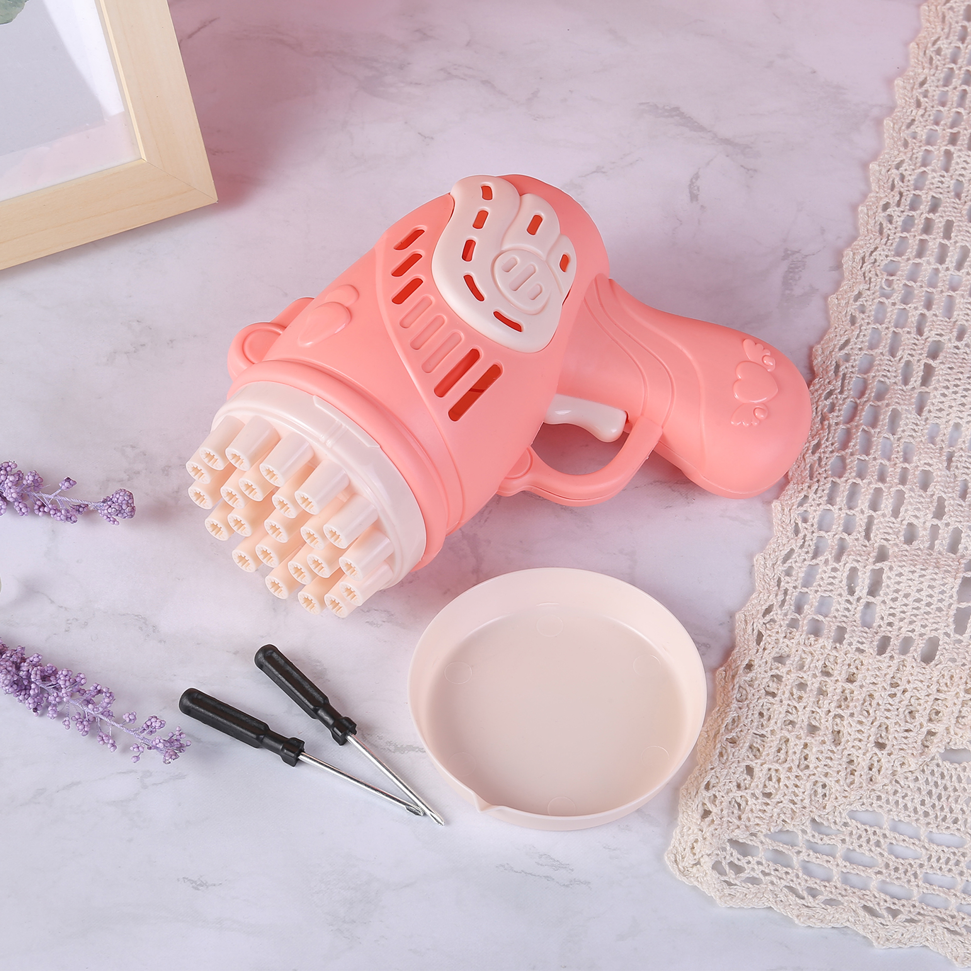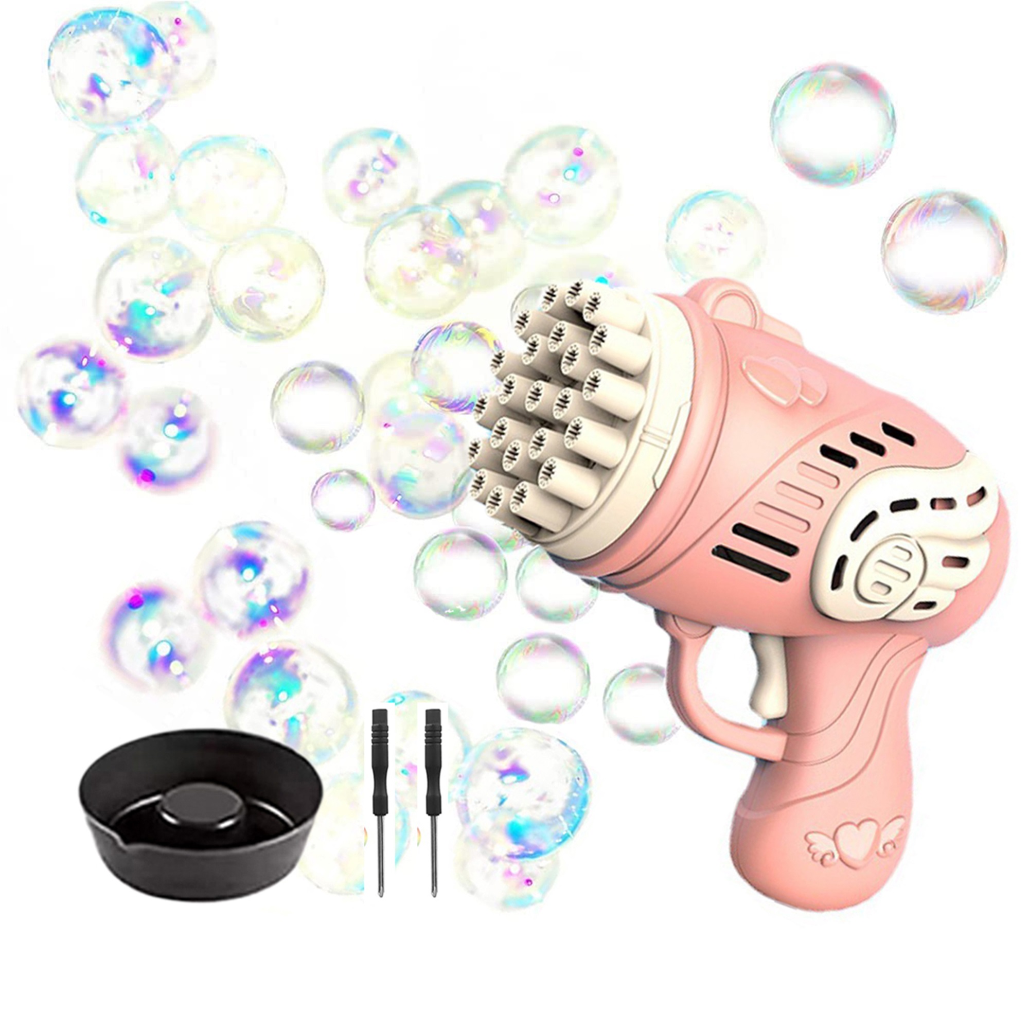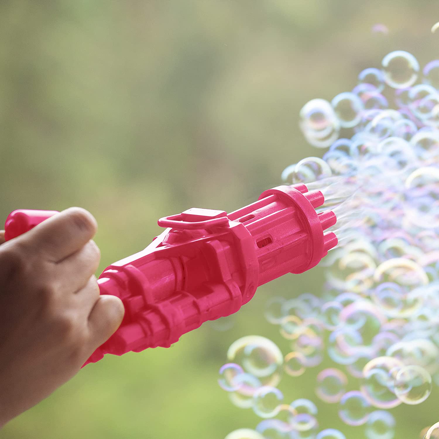 Gatling Bubble Machine 2021 Cool Automatic Gatling Bubble Gun , 15-Hole Novelty Electric Bubble Blower Gatling Gun Outdoor Toys for Kids - Pink