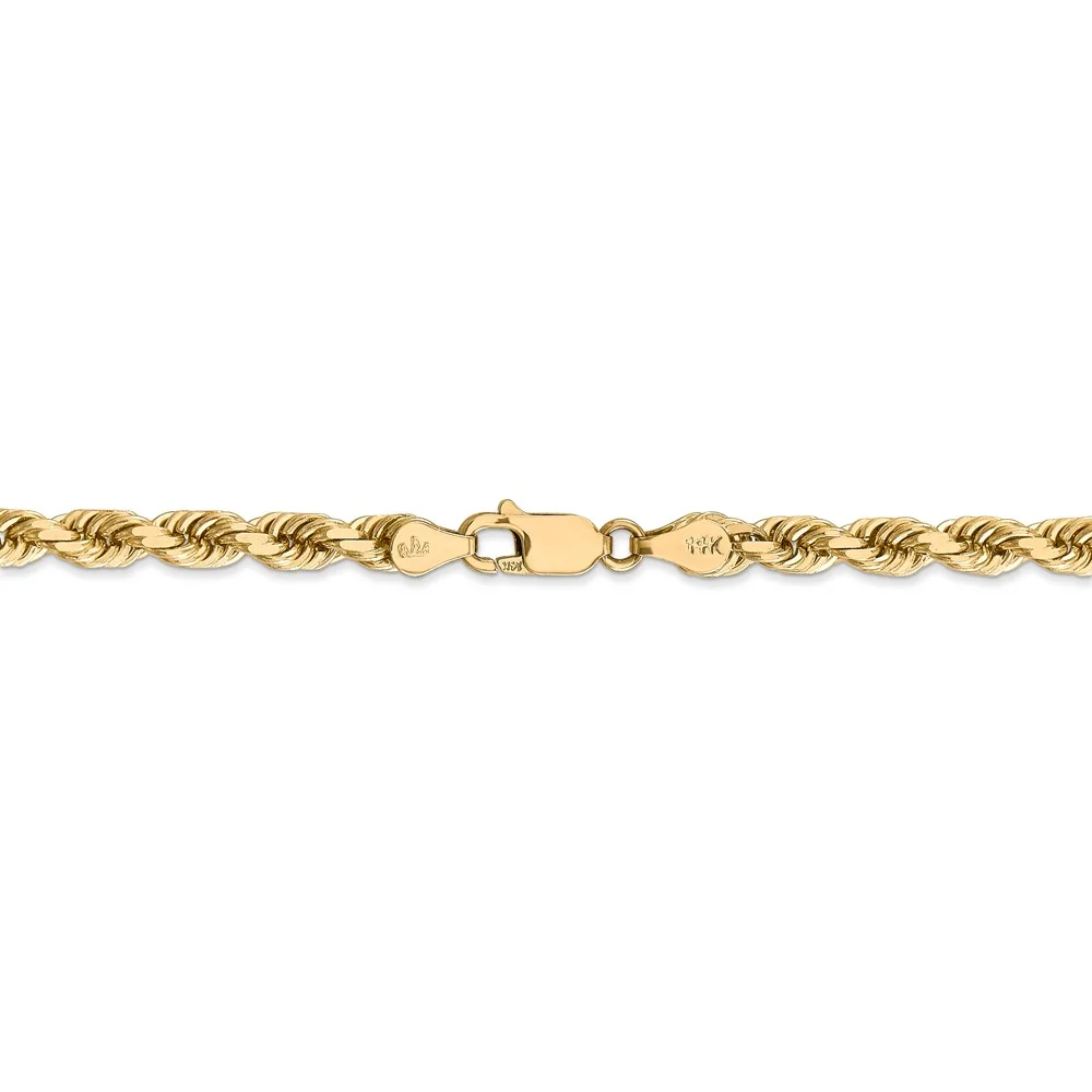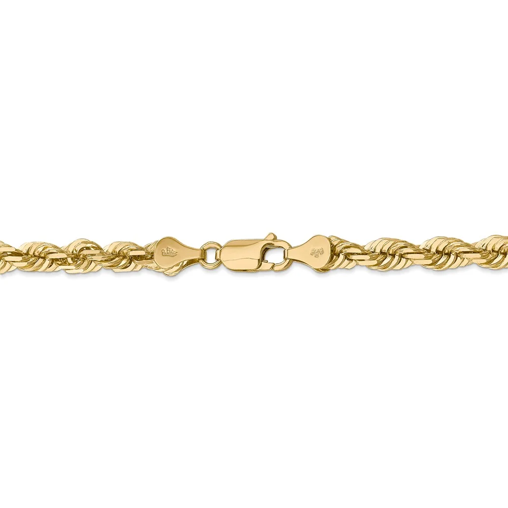 Real 14kt Yellow Gold 4.5mm Diamond Cut Rope with Lobster Clasp Chain Chain ; for Adults and Teens; for Women and Men