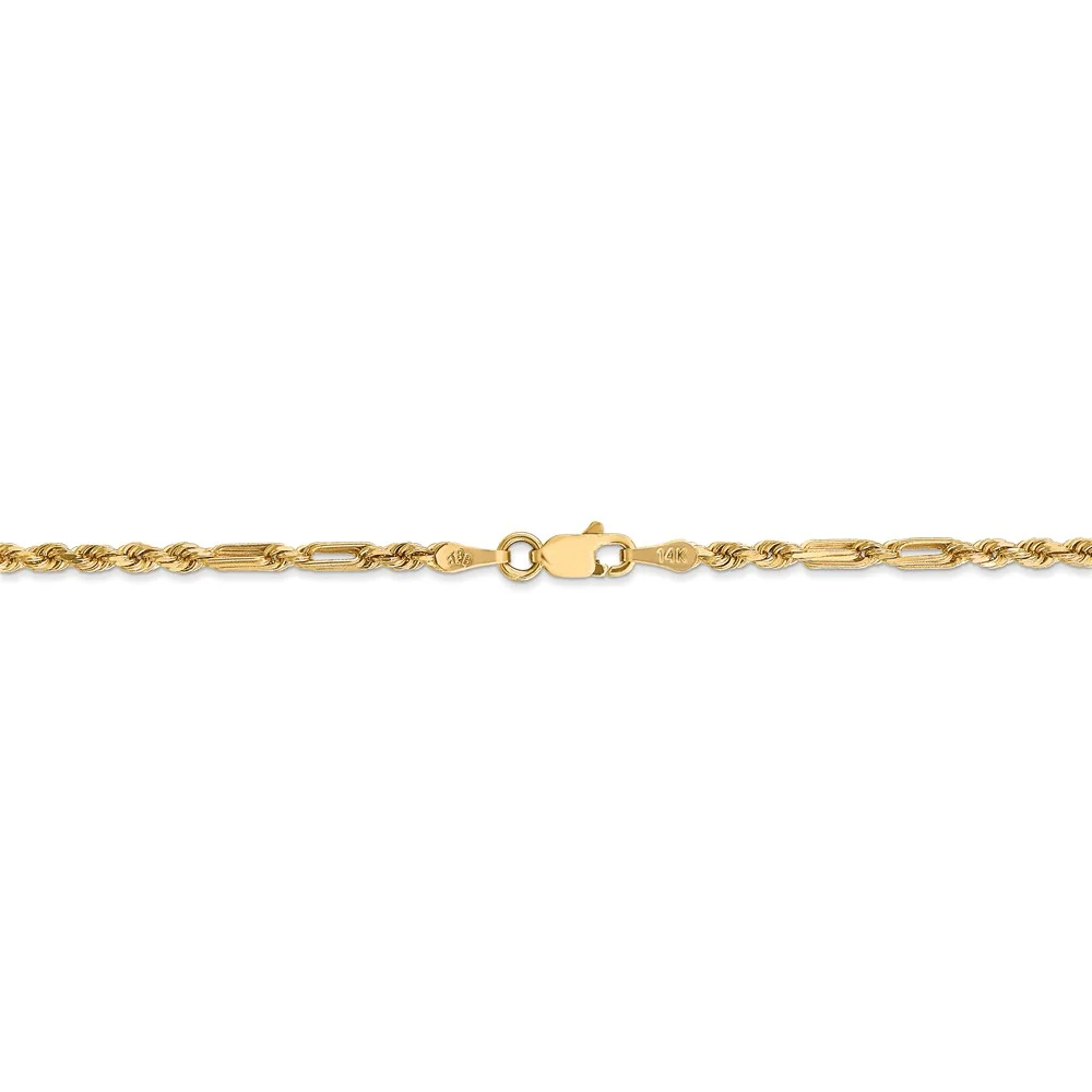 ARAIYA JEWELRY 14K Yellow Gold 1.52 mm Solid Diamond Cut Rope Chain 16'' for Women