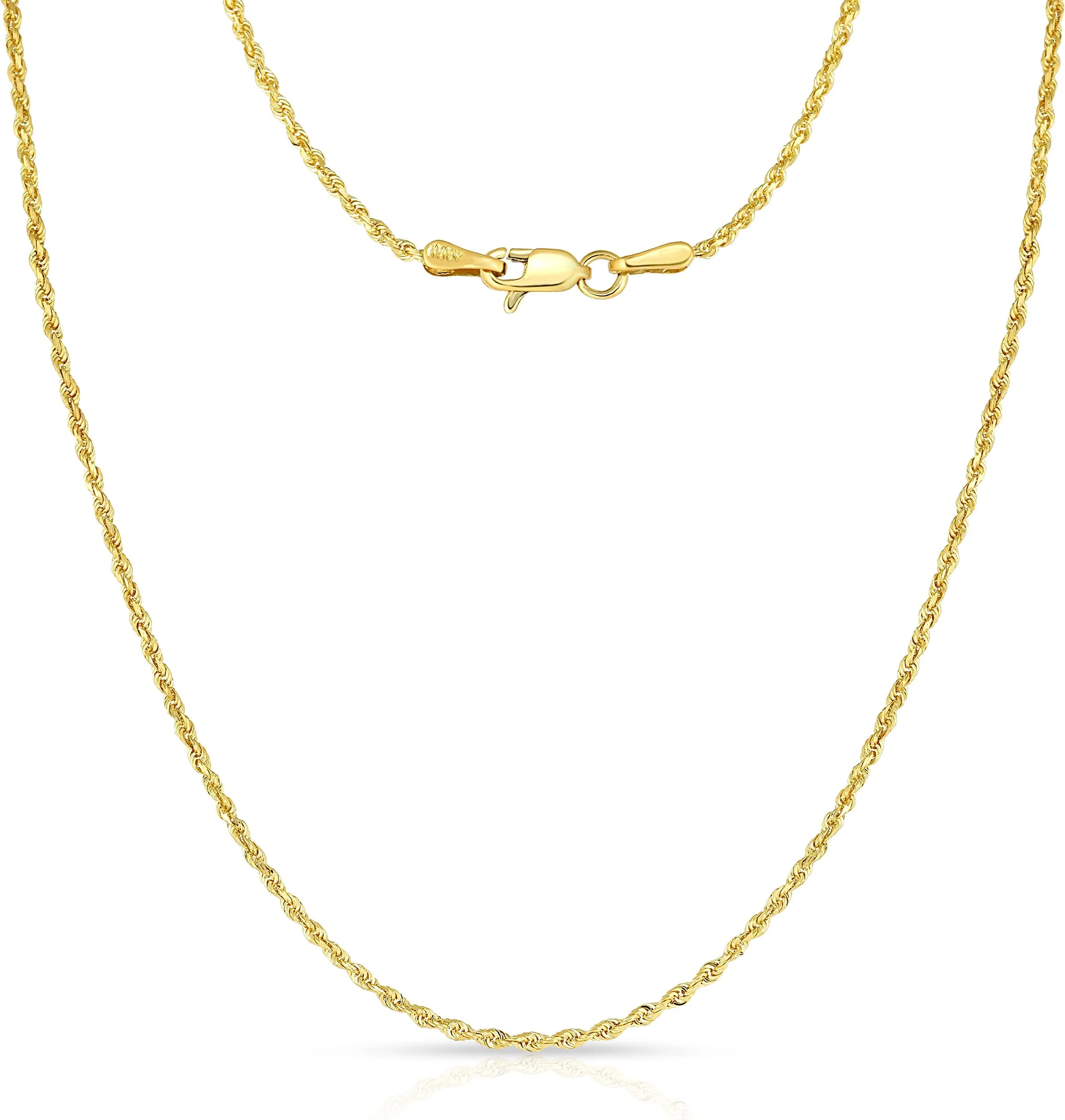 10K White Gold 18" 1.80mm D/C Rope Chain Necklace w/ Lobster Lock - Women