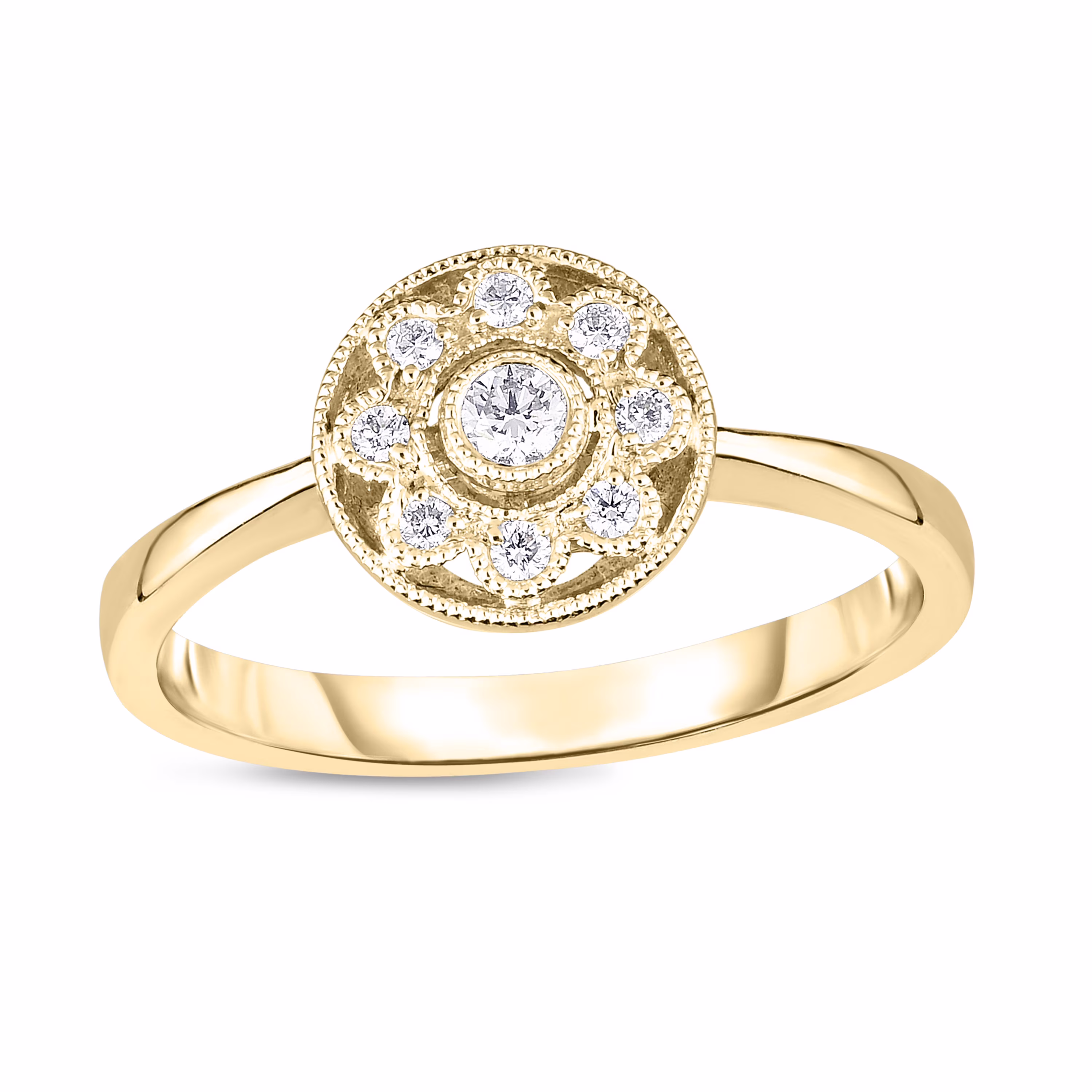 1/8 CT. T.W. Diamond Flower Frame Vintage-Style Promise Ring in 10K Gold