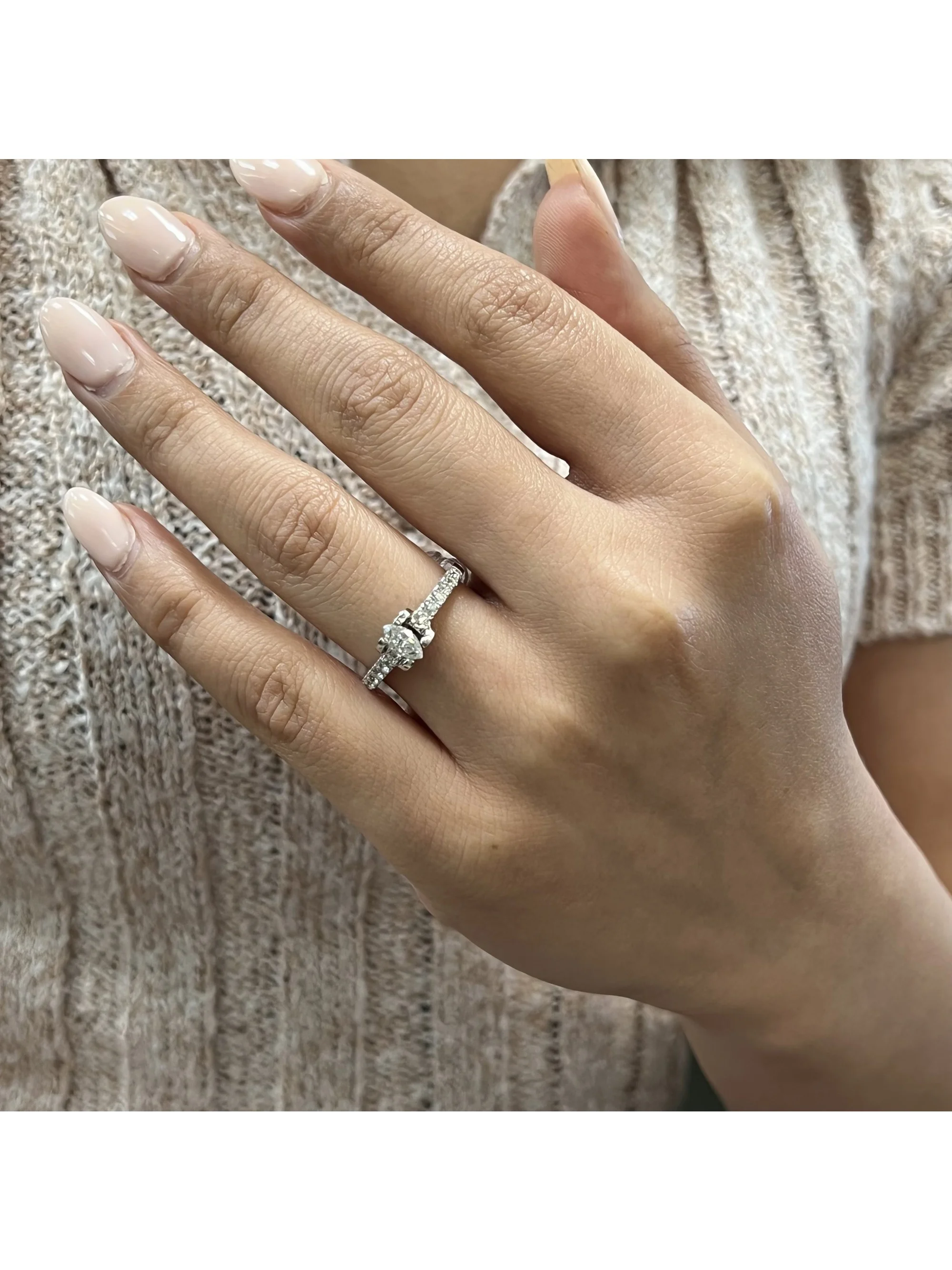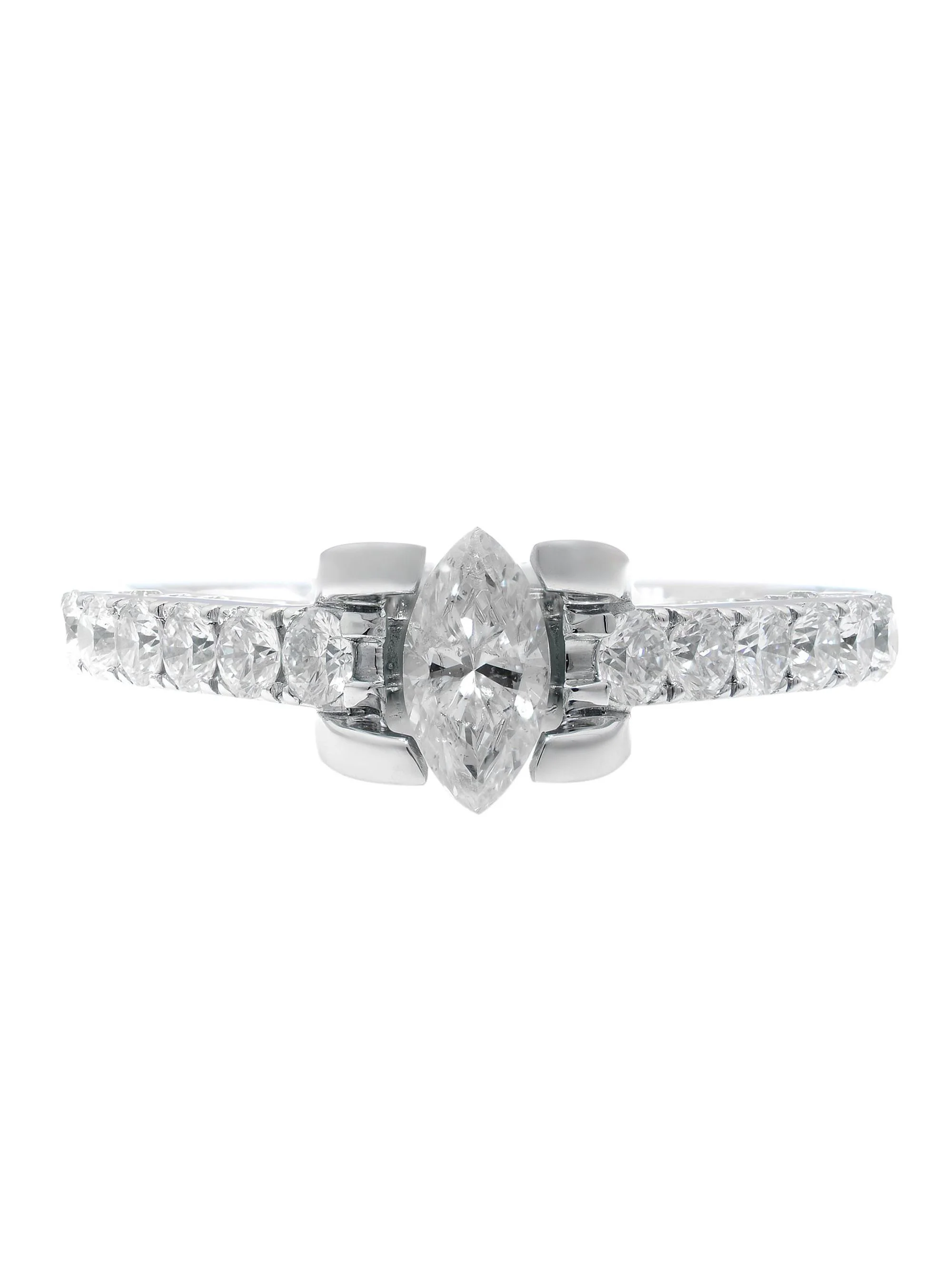 Marquise Cut Diamond Accented Ladies Engagement Ring 14K White Gold 1.05 Cttw