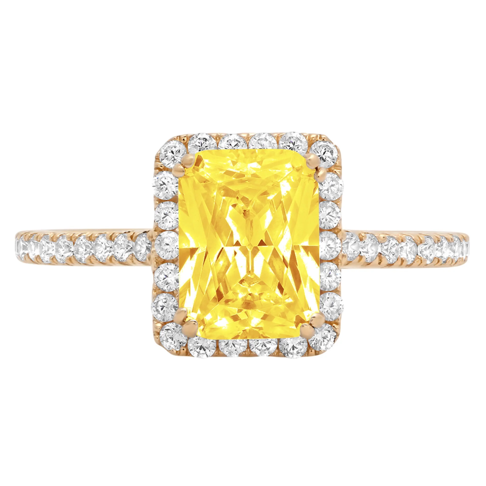 1.96ct emerald cut yellow simulated diamond 18k yellow gold anniversary engagement halo ring size 10.5