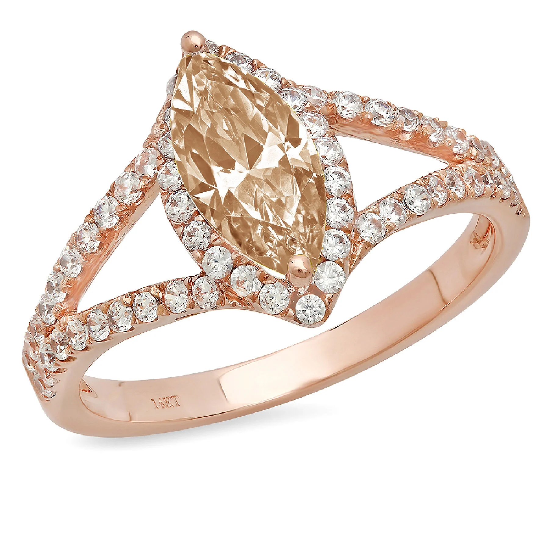 1.2ct marquise cut champagne simulated diamond 14k rose gold anniversary engagement halo ring size 11