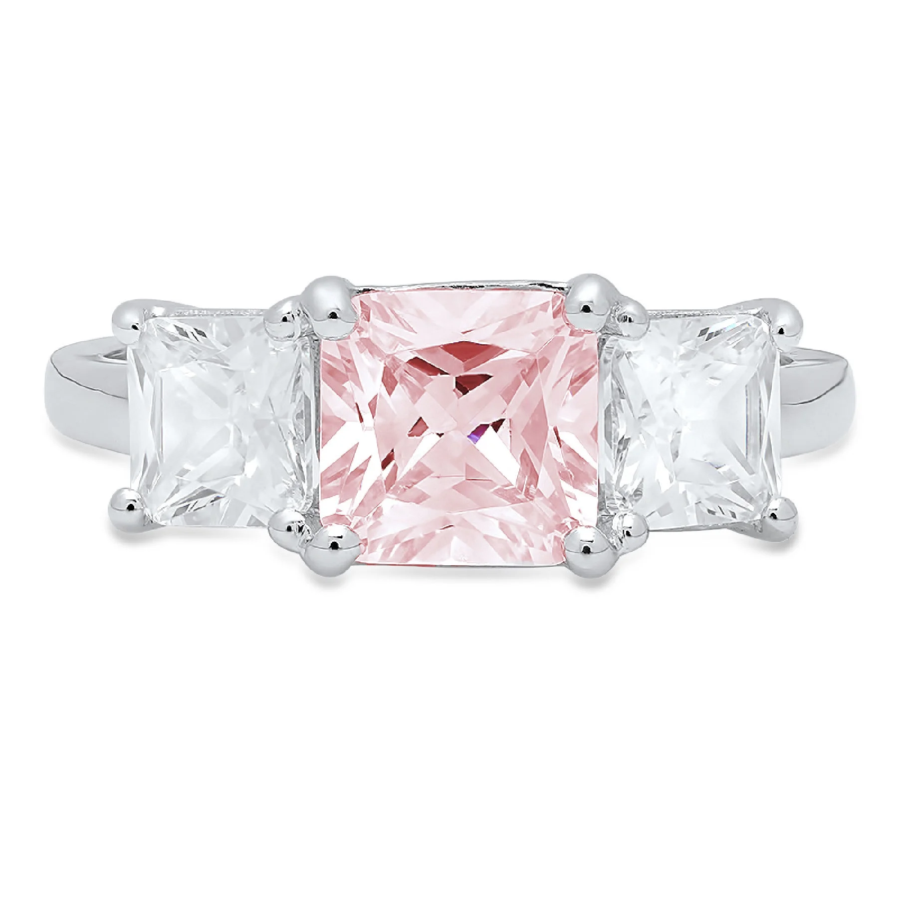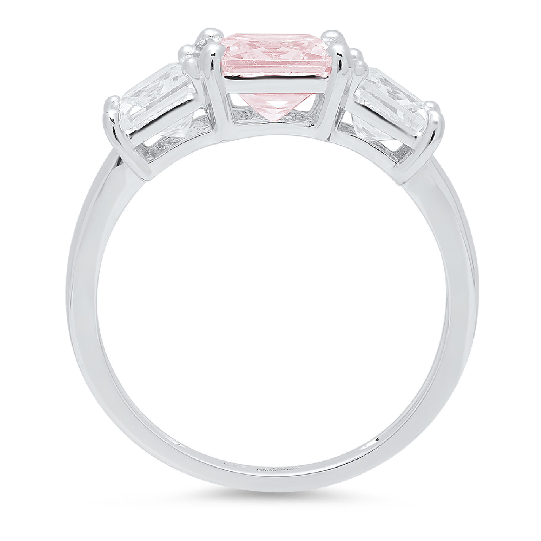 4.0ct square emerald cut pink simulated diamond 18k white gold anniversary engagement 3 stone ring size 5.5