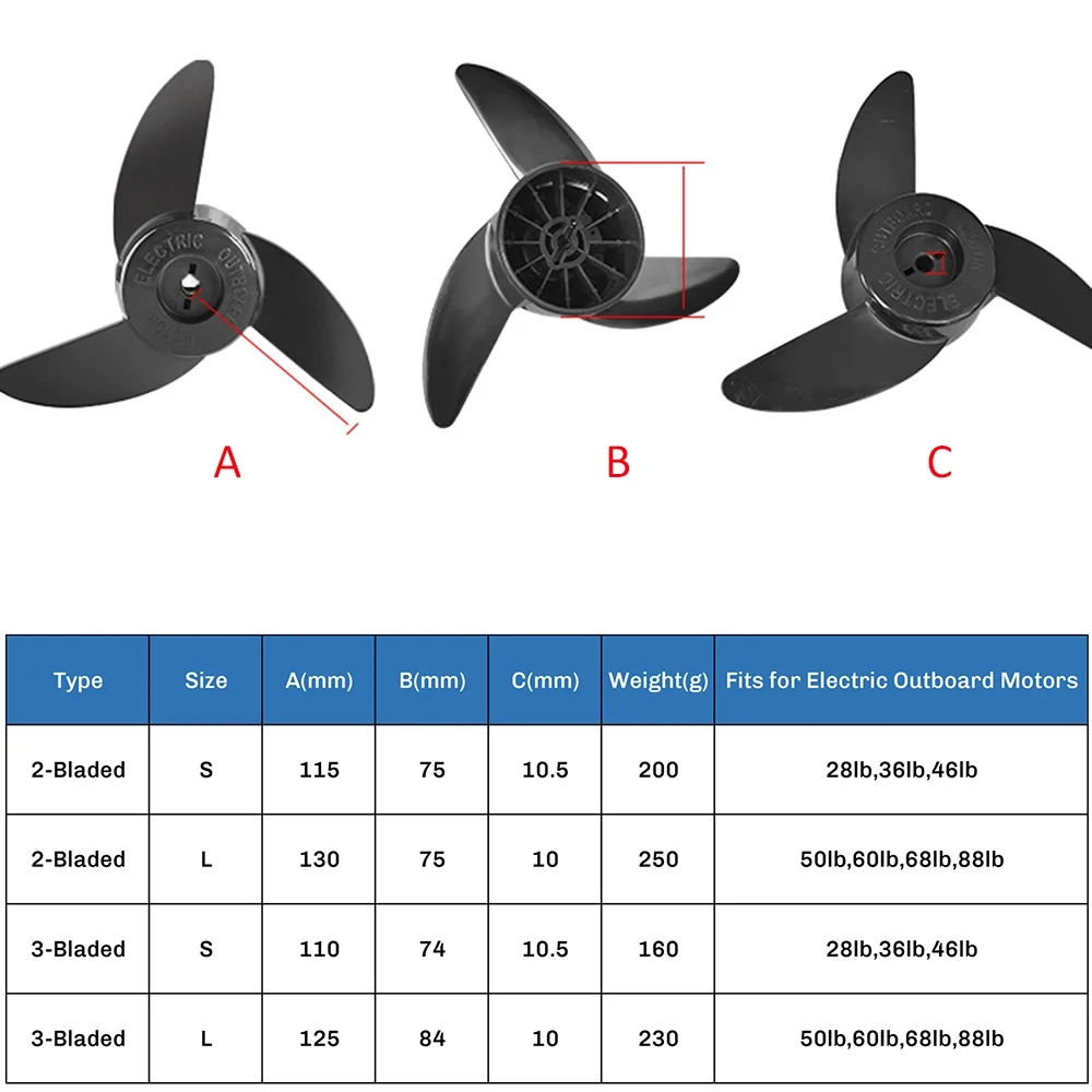 Carevas Electric Outboard Motor Propeller Boat Propeller Kit for Marine Boat