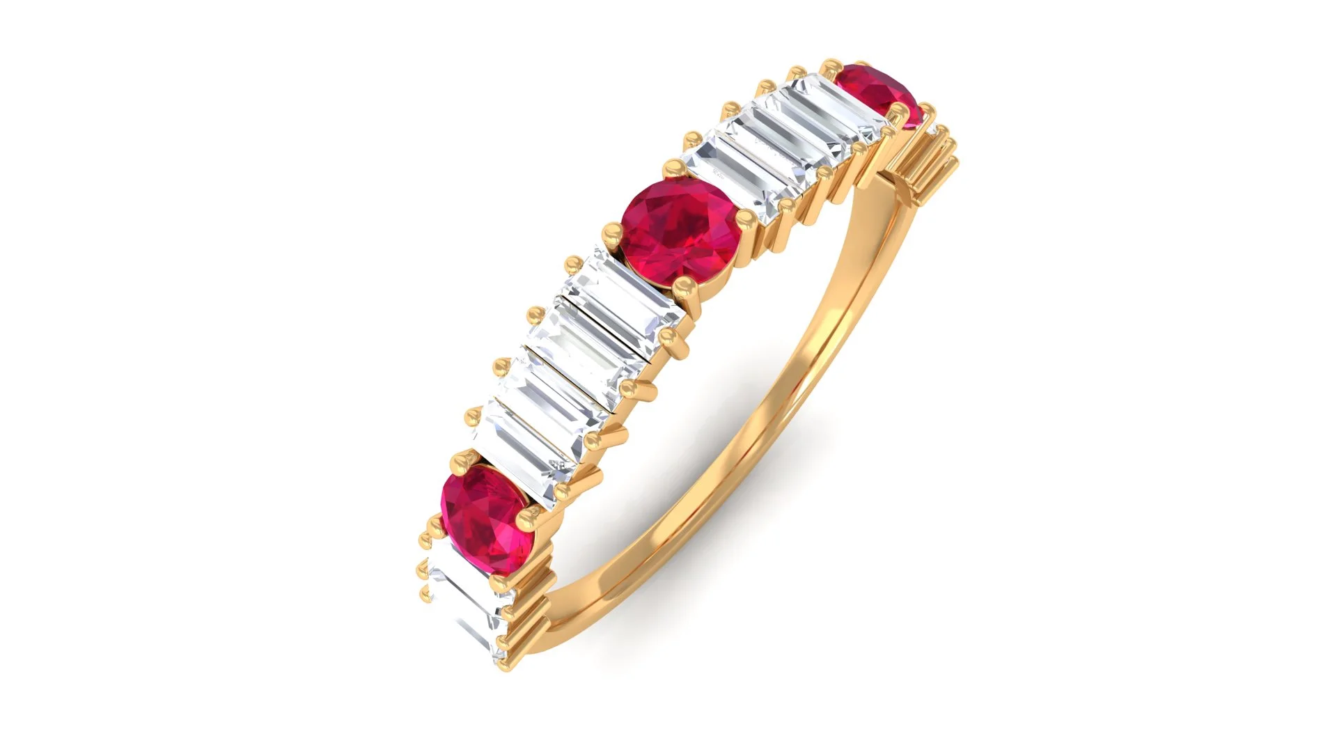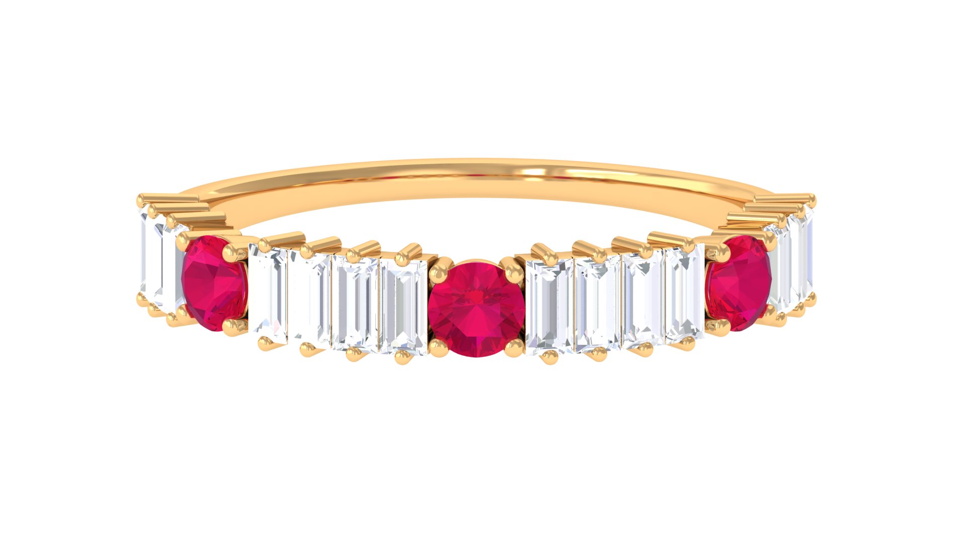 1.25 CT Diamond and Ruby Ring, Natural Diamond and Ruby Half Eternity Ring, Gift for Women, 10K Yellow Gold, US 4.00