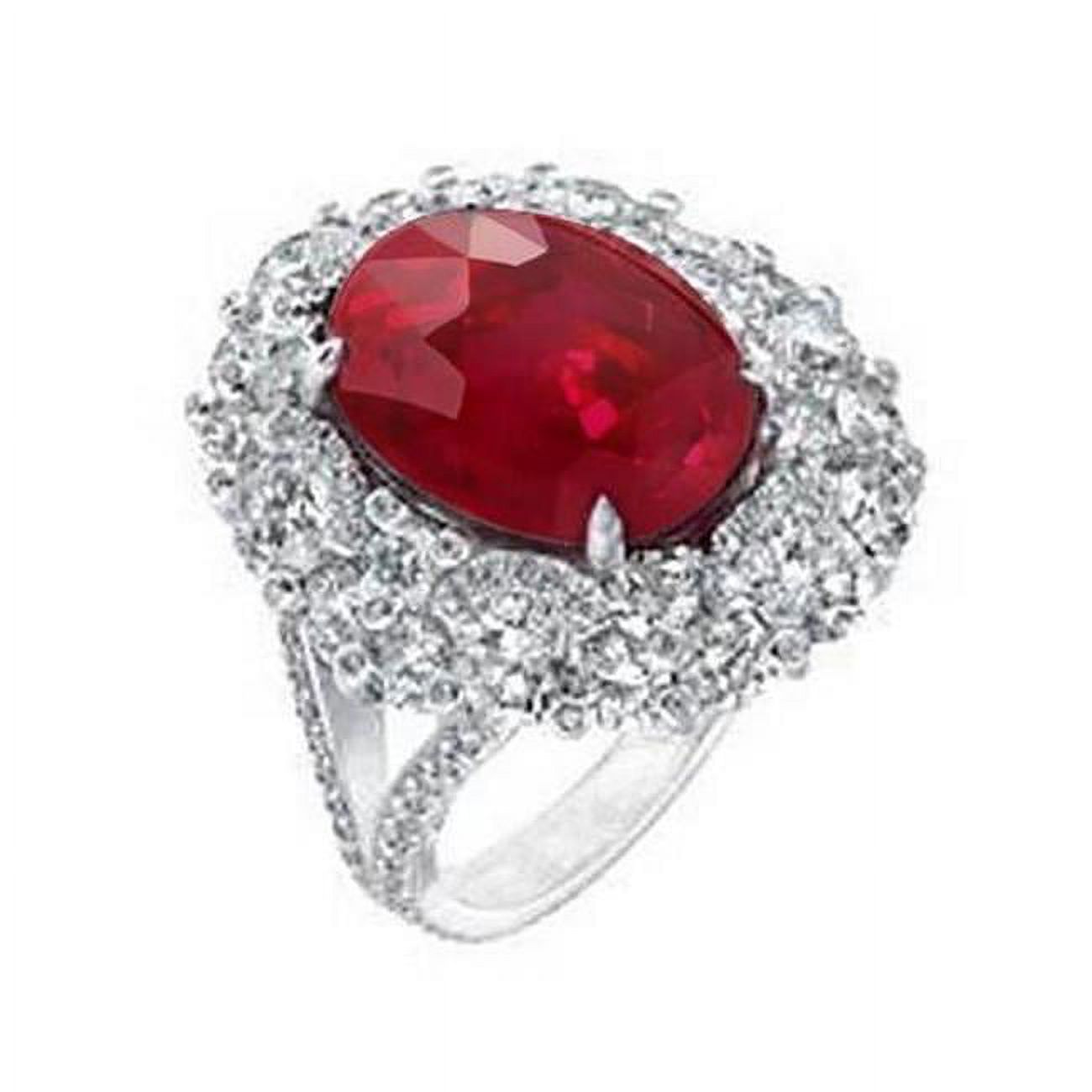 Harry Chad Enterprises 54933 4 CT Halo Red Ruby Diamond Ring, 14K White Gold - Size 6.5