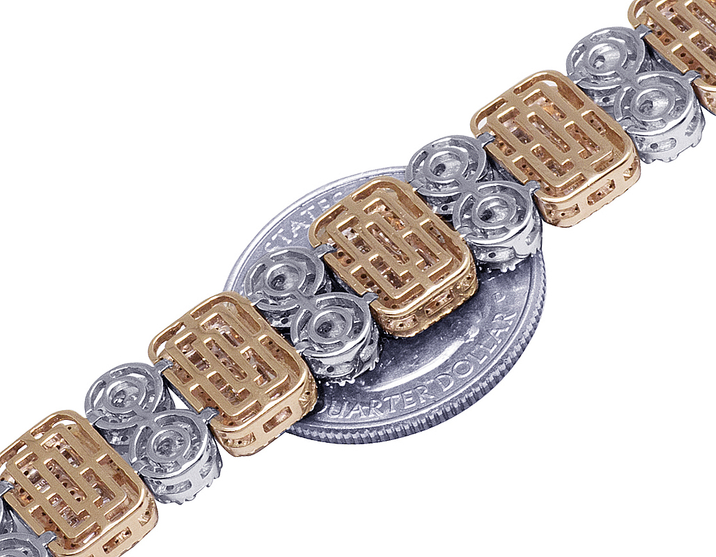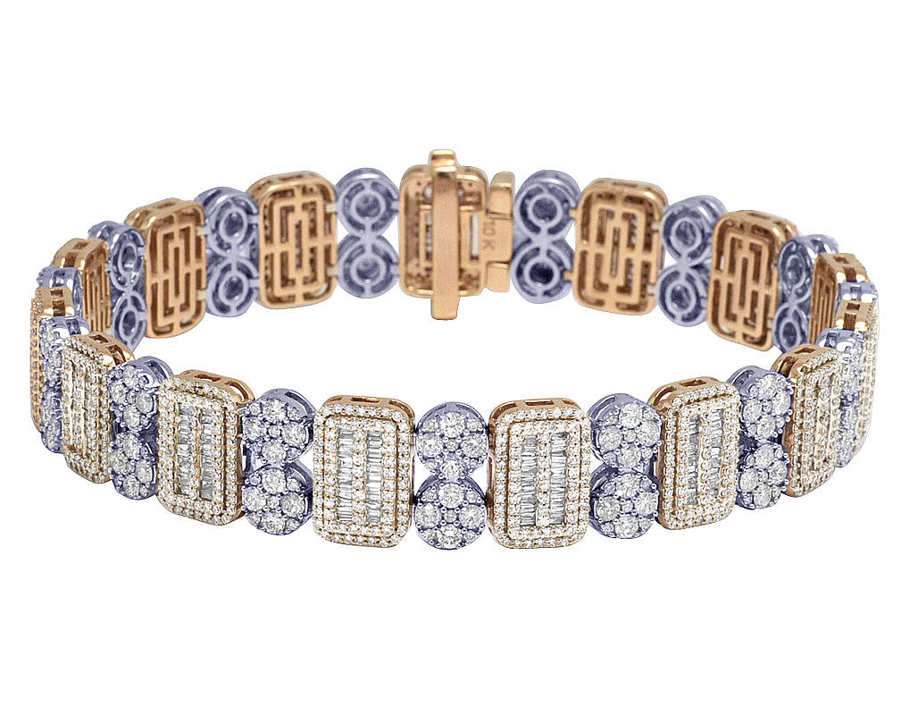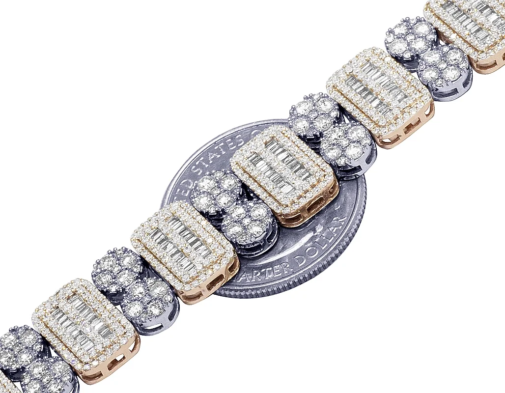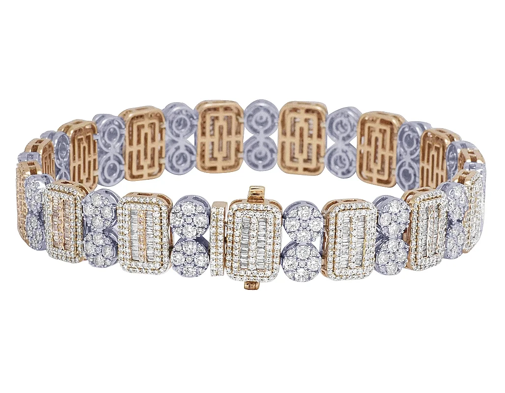 10K Two Tone Cluster Baguette Rectangle Diamond Bracelet 11.75CT 12MM 8.5"