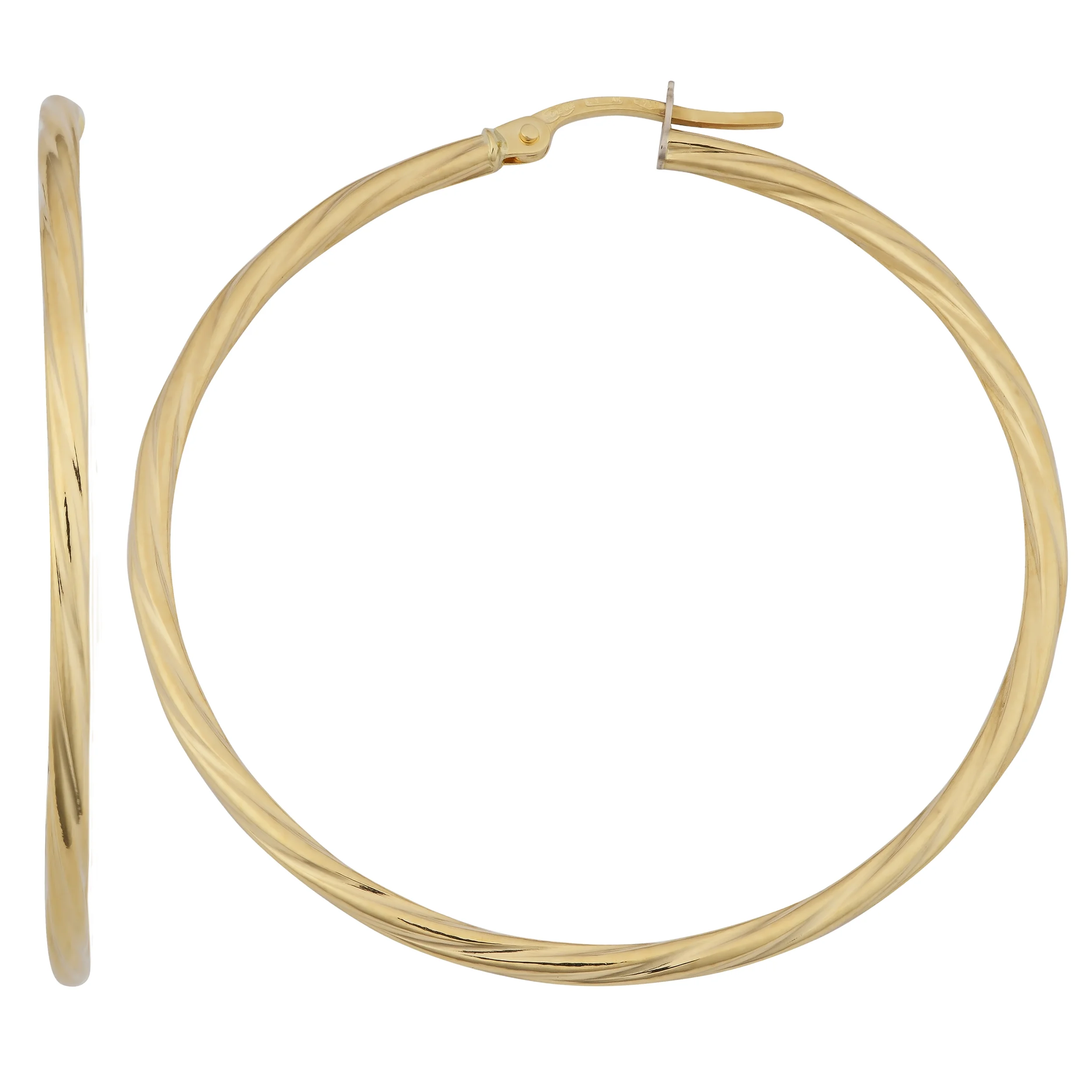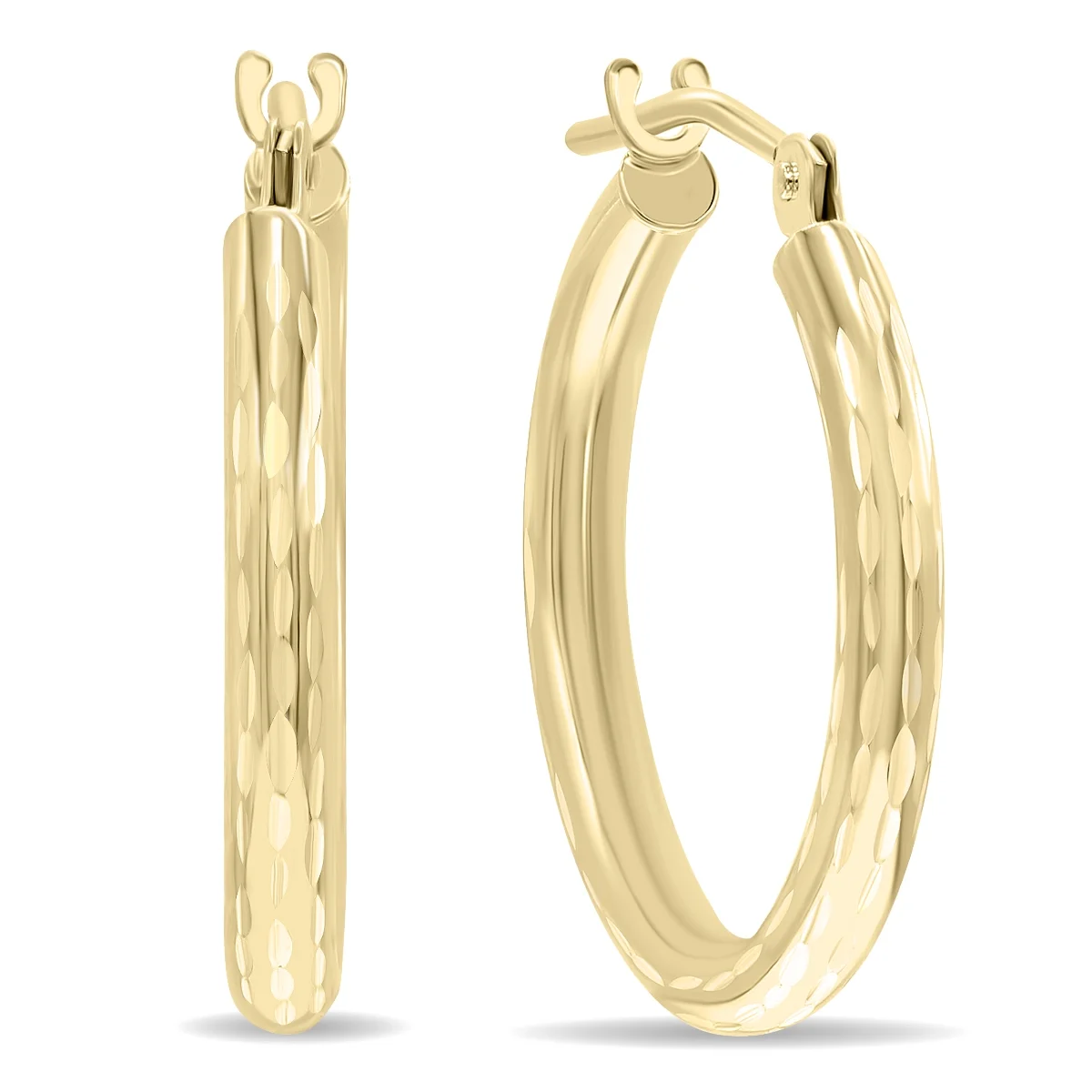 SZUL Women's 14K Yellow Gold Shiny Diamond Cut Engraved Hoop Earrings (18mm)