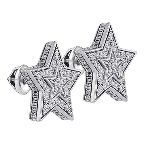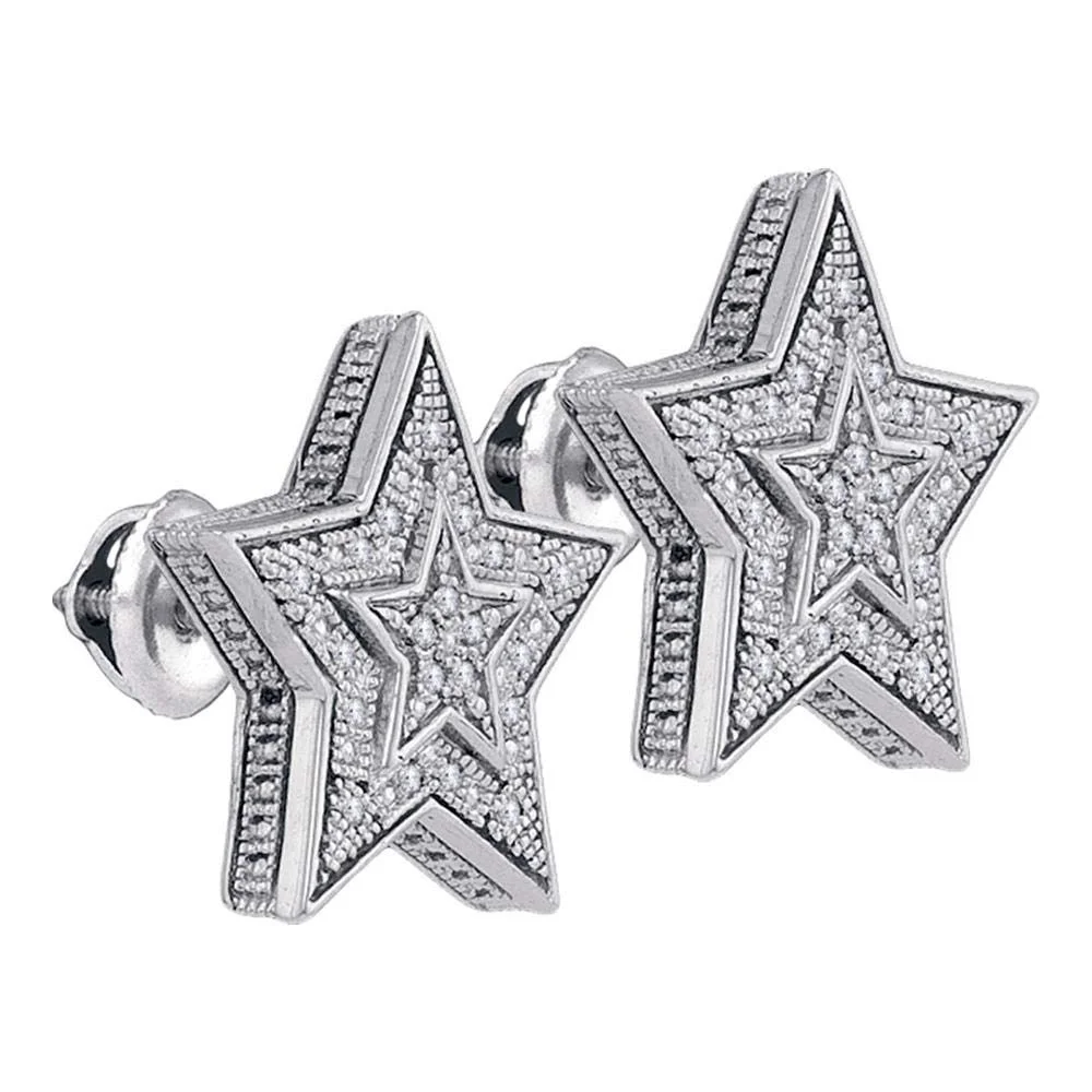 Men's Solid Sterling Silver Round Diamond Star Cluster Stud Earrings 1/10 Cttw