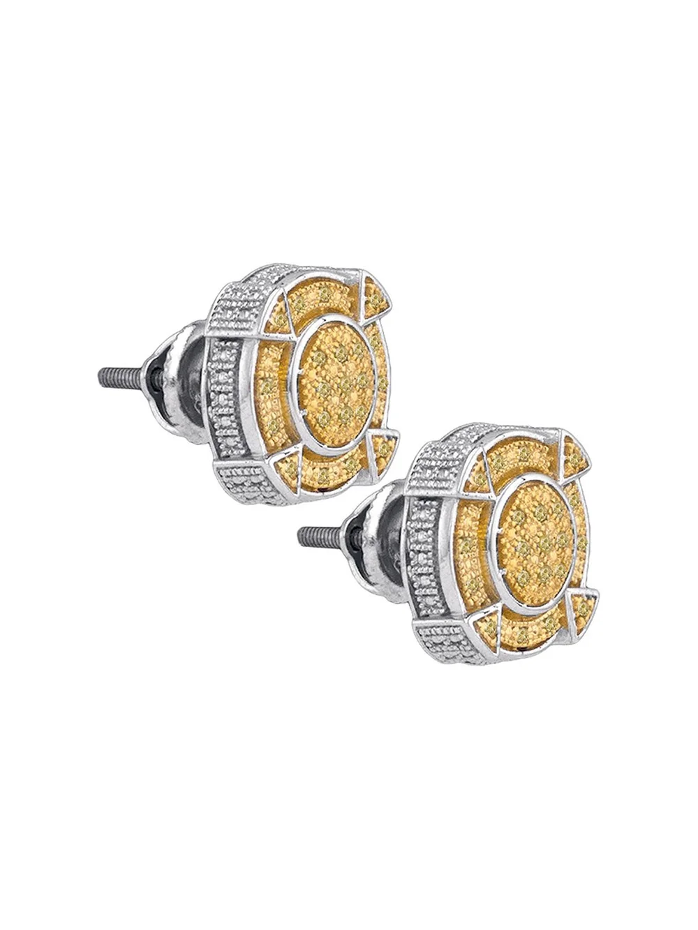 FB Jewels Sterling Silver Mens Round Yellow Color Enhanced Diamond Cluster Earrings 1/6 Cttw